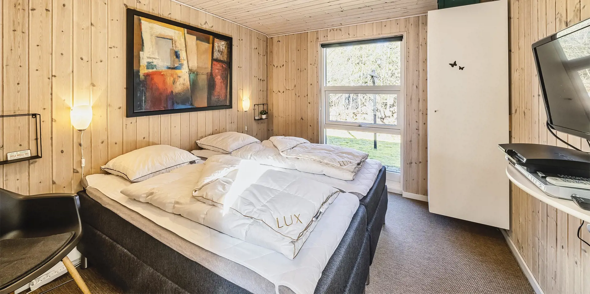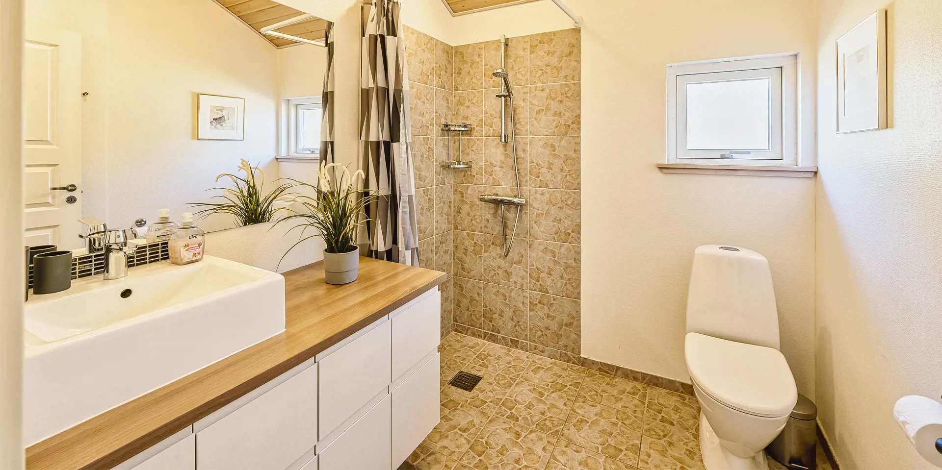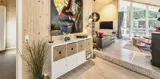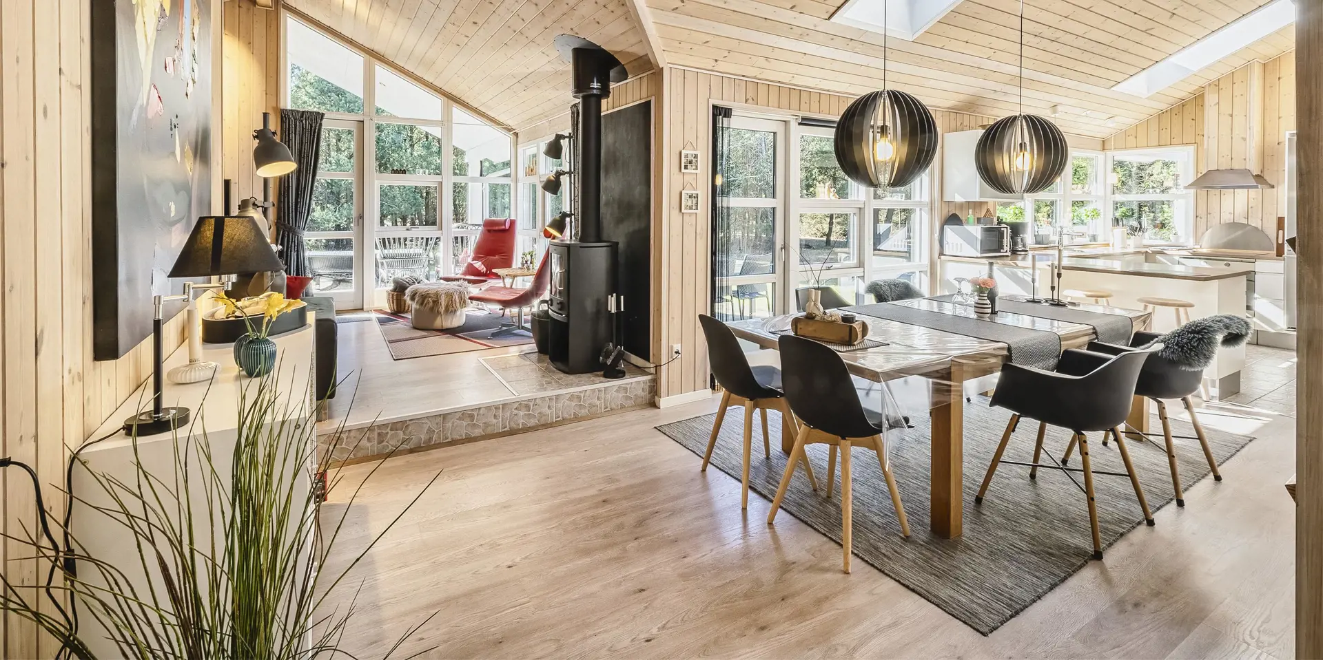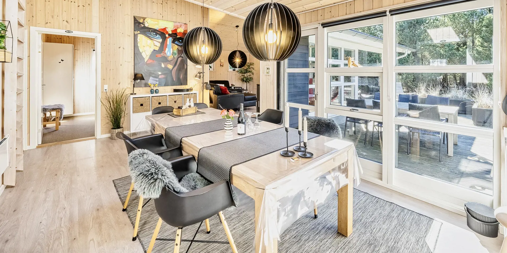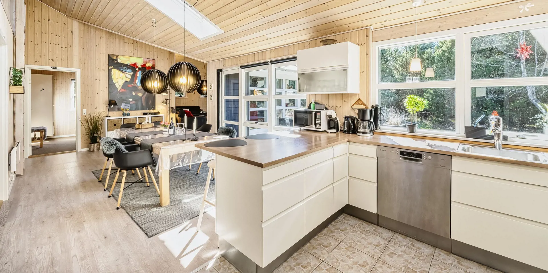 Modernes und gut ausgestattetes Ferienhaus für 6 Personen, ca. 1.500 Meter vom Strand entfernt, auf einem großen, teilweise umzäunten Grundstück gelegen. Rund um das Haus sind viele Bäume gefällt worden, so dass die Sonne wirklich hereinkommt und Sie sie auf der schönen Terrasse genießen können. Große Holzterrasse auf mehreren Ebenen und eine teilweise überdachte Terrasse. Das Haus besteht aus: Eingangshalle mit Garderobenplatz und Waschmaschine. Von der Eingangshalle aus betreten Sie die große Wohnküche mit Gewölbedecke, teils gefliest, teils mit Parkettboden. Helle und freundliche Eckküche mit Backofen, Cerankochfeld, Geschirrspüler, Mikrowelle und Kühl-/Gefrierschrank. Großes Esszimmer mit viel Tageslicht durch 2 Oberlichter. Von der Küche-Esszimmer gibt es 2 Dachböden. Vom Esszimmer geht man eine Stufe hinauf in ein gemütliches Wohnzimmer mit Holzofen, TV mit TV-Kanälen über Stofa (kleines Paket). Smart TV. Drahtloses Internet (50/50). Playstation 3 und verschiedene Spiele. Wärmepumpe. Es gibt 3 Schlafzimmer: DS + DS + DS + DS. Hauptbadezimmer mit Dusche/WC, Sauna und Whirlpool. Gästetoilette mit Dusche. 2 kleine Hunde mit einer Rückenhöhe von max. 40 cm sind erlaubt - oder ein großer Hund. Katzen sind nicht erlaubt! Fahrradschuppen und mehr auf dem Grundstück. Baujahr 2009.