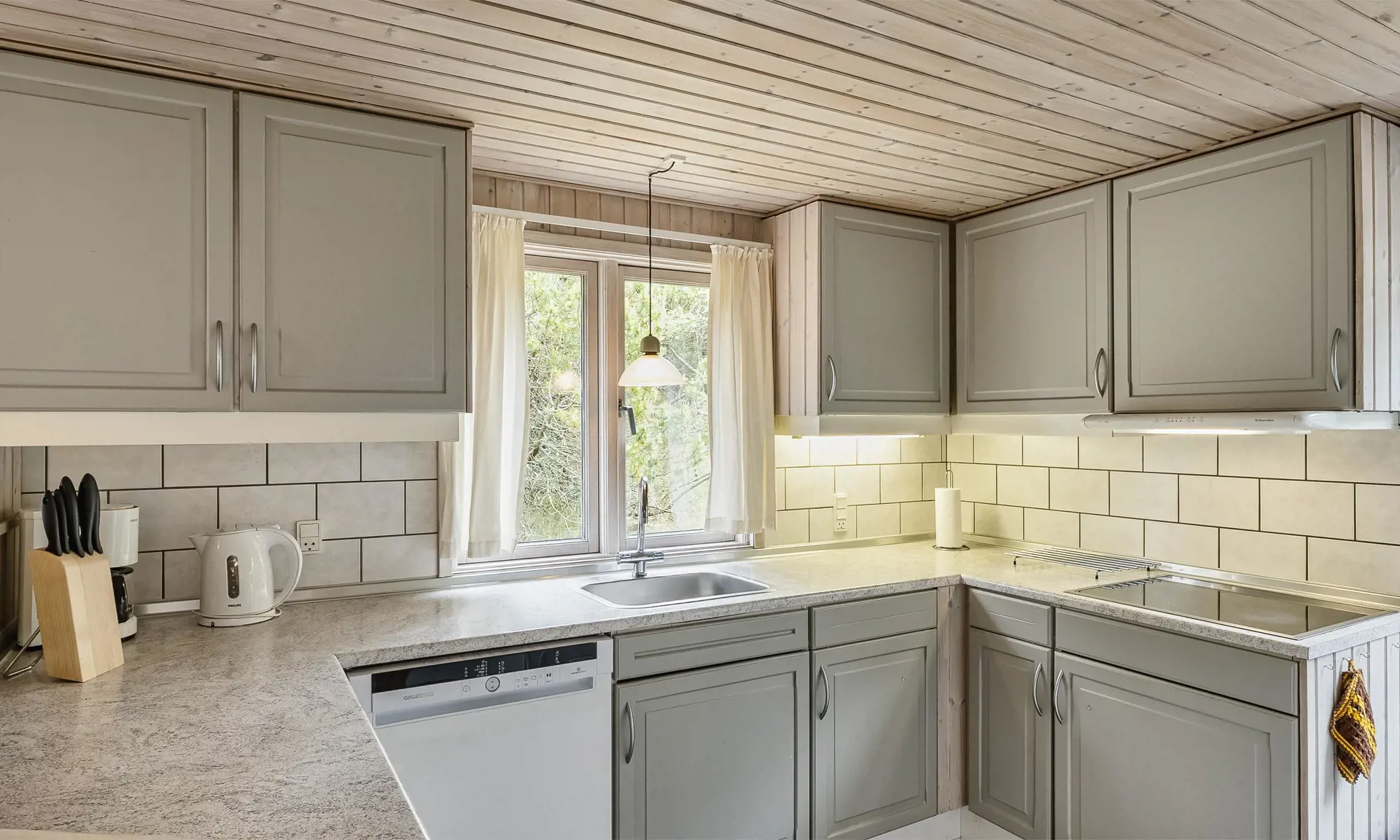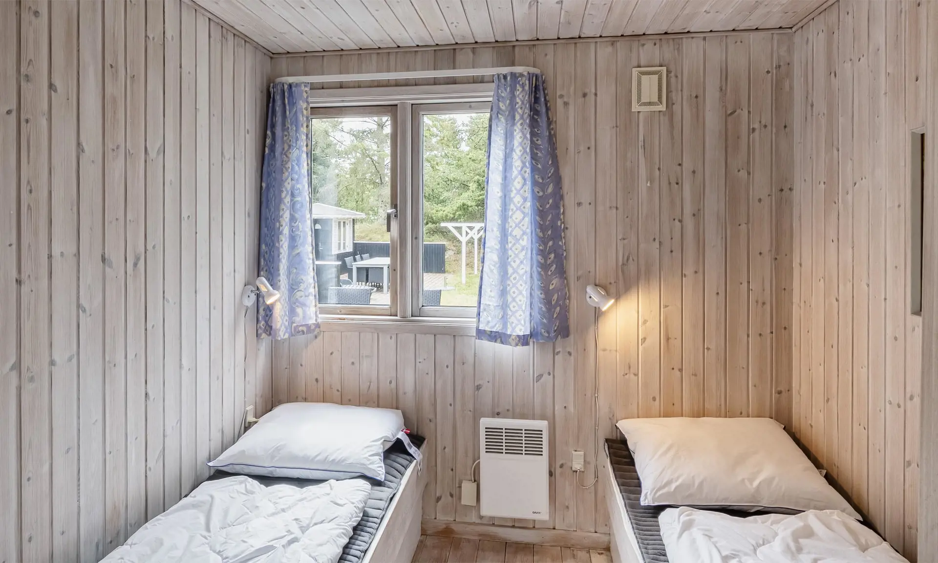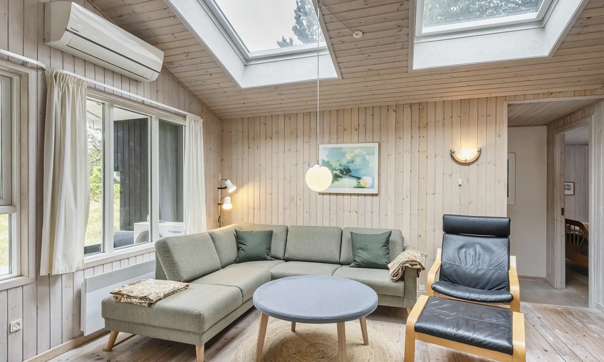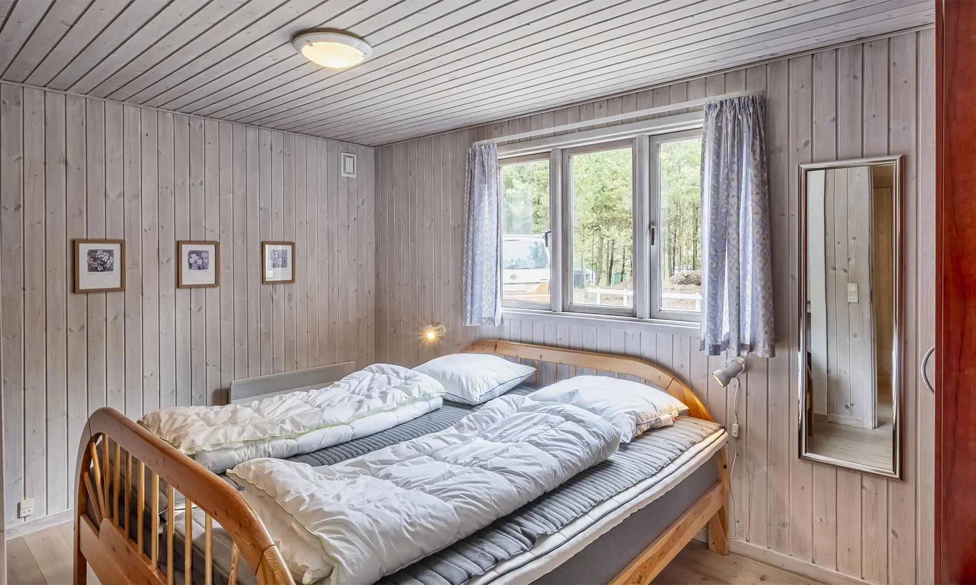 Hübsche eingerichtetes und freundliches Ferienhaus, mit Namen ”Solglimt” auf einem geschlossenen Waldgrundstück gelegen und für 6 Personen ausgestattet. Es liegt nur 1 Km vom Strand entfernt. Das Wohnzimmer ist mit gemütlichen Ledermöbeln und tollem Holzfußboden ausgestattet und durch das Oberlicht kommt zusätzlich viel Helligkeit in diesen Bereich. Das deutsche Fernsehprogramm empfangen Sie über eine Parabolantenne. Über eine Stufe nach unten kommen Sie dann in den gefliesten Wintergarten, wo auch der Kamin aufgestellt ist. Es befindet sich eine Warmepumpe im Ferienhaus. Mit dieser Warmepumpe haben sie die Möglichkeit die Stromkosten zu senken, denn die Warmepumpe ist energiesparend. Die offene Küche verfügt über einen Herd mit Cerankochfeld, einem Backofen in Arbeitshöhe, eine Geschirrspülmaschine, eine Mikrowelle und einer Kühl- und Gefrierkombination. Das Badezimmer ist mit einem WC, einem Handwaschbecken und einer Dusche ausgestattet. Es gibt drei Schlafzimmer im Ferienhaus: DB + DB + 2B. Das Ferienhaus verfügt über einen Internetanschluss (W-Lan). Die Sauna, die Waschmaschine und der Trockner befinden sich im Nebengebäude auf dem Grundstück. Das Ferienhaus verfügt über mehrere Terrassen, die eine krosse Holzterrasse ist zum Teil auch überdacht. Auf dem Grundstück befindet sich für die ”Kleinen Gäste” auch ein Spiel- und Klettergerüst mit Rutsche und Schaukel. Auch eine Sandkiste ist aufgestellt. Es sind keine Haustiere erlaubt, mit Ausnahme ein kleiner Hund mit max. Rauchen ist nicht erlaubt im Ferienhaus. Rückenhöhe von 30 cm. Der Hund darf nicht in die Möbeln oder Betten. Das Ferienhaus ist 1955 erbaut und in 2010 renoviert worden. Für dieses Ferienhaus entstehen Zusatzkosten für den Wasserverbrauch.
