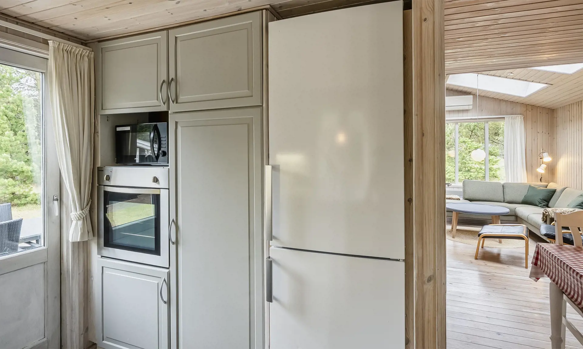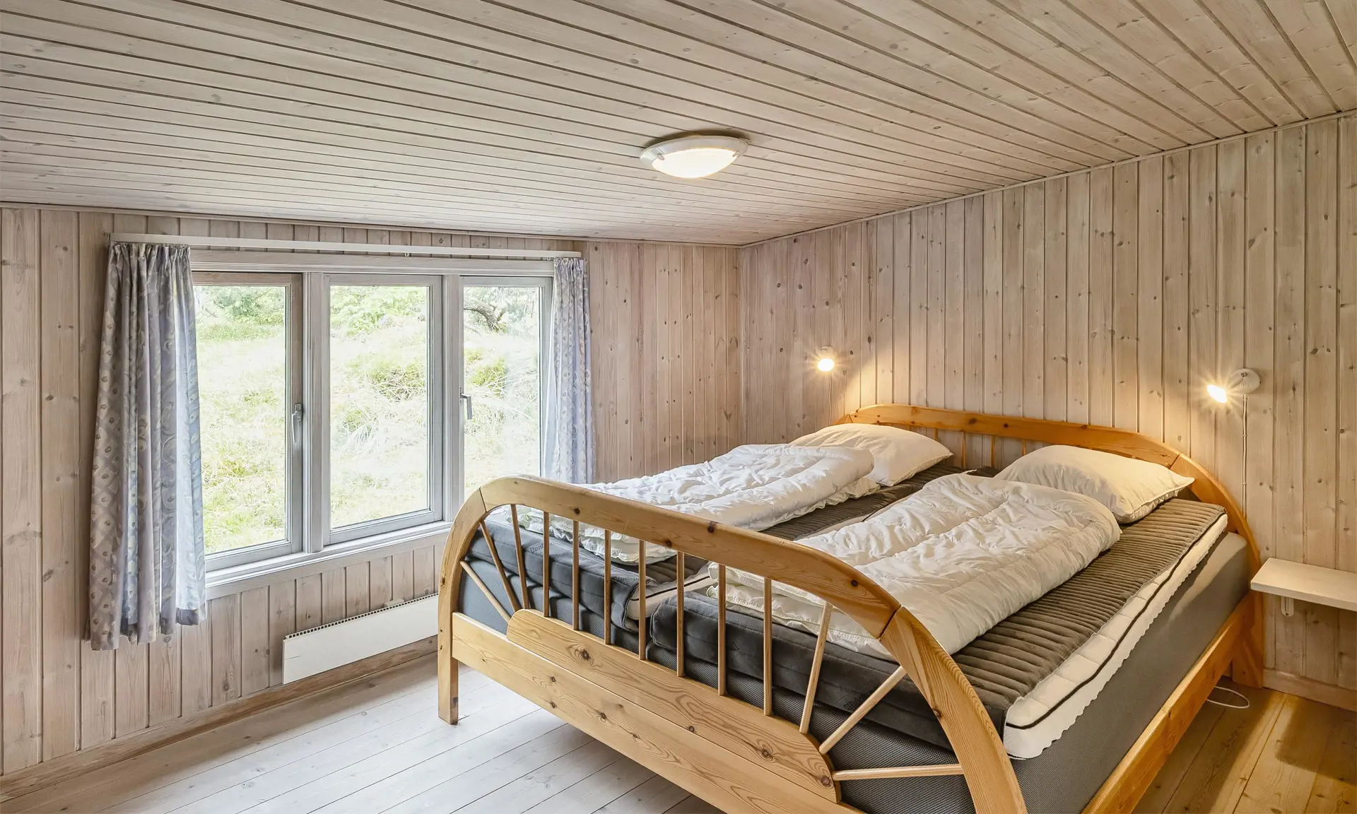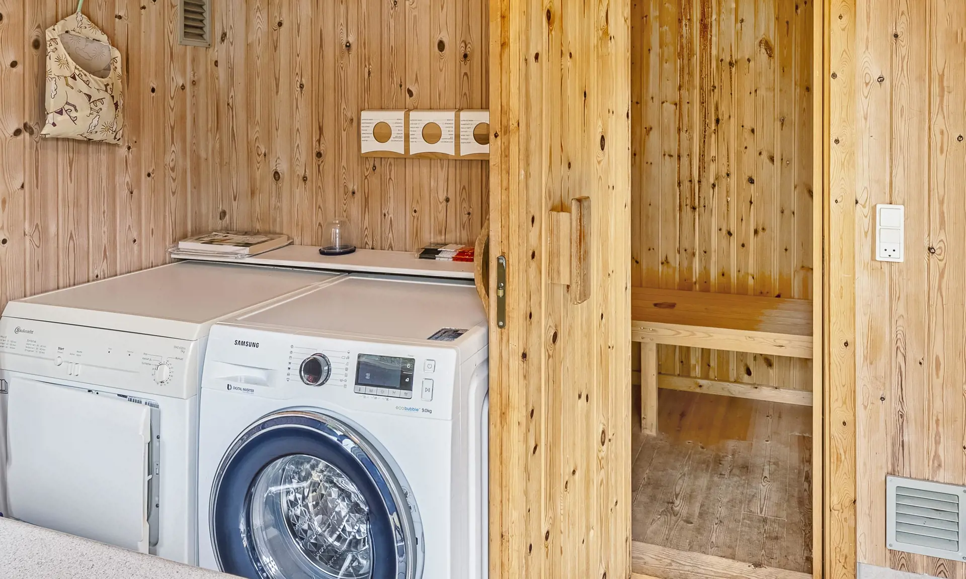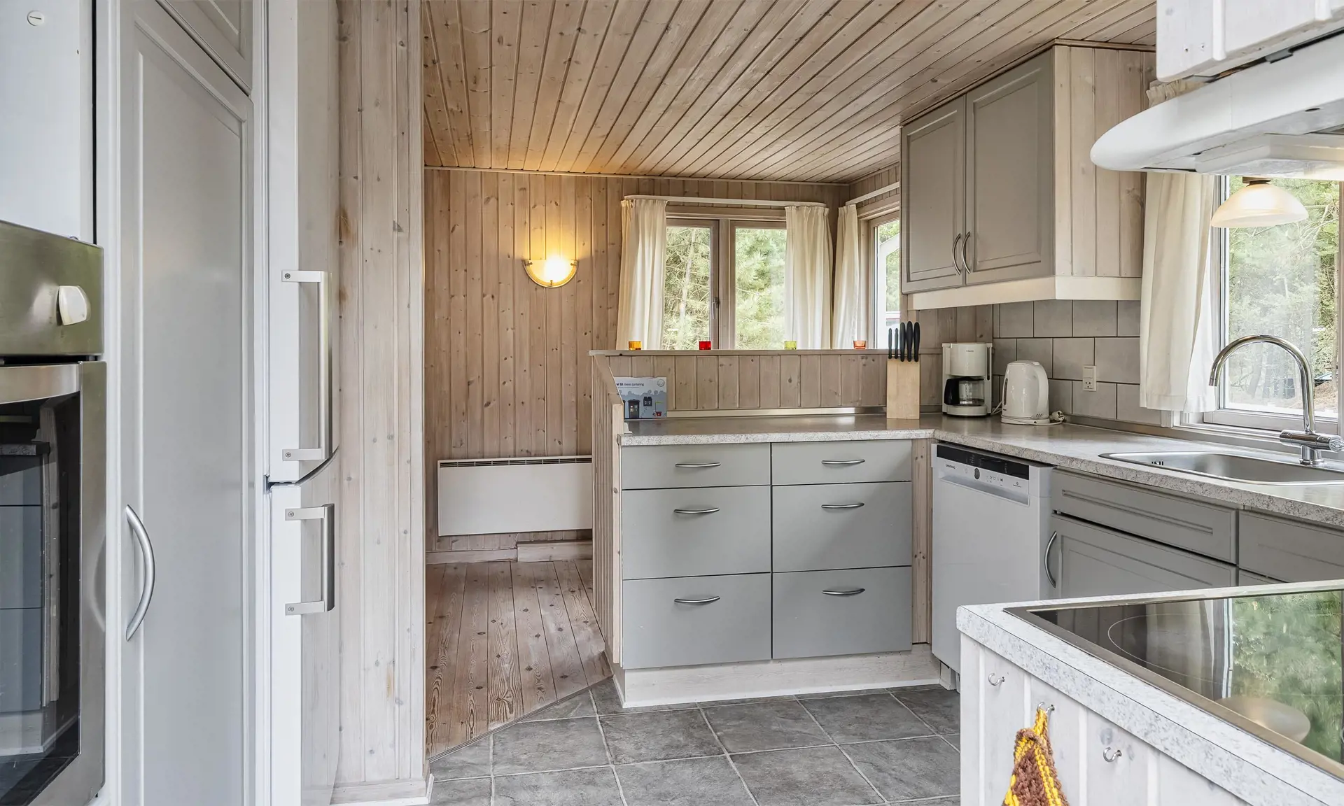 Hübsche eingerichtetes und freundliches Ferienhaus, mit Namen ”Solglimt” auf einem geschlossenen Waldgrundstück gelegen und für 6 Personen ausgestattet. Es liegt nur 1 Km vom Strand entfernt. Das Wohnzimmer ist mit gemütlichen Ledermöbeln und tollem Holzfußboden ausgestattet und durch das Oberlicht kommt zusätzlich viel Helligkeit in diesen Bereich. Das deutsche Fernsehprogramm empfangen Sie über eine Parabolantenne. Über eine Stufe nach unten kommen Sie dann in den gefliesten Wintergarten, wo auch der Kamin aufgestellt ist. Es befindet sich eine Warmepumpe im Ferienhaus. Mit dieser Warmepumpe haben sie die Möglichkeit die Stromkosten zu senken, denn die Warmepumpe ist energiesparend. Die offene Küche verfügt über einen Herd mit Cerankochfeld, einem Backofen in Arbeitshöhe, eine Geschirrspülmaschine, eine Mikrowelle und einer Kühl- und Gefrierkombination. Das Badezimmer ist mit einem WC, einem Handwaschbecken und einer Dusche ausgestattet. Es gibt drei Schlafzimmer im Ferienhaus: DB + DB + 2B. Das Ferienhaus verfügt über einen Internetanschluss (W-Lan). Die Sauna, die Waschmaschine und der Trockner befinden sich im Nebengebäude auf dem Grundstück. Das Ferienhaus verfügt über mehrere Terrassen, die eine krosse Holzterrasse ist zum Teil auch überdacht. Auf dem Grundstück befindet sich für die ”Kleinen Gäste” auch ein Spiel- und Klettergerüst mit Rutsche und Schaukel. Auch eine Sandkiste ist aufgestellt. Es sind keine Haustiere erlaubt, mit Ausnahme ein kleiner Hund mit max. Rauchen ist nicht erlaubt im Ferienhaus. Rückenhöhe von 30 cm. Der Hund darf nicht in die Möbeln oder Betten. Das Ferienhaus ist 1955 erbaut und in 2010 renoviert worden. Für dieses Ferienhaus entstehen Zusatzkosten für den Wasserverbrauch.