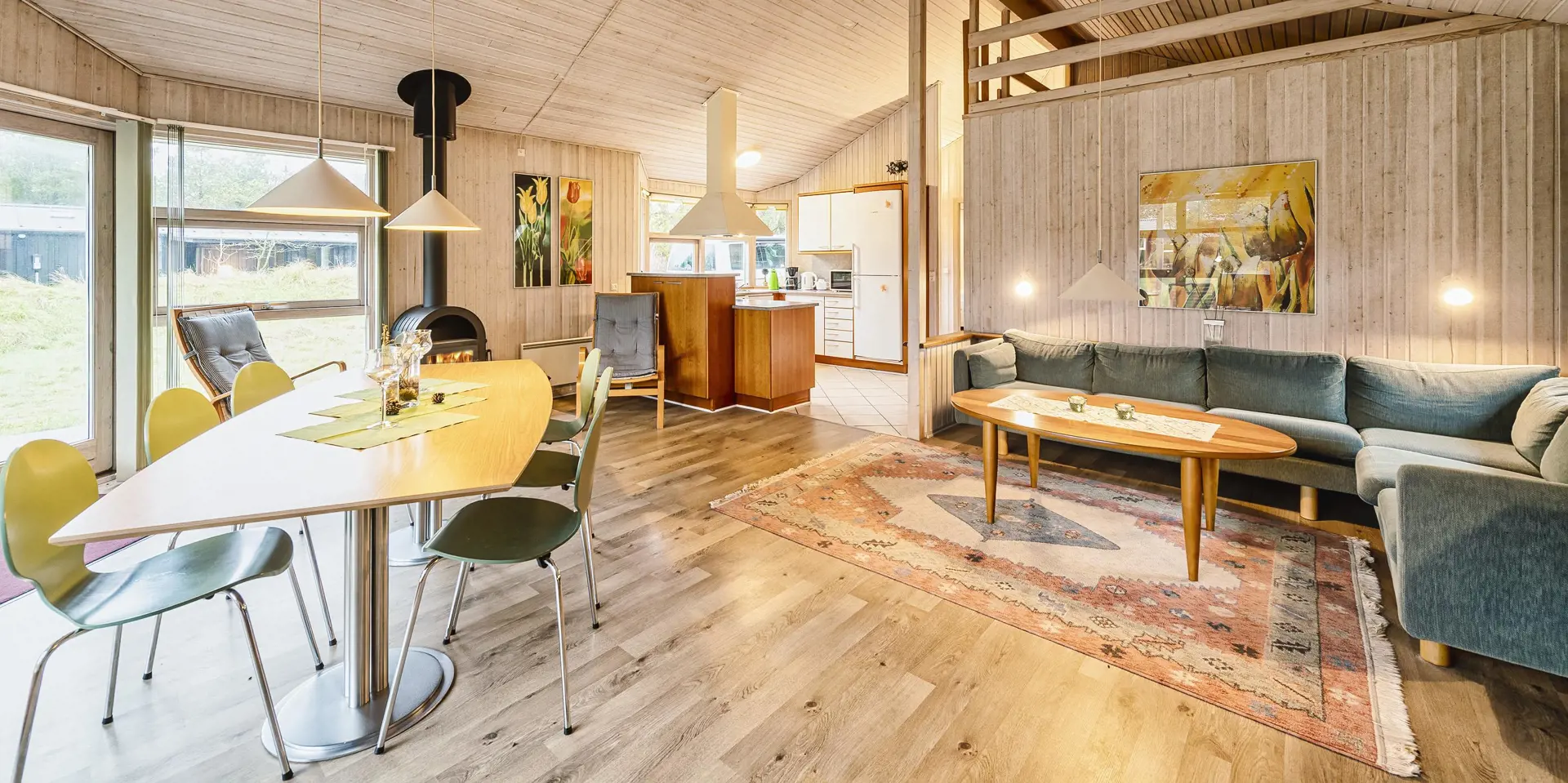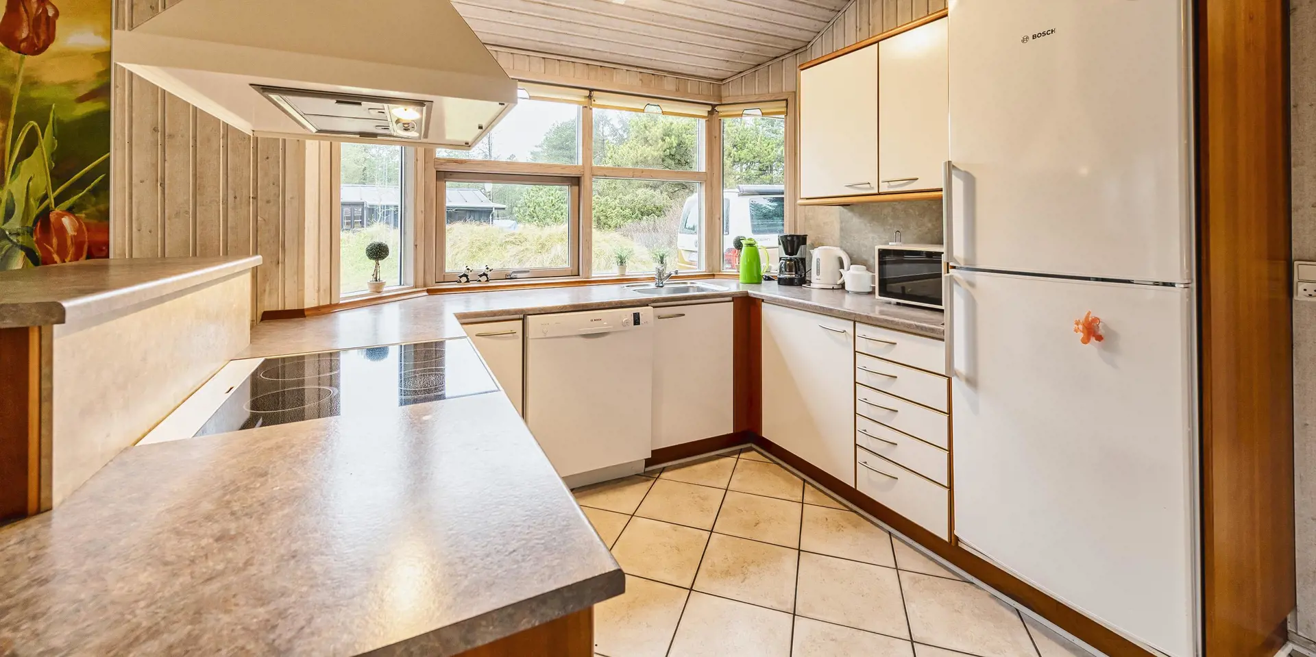 Nett eingerichtetes Ferienhaus auf einem großem Naturgrundstück gelegen und ist für 6 Personen ausgestattet. Das Feinhaus grenzt direkt an ein Waldgebiet. Von hier aus kommen häufig die Hirsche und das Rotwild ganz dicht zu den Ferienhäusern und lieben es von den Gästen mit Obst und Gemüse verwöhnt zu werden. Der Strand ist ca. 2 Km vom Haus entfernt. Auf dem großem Grundstück ist reichlich Platz um auch mal ein kleines Fußballspiel ausfechten. Das bringt es Spaß für Groß und Klein. Das Wohnzimmer hat einen Laminatfußboden und eine große Rundsitzecke. Der Kamin befindet sich hier im Wohnbereich. Eine große Fensterfront spendet viel Licht ins Haus. Ein Hems gibt es auch und gibt den Kleinen Bewohnern die Möglichkeit sich dort auszuruhen oder auch nur alles von oben zu beobachten was im Haus geschieht. Das deutsche Fernsehprogramm ist über eine Parabolantenne zu empfangen. Der Wohn-, Ess- und Küchenbereich ist offen gehalten. Die Küche verfügt über einen Herd mit Cerankochfeld, einem Backofen, einer Geschirrspülmaschine, einer Mikrowelle, einem Kühlschrank und einem Gefrierschrank. Das Badezimmer verfügt über ein WC, ein Handwaschbecken, einer Dusche, einer Sauna und einem Whirlpool. Es gibt drei Schlafzimmer im Hause: DB + DB + 2B. Eine Waschmaschine und ein Trockner befinden sich im Eingangsbereich. Eine Terrasse ist auch am Haus und ein Teil davon ist sogar überdacht. Es sind max. zwei Haustiere erlaubt. Das Haus hat WLAN. Das Rauchen ist nicht gestattet. Das Ferienhaus ist in 2000 erbaut worden.
