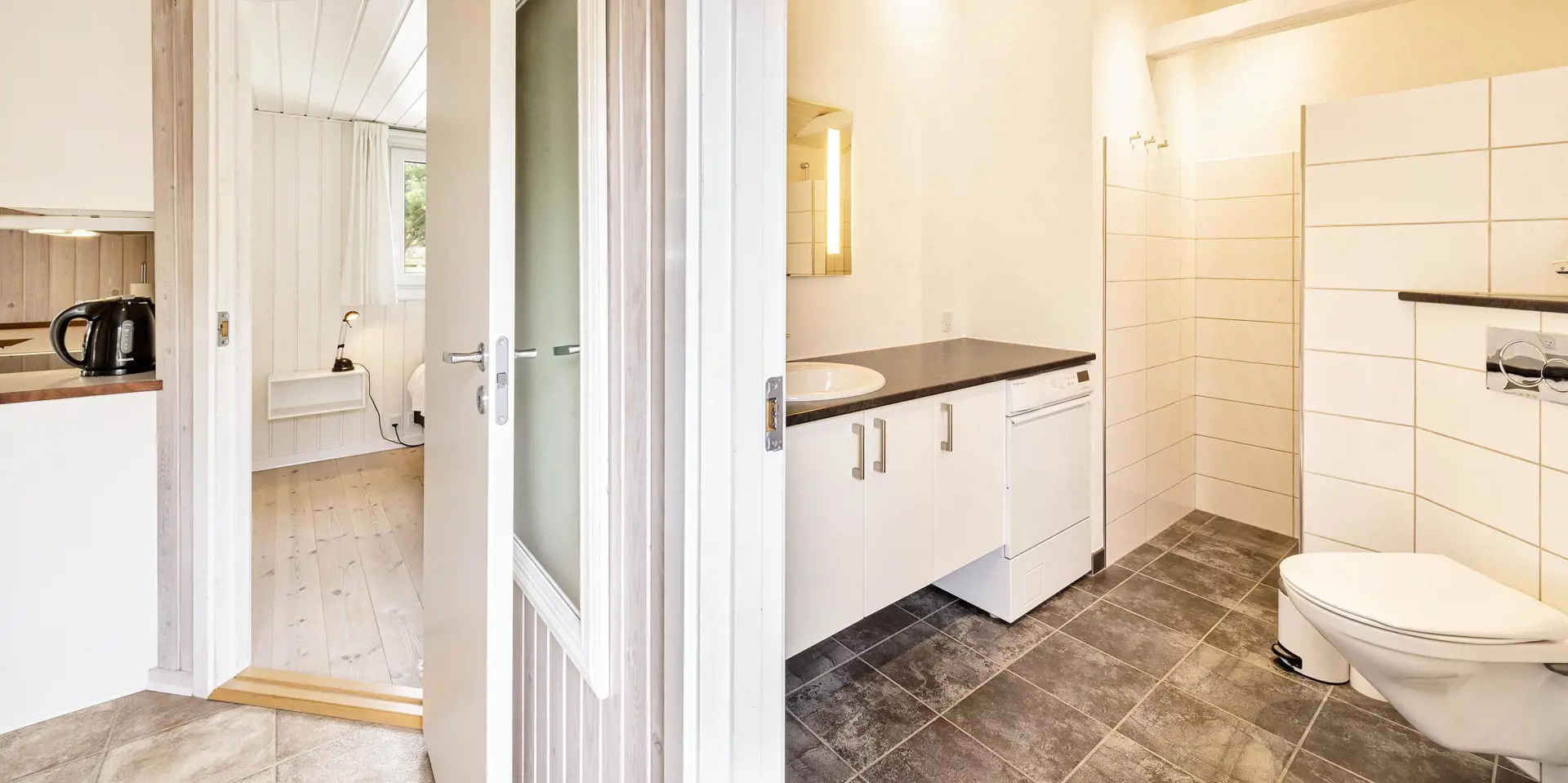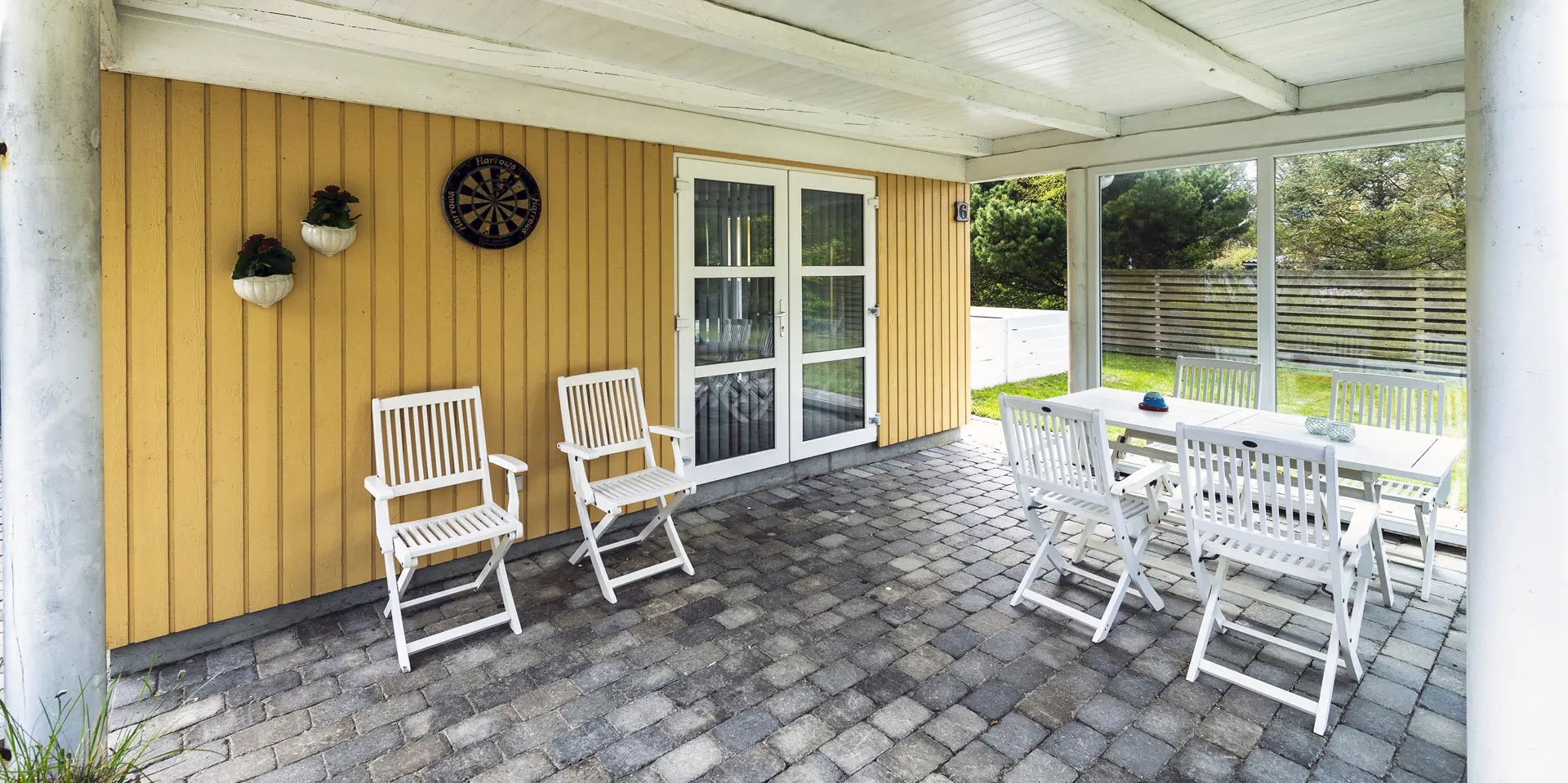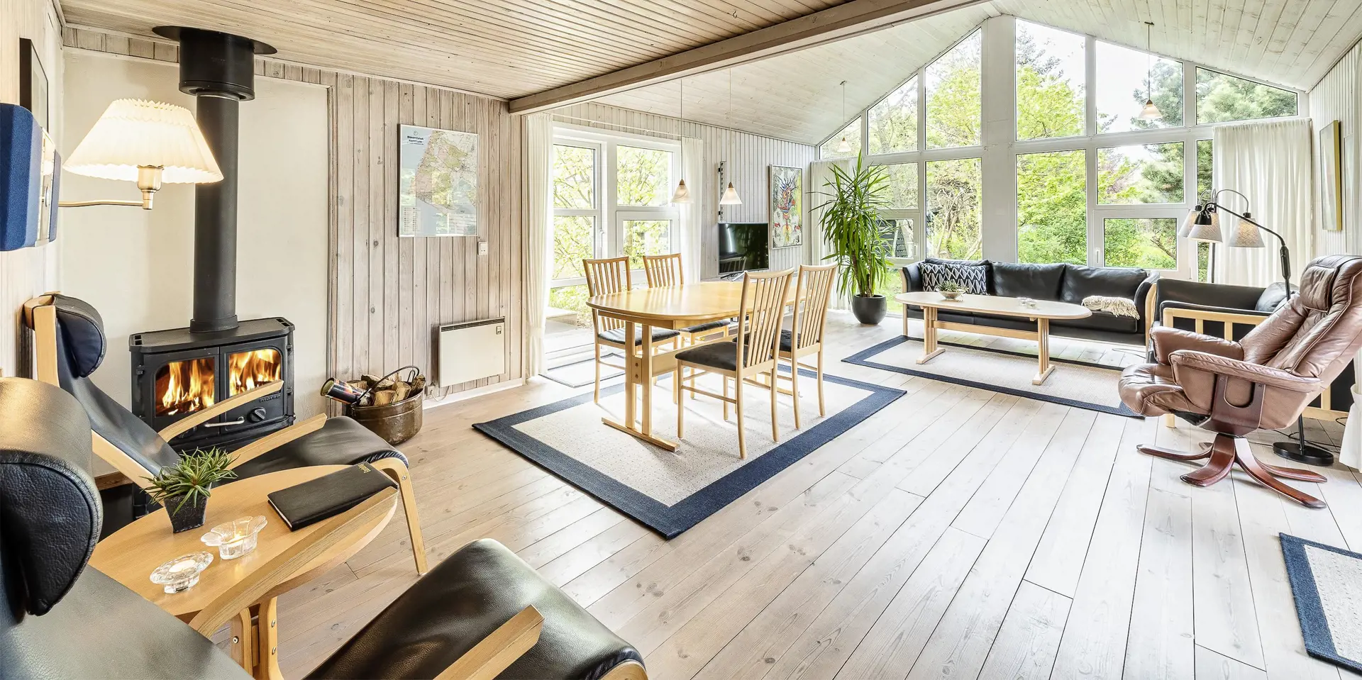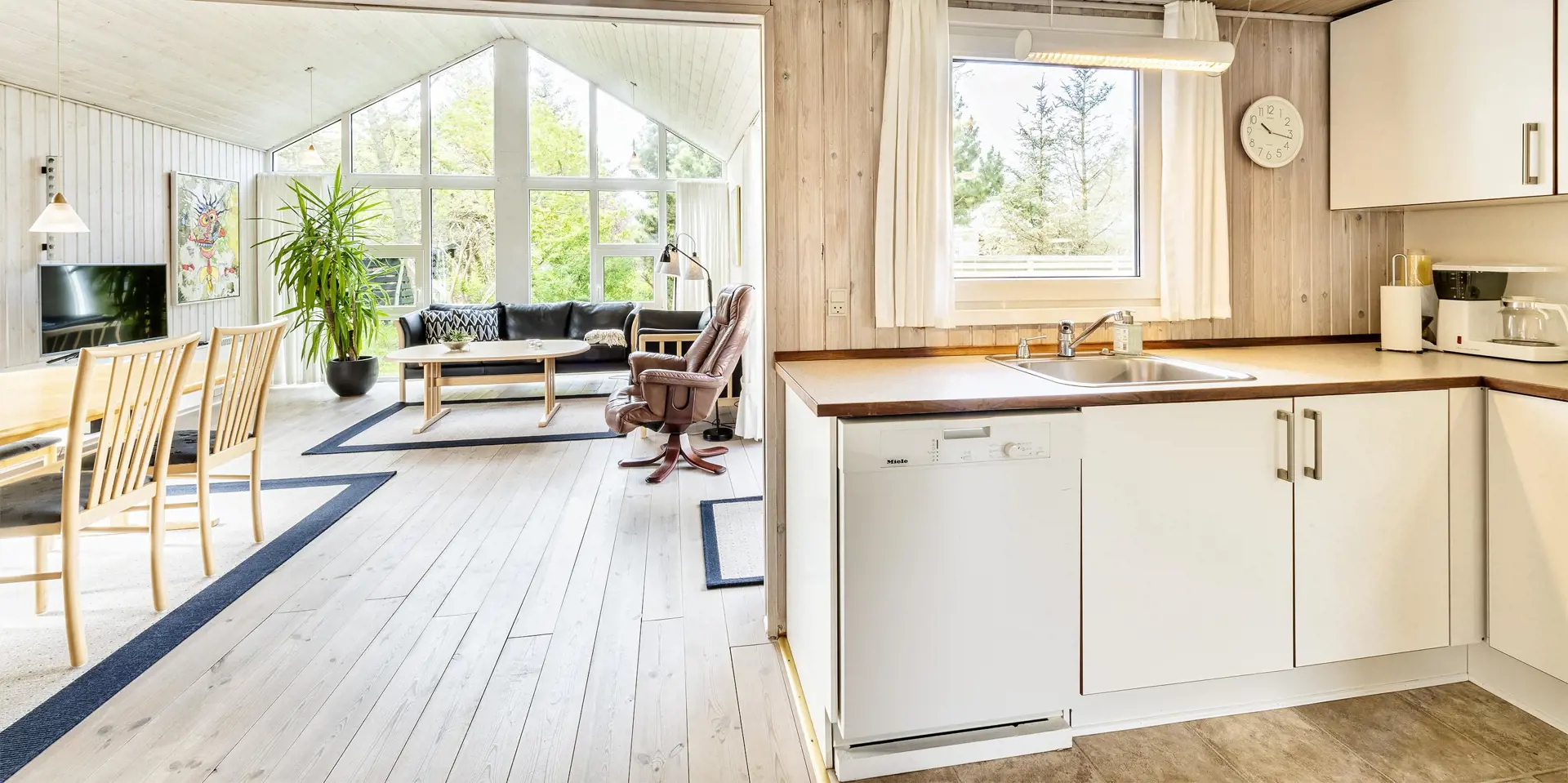 Geschmackvoll eingerichtetes Ferienhaus auf einem schönen Naturgrundstück, umgeben von Büschen und Bäumen und es ist für 4 Personen ausgestattet. Der Strand ist nur 600 Meter vom Haus entfernt. Das gesamte Ferienhaus ist mit einem schicken Holzfußboden versehen, ausser der Küchenbereich und das Badezimmer. Das Wohnzimmer erscheint hell und freundlich durch die großen Fensterelemente und hat außerdem noch gemütliche Sitzmöbel. Das deutsche Fernsehprogramm empfangen Sie über eine Parabolantenne. Der im Wohnbereich befindliche Kamin strahlt eine angenehme Wärme und Atmosphäre aus. Der Küchenbereich ist zum Essplatz offen gehalten und verfügt über einen Herd mit Cerankochfeld, einer Geschirrspülmaschine, einem Backofen, einer Mikrowelle und einer Kühl- und Gefrierkombination. Das neue Badezimmer verfügt über ein WC, ein Handwaschbecken und eine Dusche. Die Waschmaschine ist hier ebenfalls untergebracht. Die Ablagefläche neben dem Handwaschbecken bietet ausreichend Platz für Ihre Badutensilien. Es befinden sich zwei Schlafzimmer im Ferienhaus: DB + DB. Es gibt mehrere Terrassen am Ferienhaus. Eine davon ist überdacht und teilweise geschlossen. Hier können Sie gemütlich Ihren Grillabend ausstatten, auch wenn mal ein paar Tropfen vom Himmel fallen sollten, es bleibt alles trocken. In dem Carport findet Ihr Fahrzeug Platz und ist gut untergebracht. Einen Shelter, ein Schaukelstativ und eine Sandkiste stehen für die kleinen Gäste ebenfalls zur Verfügung. Das Ferienhaus verfügt über einen Internetanschluss (W-Lan mit 200/200 Mbit). Es sind keine Hunde und Katzen erlaubt! Das Rauchen im Ferienhaus ist nicht erlaubt. Das Ferienhaus wurde 1966 erbaut und in 2015 renoviert.