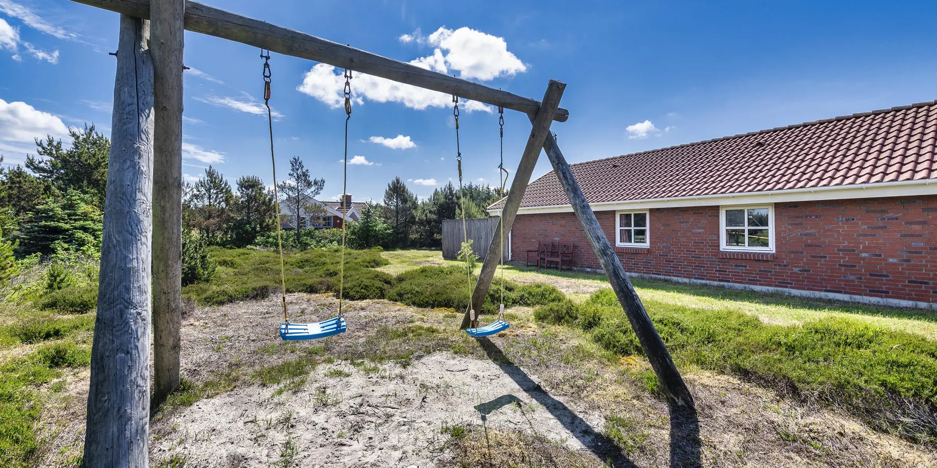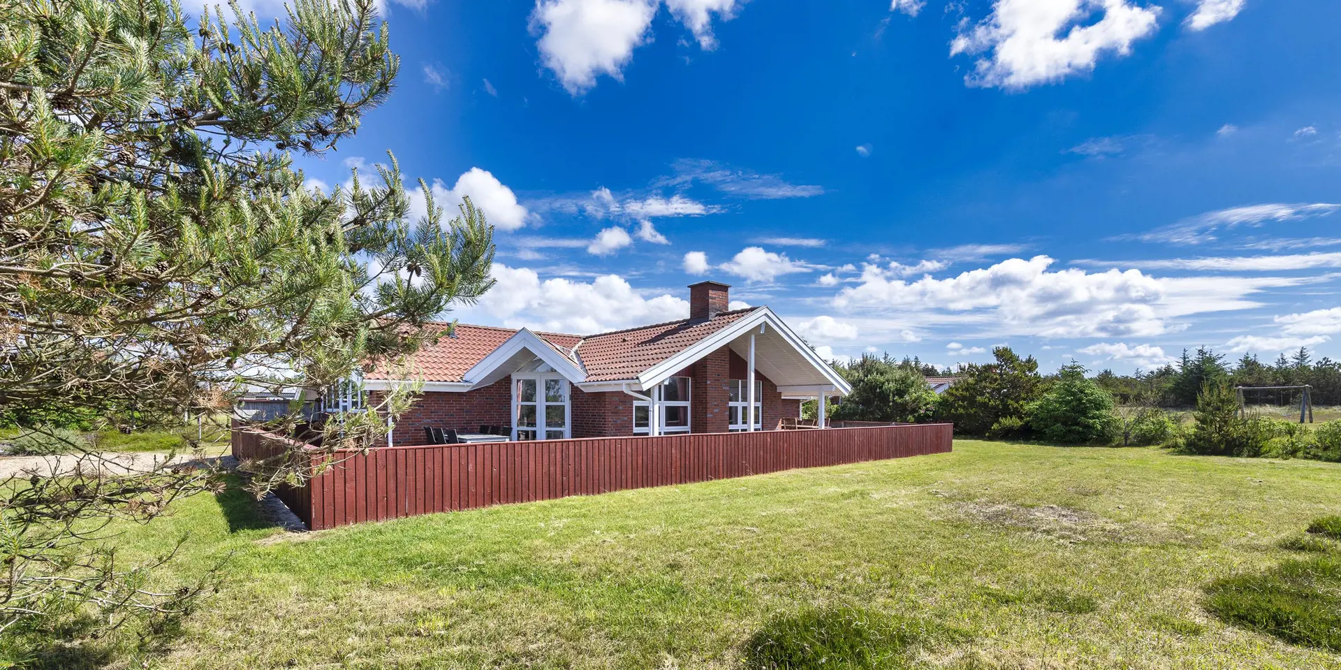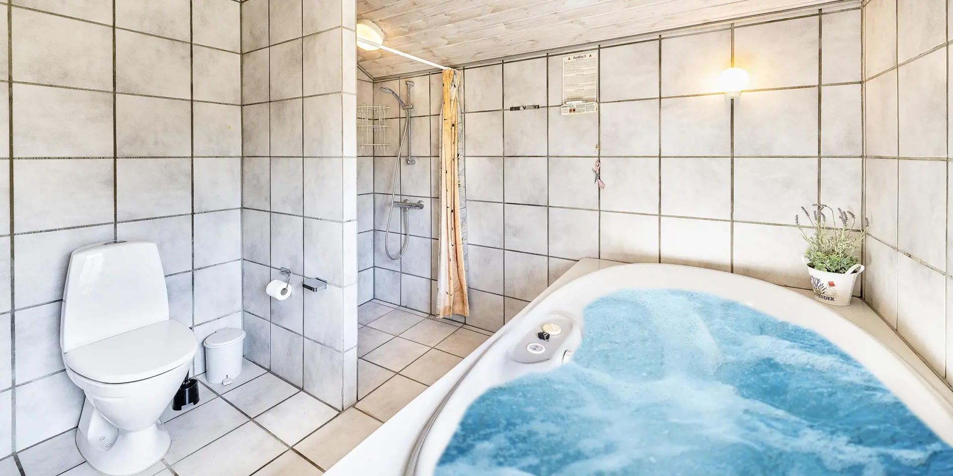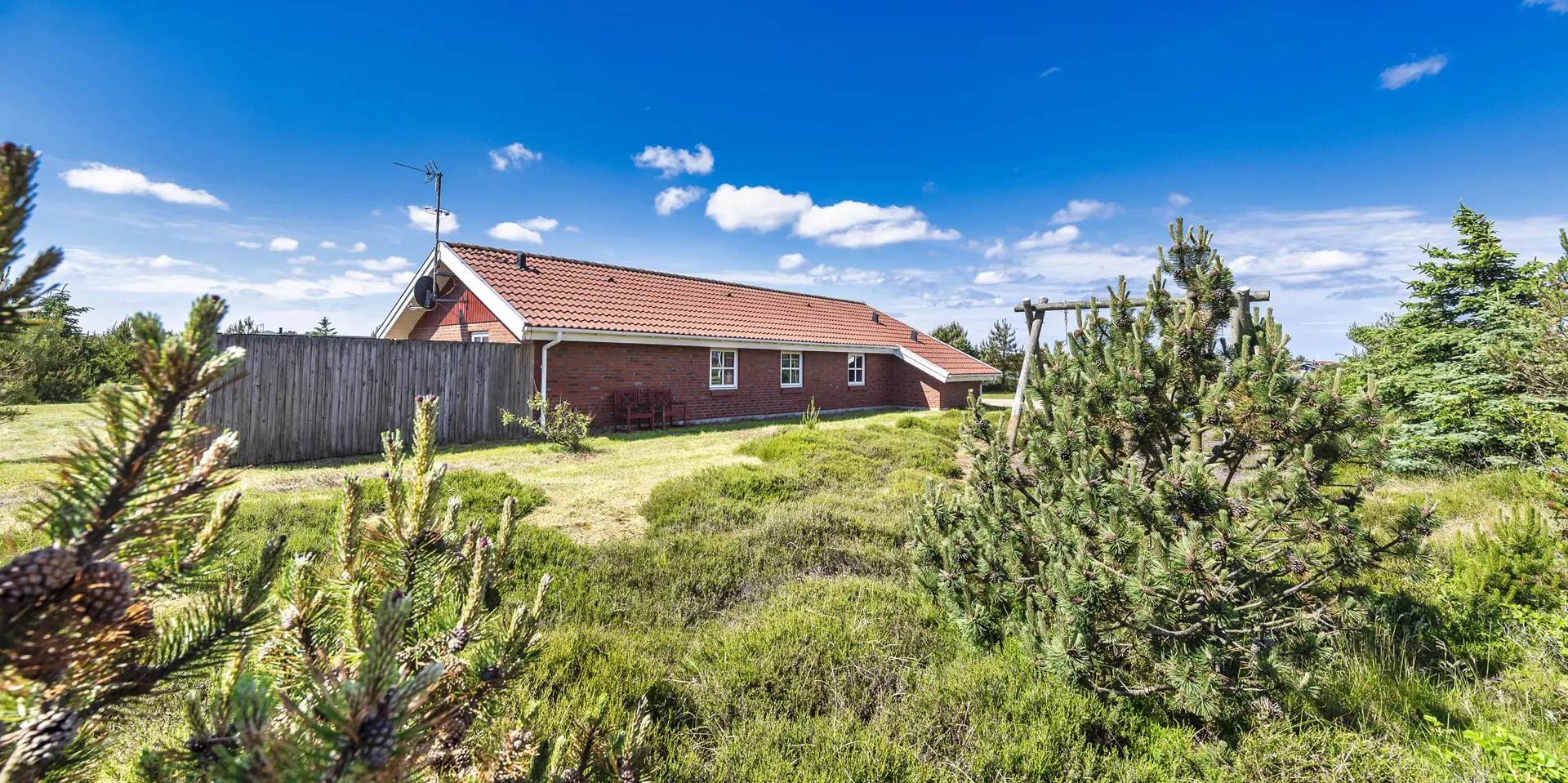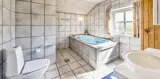 Dieses Ferienhaus befindet sich auf einem Naturgrundstück, mit Blick auf den kleinen See und ist für 6 Personen ausgestattet. Der Strand ist ca. 1 Km vom Ferienhaus entfernt. Hinter dem Ferienhaus ist ein kleines Waldgebiet und dort führt auch ein Fußweg von Vejers Strand nach Grærup Strand. Hier können Sie gemütlich mit Ihren Vierbeinern einen langen Spaziergang machen. Auf der großen geschlossenen Terrasse können Ihre Vierbeiner mal Luft schnappen, ohne das Sie stiften gehen können. Auf dem Ferienhaus befinden sich solarcellen, die Ihnen auch zu Gute kommen. Der Strom ist für Sie als Gast dann etwas günstiger und das Ferienhaus ist energiesparender geworden. Das Wohnzimmer verfügt über einen Kamin und ist mit einer großen Rundsitzecke ausgestattet. Es befindet sich eine Warmepumpe im Ferienhaus. Mit dieser Warmepumpe haben sie die Möglichkeit die Stromkosten zu senken, denn die Warmepumpe ist energiesparend. Smart TV und das deutsche Fernsehprogramm ist über eine Parabolantenne zu empfangen. Die beiden Tische im Wohn- und Essbereich sind abgestimmt und sind Antik ähnlich. Die Küche ist einfach gehalten bietet aber alles was Sie benötigen. Sie ist mit einem Herd mit Cerankochfeld, einem Backofen, einer Mikrowelle, einer Geschirrspülmaschine und einer Kühl- und Gefrierrkombination ausgestattet. Das Badezimmer ist mit einem WC, einem Handwaschbecken, einer Dusche, einer Sauna und einem Whirlpool ausgestattet. Es gibt noch ein weiteres kleines Gästebad mit WC und Handwaschbecken. Es gibt insgesamt drei Schlafzimmer im Hause: DB + DB + 2 Etagenbett. Allerdings wünscht der Eigentümer, das nicht mehr als 6 Personen das Haus beziehen. Die Waschmaschine und der Trockner befinden sich im Hauswirtschaftsraum. Eine Schaukel und eine Sandkiste stehen für die Kleinen Gäste auf dem Grundstück zur Verfügung. Das Ferienhaus verfügt über einen Internetanschluss (W-Lan). Bei diesem Ferienhaus steht gratis Heizmaterial vom Eigentümer für den Kamin zur Verfügung. Es sind max. drei Haustiere erlaubt. Gratis Eintritt für das Badeland in Oksbøl in 2025. Das Ferienhaus wurde 1991 erbaut.