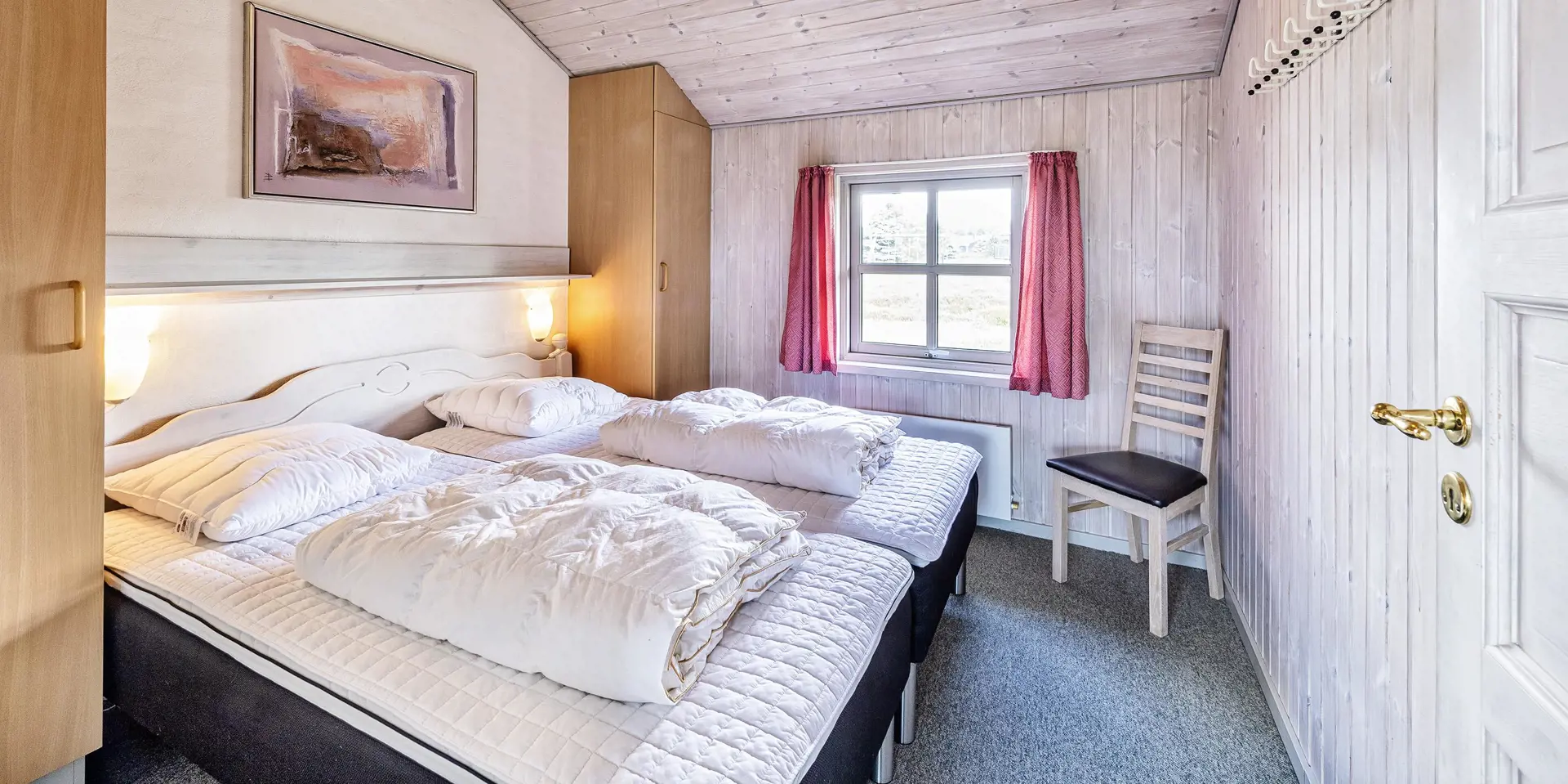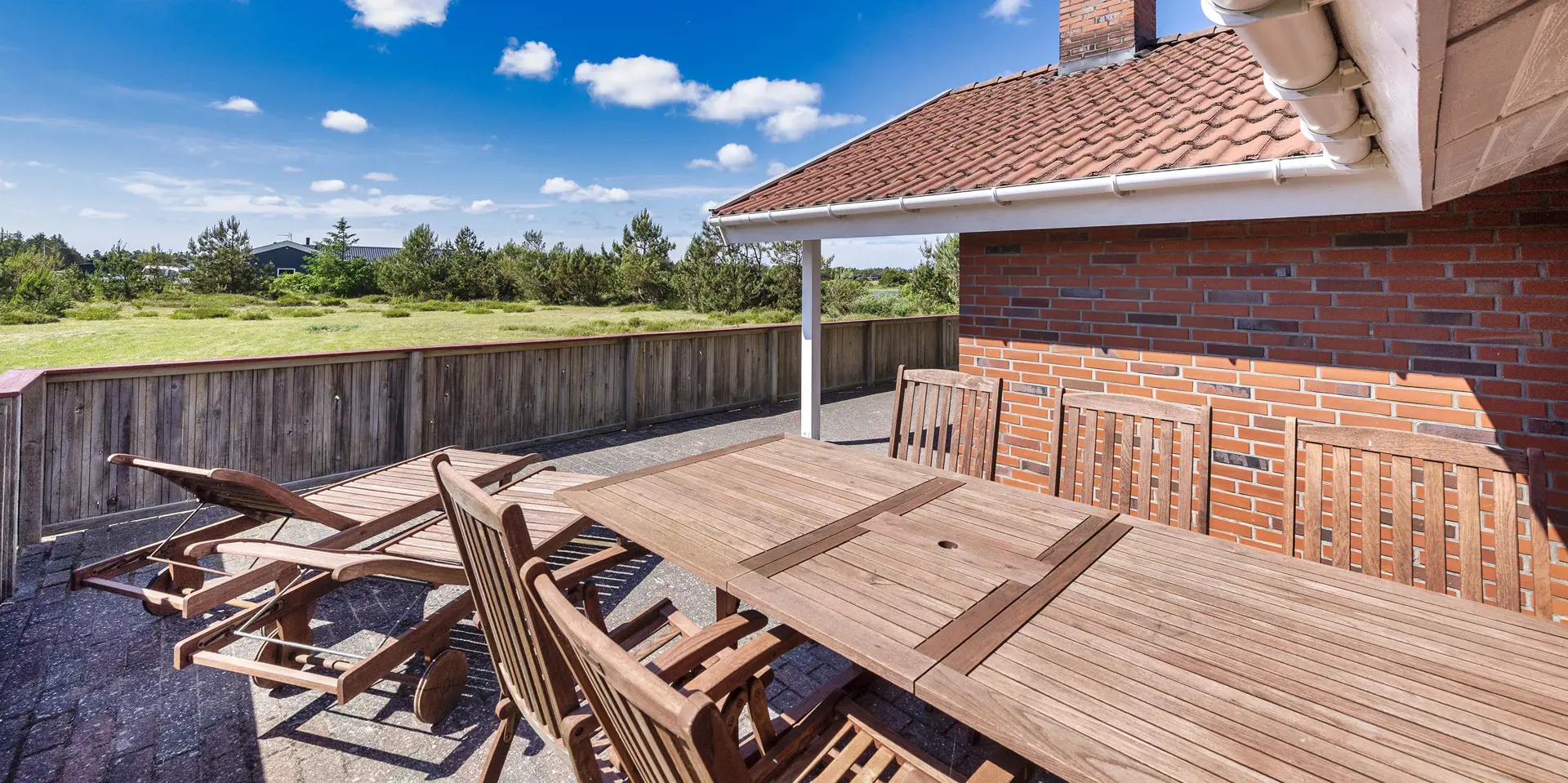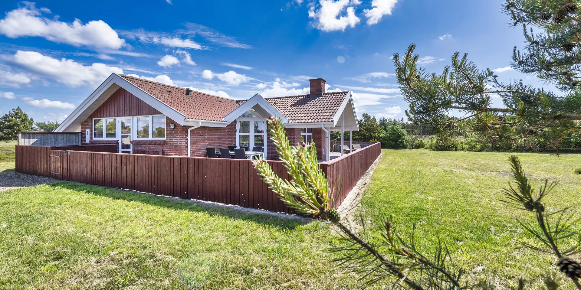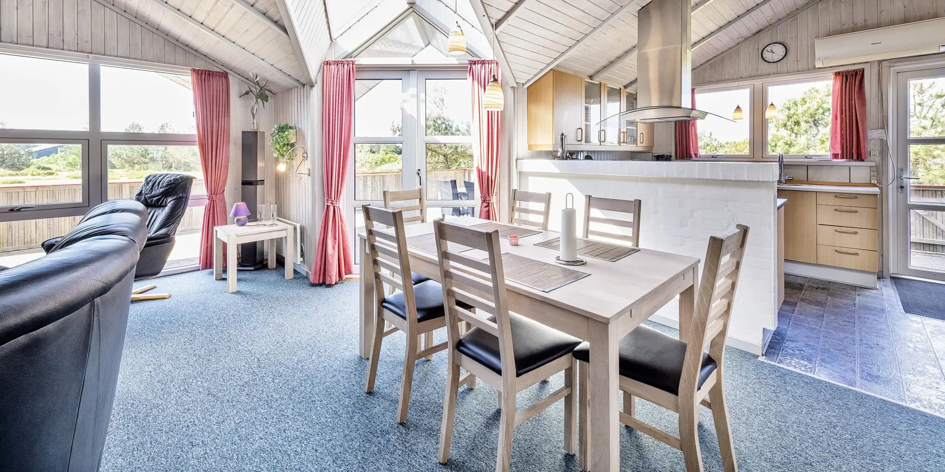 Dieses Ferienhaus befindet sich auf einem Naturgrundstück, mit Blick auf den kleinen See und ist für 6 Personen ausgestattet. Der Strand ist ca. 1 Km vom Ferienhaus entfernt. Hinter dem Ferienhaus ist ein kleines Waldgebiet und dort führt auch ein Fußweg von Vejers Strand nach Grærup Strand. Hier können Sie gemütlich mit Ihren Vierbeinern einen langen Spaziergang machen. Auf der großen geschlossenen Terrasse können Ihre Vierbeiner mal Luft schnappen, ohne das Sie stiften gehen können. Auf dem Ferienhaus befinden sich solarcellen, die Ihnen auch zu Gute kommen. Der Strom ist für Sie als Gast dann etwas günstiger und das Ferienhaus ist energiesparender geworden. Das Wohnzimmer verfügt über einen Kamin und ist mit einer großen Rundsitzecke ausgestattet. Es befindet sich eine Warmepumpe im Ferienhaus. Mit dieser Warmepumpe haben sie die Möglichkeit die Stromkosten zu senken, denn die Warmepumpe ist energiesparend. Smart TV und das deutsche Fernsehprogramm ist über eine Parabolantenne zu empfangen. Die beiden Tische im Wohn- und Essbereich sind abgestimmt und sind Antik ähnlich. Die Küche ist einfach gehalten bietet aber alles was Sie benötigen. Sie ist mit einem Herd mit Cerankochfeld, einem Backofen, einer Mikrowelle, einer Geschirrspülmaschine und einer Kühl- und Gefrierrkombination ausgestattet. Das Badezimmer ist mit einem WC, einem Handwaschbecken, einer Dusche, einer Sauna und einem Whirlpool ausgestattet. Es gibt noch ein weiteres kleines Gästebad mit WC und Handwaschbecken. Es gibt insgesamt drei Schlafzimmer im Hause: DB + DB + 2 Etagenbett. Allerdings wünscht der Eigentümer, das nicht mehr als 6 Personen das Haus beziehen. Die Waschmaschine und der Trockner befinden sich im Hauswirtschaftsraum. Eine Schaukel und eine Sandkiste stehen für die Kleinen Gäste auf dem Grundstück zur Verfügung. Das Ferienhaus verfügt über einen Internetanschluss (W-Lan). Bei diesem Ferienhaus steht gratis Heizmaterial vom Eigentümer für den Kamin zur Verfügung. Es sind max. drei Haustiere erlaubt. Gratis Eintritt für das Badeland in Oksbøl in 2025. Das Ferienhaus wurde 1991 erbaut.