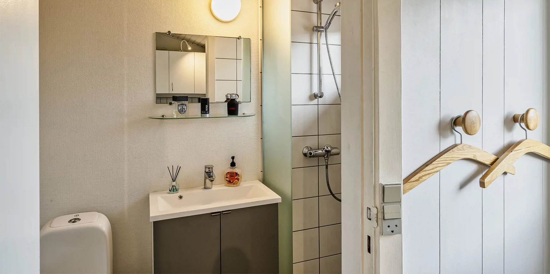 Diese kleine geschmackvoll eingerichtete Doppelhaushälfte liegt in einer kleinen Wohnanlage die sich ”Minerva” nennt und ist für 2 Personen gut ausgestattet. Von hier ist der Strand in nur ca. 8 Minuten zu Fuß zu erreichen. Beste Lage um nicht jedes Mal das Auto starten zu müssen. Der Eingangsbereich befindet sich zum Innenhof der Anlage. Der Wohn- und Essbereich ist hell und licht durchflutet durch das große Oberlicht und einer großen Fensterfront. Es befindet sich ein kleiner Kaminofen im Haus, der für eine gemütliche Atmosphäre sorgt. Deutsches Fernsehprogramm können Sie über eine Gemeinschafts Parabol-Antenne empfangen (Chromecast). Die Küche ist mit Herd mit Ceranfeld, einem Backofen und einem Kühlschrank ausgestattet. Das Badezimmer verfügt über eine kleine Dusche, einem WC und einem Handwaschbecken. 1 Schlafzimmer: DB. Wärmepumpe ist auch vorhanden, darf aber in der Zeit vom 01.05. bis 31.10. eines Jahres nicht genutzt werden, wegen der Nachbarn. Die Warmepumpe ist energiesparend und damit haben Sie die Möglichkeit die Stromkosten zu senken. Desweiteren ist die Terrasse geschlossen und hat genügend Gartenmöbel zum Relaxen. Rauchen ist nicht erlaubt. Internetanschluss (W-lan/5Gt/100 mbps). Es sind keine Haustiere erlaubt, mit Ausnahme ein kleiner Hund mit max. Rückenhöhe von 45 cm. Dieser darf auf keinen Fall auf die Möbel oder in die Betten. Es steht den Gästen ein Weber-Gasgrill zur freien Benutzung. Für kleine handelsüblichen Gaskatuschen haben die Mieter selber zu sorgen. Die Anlage wurde 1961 erbaut. Es gibt eine Möglichkeit den Swimmingpool beim Familien Camping gegen eine kleine Gebühr zu benutzen. Gemütliche Gemeinschaftsumgebung mit Bänken und einem kleinen Lagerplatz.