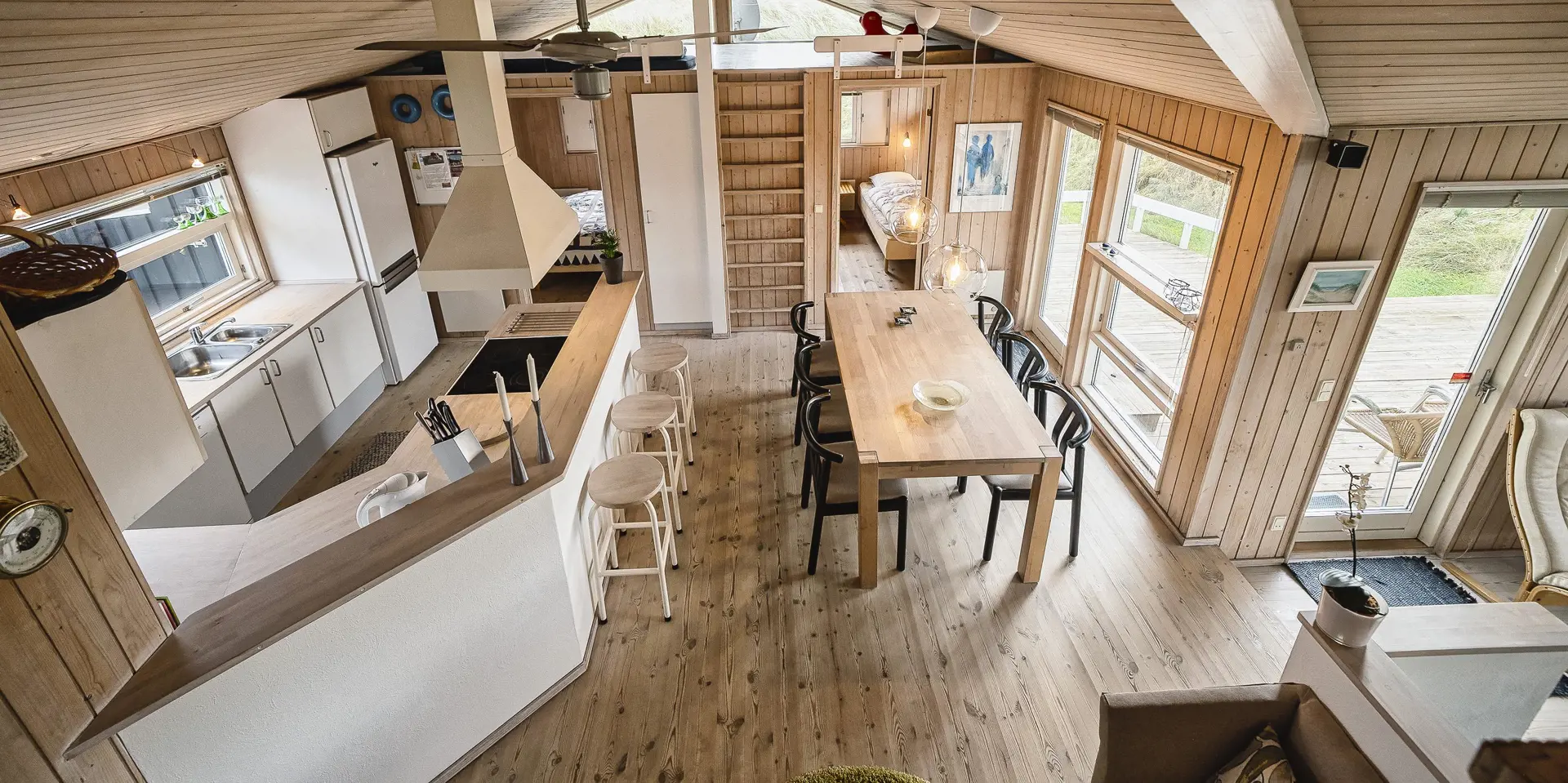 Helles und freundliches Ferienhaus auf einem uneinsehbarem Dünengrundstück gelegen und für 6 Personen ausgestattet. Das Ferienhaus liegt nur 200 Meter vom Strand entfernt. Das gesamte Ferienhaus ist mit einem hübschem Holzfußboden versehen, außer das Badezimmer. Vom Essbereich gelangt man über eine kleine Stufe nach unten in den Wohnbereich. Dort befindet sich ein Kamin und ein Smartfernseher. Das deutsche Fernsehprogramm empfangen Sie über eine Parabolantenne, chrome cast und DVD-spieler. Der große Küchenbereich ist mit einem Herd mit Cerankochfeld, einem Backofen, einer Geschirrspülmaschine, einer Mikrowelle und einer Kühl- und Gefrierkombination ausgestattet. Das Badezimmer verfügt über ein WC, ein Handwaschbecken, eine Dusche und einer Sauna. Es gibt insgesamt drei Schlafzimmer im Ferienhaus: DB + DB + 2EB. Das Ferienhaus verfügt über einen Internetanschluss (W-Lan). Desweiteren befindet sich eine Warmepumpe im Ferienhaus. Mit dieser Warmepumpe haben Sie die Möglichkeit die Stromkosten zu senken, da Sie energiesparend ist. Auf der am Haus befindlichen Terrasse ist auch ausreichend Platz. Ein kleiner Teil ist überdacht. Eine Sandkiste steht für die Kleinen Gäste zur Verfügung. Haustiere dürfen maksimal 30 cm gross sein. Es ist max. ein Haustier erlaubt. Bitte achten Sie aber darauf, das die Haustiere nicht auf die Möbel und in die Betten geht. Da legt der Eigentümer sehr viel Wert drauf. Das Rauchen ist nicht gestattet. Das Ferienhaus wurde 1988 erbaut.