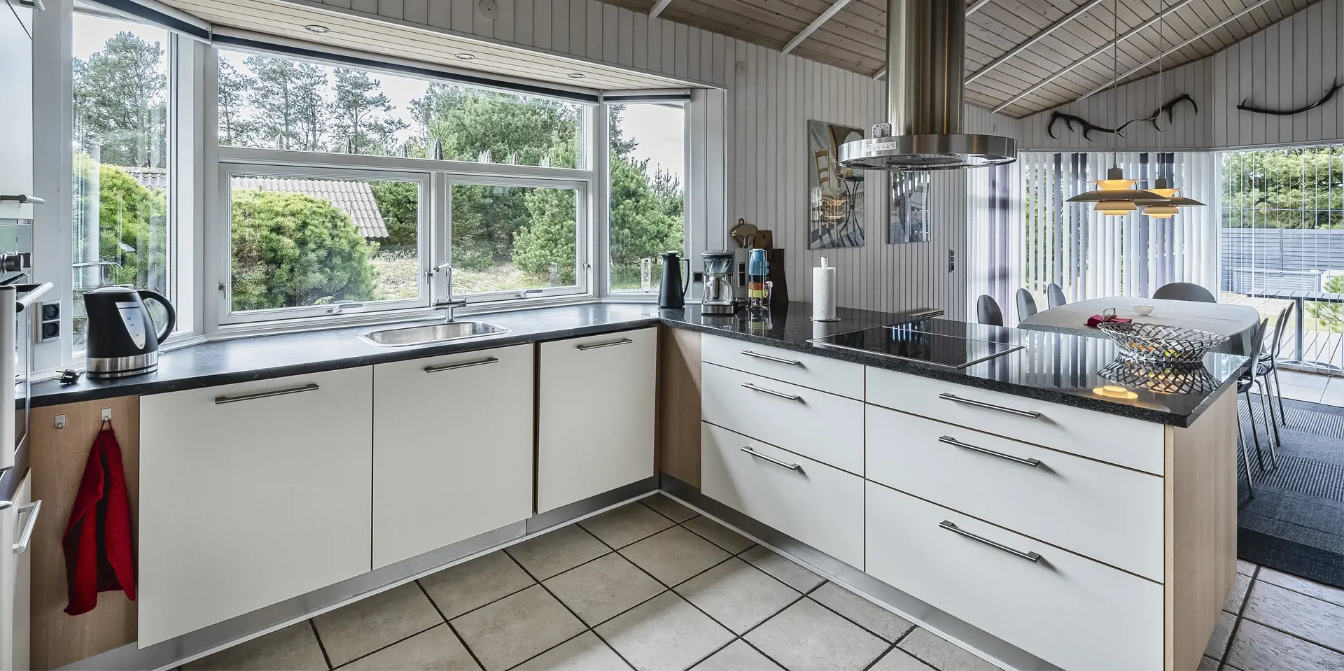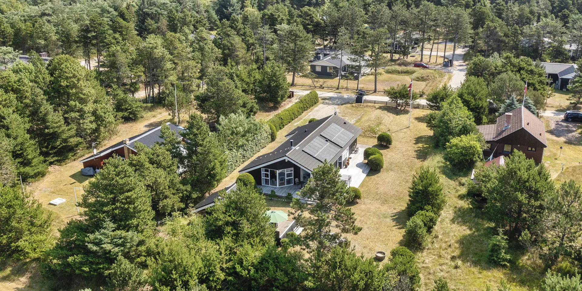Gemütliches Ferienhaus auf einem großen Naturgrundstück dicht am Waldgebiet gelegen und für 6 Personen ausgestattet. Der Strand ist ca. 1,8 Km vom Haus entfernt. Vom angrenzenden Waldgebiet kommen häufig die Hirsche und das Rotwild ganz dicht zu den Ferienhäusern und lieben es von den Gästen mit Obst und Gemüse verwöhnt zu werden. Das Wohnzimmer ist mit einem Kamin ausgestattet und recht hell und freundlich durch die vielen großen Fensterelementen, die sich bis in den Essbereich ziehen. Das deutsche Fernsehprogramm empfangen Sie über eine Parabolantenne. Es befindet sich eine Warmepumpe im Ferienhaus. Mit dieser Warmepumpe haben sie die Möglichkeit die Stromkosten zu senken, denn die Warmepumpe ist energiesparend. Die großzügige Küche verfügt über einen Herd mit Cerankochfeld, einem Backofen in arbeitshöhe, einer Mikrowelle, einer Geschirrspülmaschine und einer Kühl- und Gefrierkombination. Es gibt zwei Bäder im Ferienhaus. Das eine Badezimmer verfügt über ein WC, ein Handwaschbecken, eine Dusche und eine Sauna. Die Waschmaschine ist in diesem Badezimmer untergebracht. Das zweite Badezimmer ist mit einem WC, einem Handwaschbecken und einer Dusche ausgestattet. Es gibt insgesamt drei Schlafzimmer im Haus: DB + DB + 2B. Ein kleiner Hems, für die kleinen Gäste, steht auch zur Verfügung. Das Grundstück ist die reine Spieloase für Kinder. Auf der grosszügen Rasenfläche ist genügend platz zum Toben und Bolzen. Von der schönen Holzterrasse können Sie Ihre Kleinen dabei beobachten. Die Spielgeräte die sich noch auf den Bildern befinden stehen leider nicht mehr zur Verfügung. An dem Schuppen, der ebenfalls auf dem Grundstück steht, steht ein weiterer Terrassenbereich zur Verfügung. Das Ferienhaus verfügt über einen Internetanschluss (W-Lan). Es sind keine Haustiere erlaubt, mit Ausnahme ein kleiner Hund mit max. Rückenhöhe von 30 cm. Das Rauchen ist nicht gestattet. Das Ferienhaus ist in 2006 gebaut worden.
