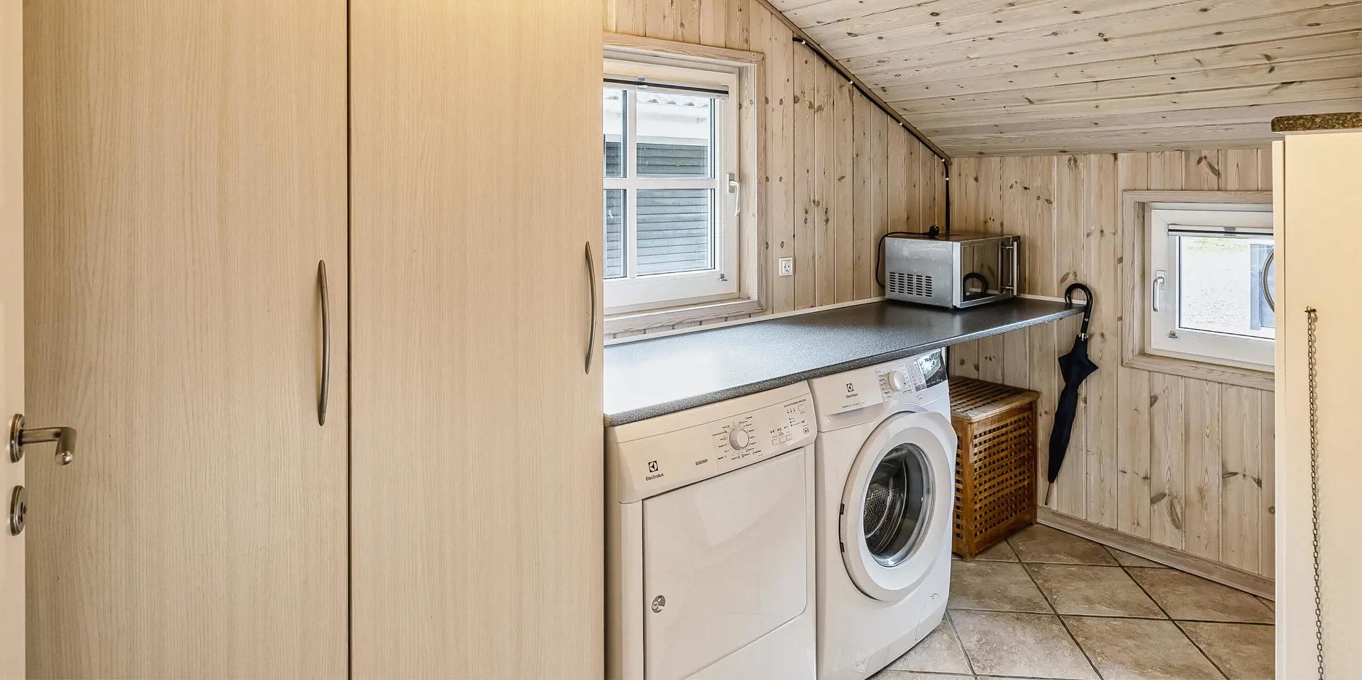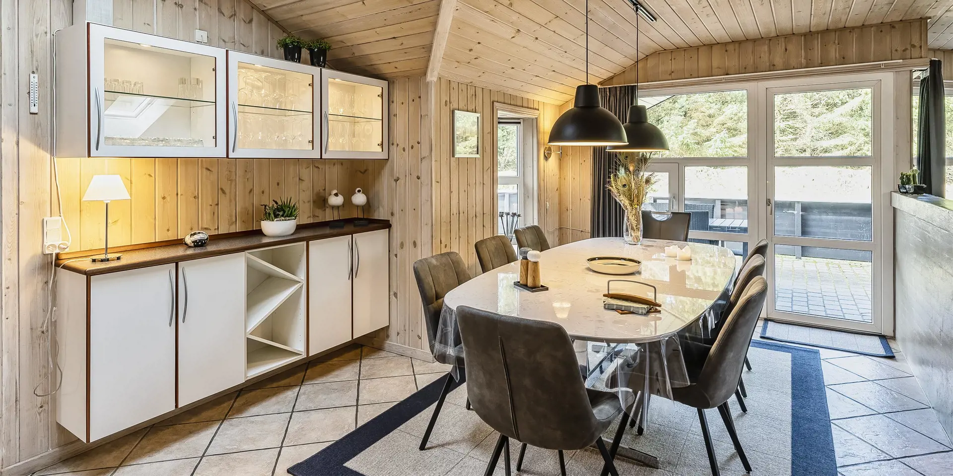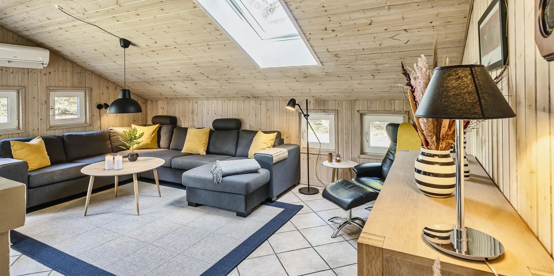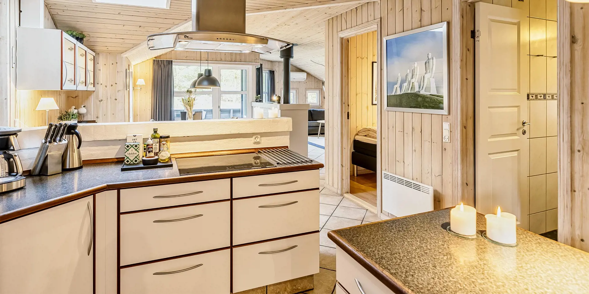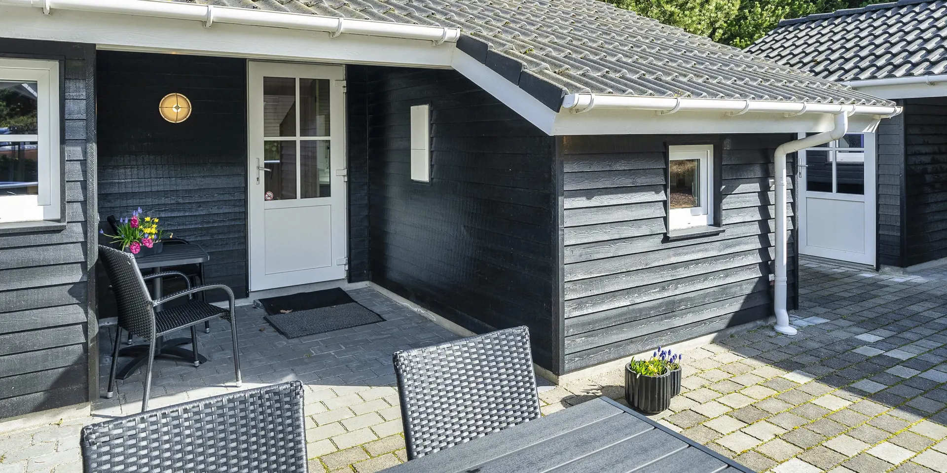 Freundliches und hell ausgestattetes Ferienhaus auf einem großen Grundstück für 8 Personen und von Bäumen umgeben. Der Strand ist rund 1 Km vom Haus entfernt. Die Terrasse ist grosszügig ums Haus verlegt und im vorderen Bereich geht es bis zum Carport ran. Auf den Grundstück befindet sich ein Schelter (Übernachtungshütte) für "hygge" oder Übernachtung. Das Carport ist ebenfalls mit einer Fliese verlegt. So haben Sie die Möglichkeit trockenen Fusses (ohne Matsch an den Schuhen) ins Ferienhaus zu gelangen. Ein kleiner Teil der Terrasse ist sogar überdacht. Das Wohnzimmer verfügt über einen Kaminofen, den Sie gut von der Rundsitzecke aus beobachten können. Das deutsche Fernsehprogramm empfangen Sie über Stofa, daher sind es nur 5-8 Kanäle die Sie empfangen können. Der Wohnbereich ist offen zur Küche. Die Küche verfügt über einen Herd mit Cerankochfeld, einem Backofen in Arbeitshöhe, einer Geschirrspülmaschine und einer Mikrowelle. Es gibt insgesamt 4 Schlafzimmer im Hause: DB + DB + DB + 2B. Das große Badezimmer hat ein WC, ein Handwaschbecken (in einer großen Arbeitsfläche eingelassen und bietet daher auch die Möglichkeit für einen Platz als Wickeltisch), eine Dusche, eine Handtuchhaltereizung, eine Sauna und der Whirlpool ist hier auch aufgestellt. Das kleinere Badezimmer hat ein WC, ein Handwaschbecken und eine Dusche. Im Hauswirtschaftsraum ist die Waschmaschine und er Trockner untergebracht. Es befindet sich eine Warmepumpe im Ferienhaus. Mit dieser Warmepumpe haben sie die Möglichkeit die Stromkosten zu senken, denn die Warmepumpe ist energiesparend. Das Ferienhaus verfügt über einen Internetanschluss (W-Lan). Rauchen ist nicht erlaubt. Es sind keine Haustiere erlaubt! Das Ferienhaus ist 2001 erbaut.