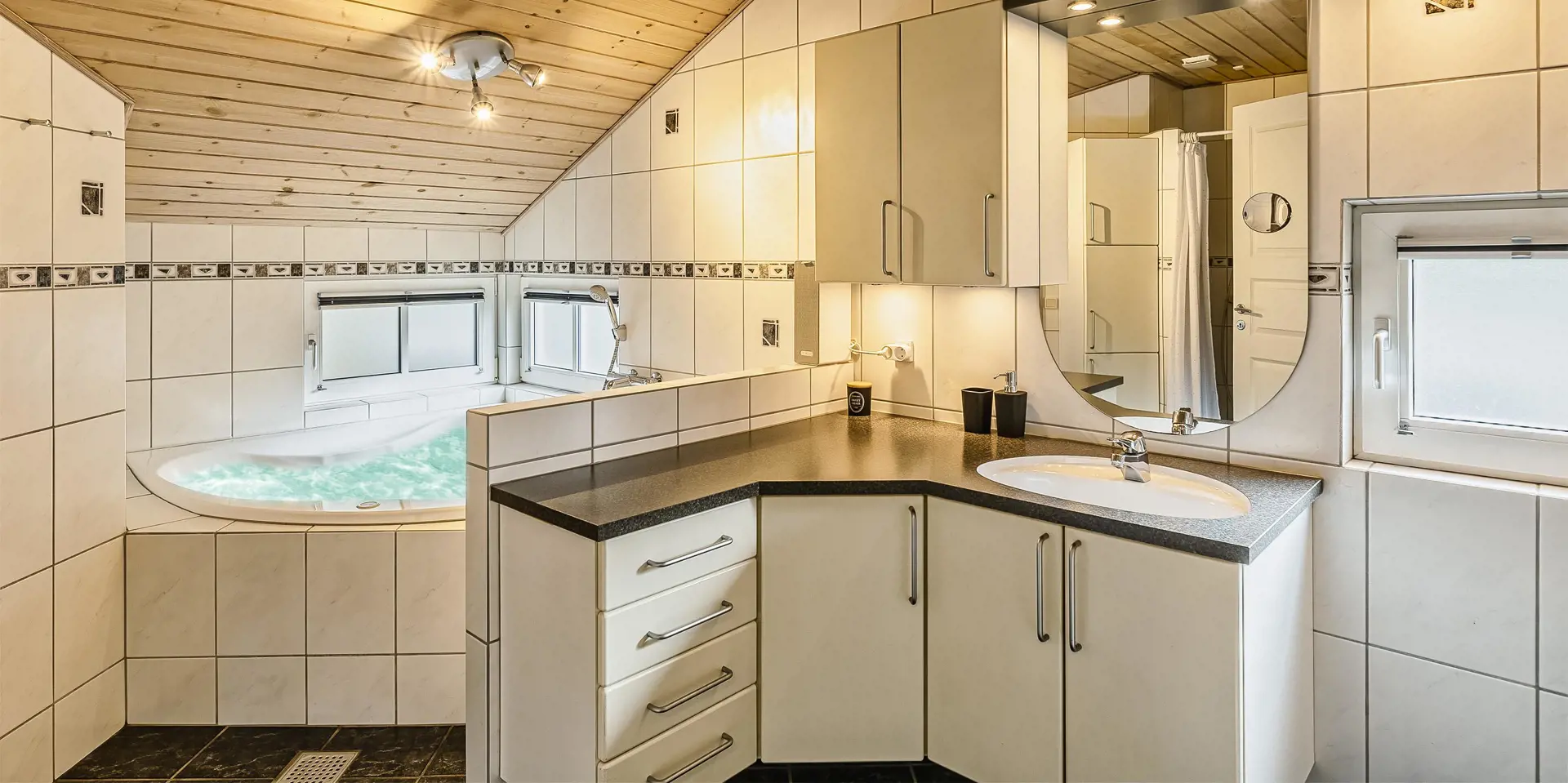 4 Schlafzimmer - 3 Schlafzimmer mit Doppelbett 180x200 cm. 1 mit 2 Einzelbetten (je 90x200 cm).