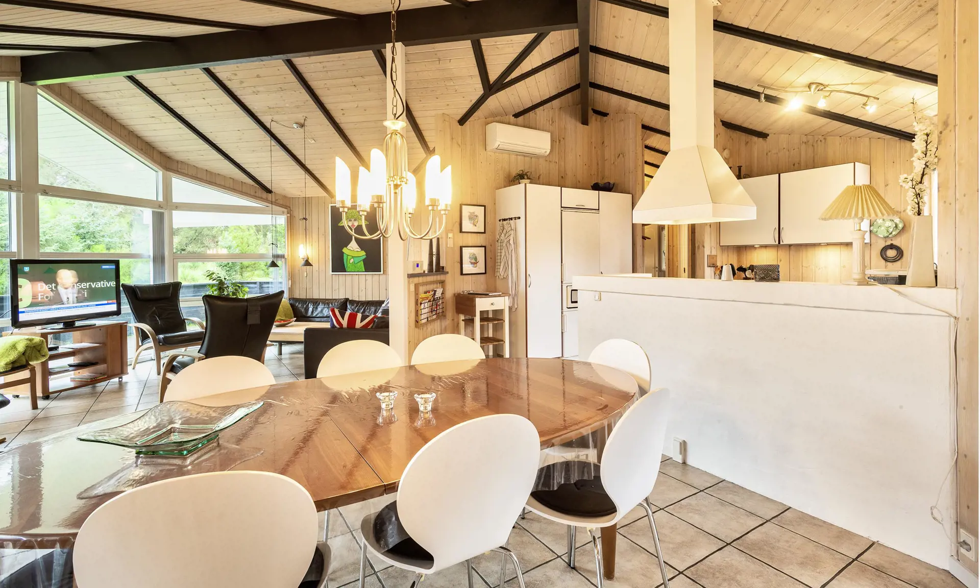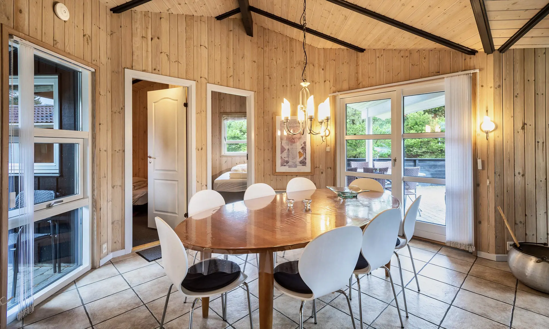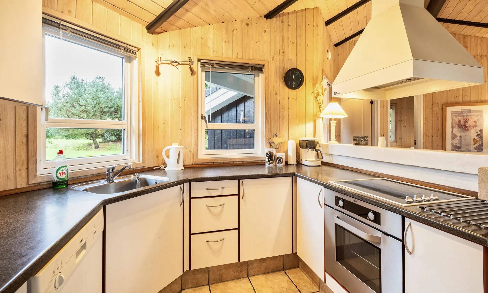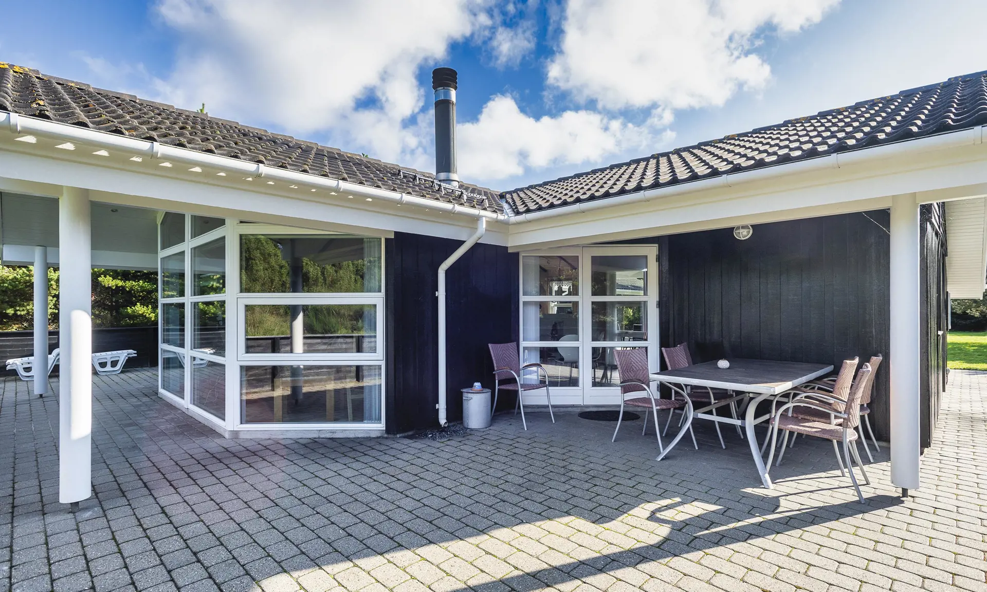 Dieses schönes Ferienhaus bietet für 8 Personen genügend Platz. Es liegt auf einem großzügigem Naturgrundstück und der Terrassenbereich ist kaum einsehbar. Der Strand ist nur 1 Km vom Haus entfernt. Die Schlafzimmer sind mit Teppichboden ausgelegt und der Rest ist mit Fliesen ausgelegt. Die mediterrane Bodenfliese im Wohn- und Essbereich strahlt eine angenehme Wärme aus. Im Wohnbereich ist der Kamin aufgestellt. Von der Sofagarnitur haben Sie direkten Blick auf den Kamin. Das deutsche Fernsehprogramm empfangen Sie über eine Parabolantenne. Smart-Tv. Stofa-TV. Es befindet sich eine Warmepumpe im Ferienhaus. Mit dieser Warmepumpe haben sie die Möglichkeit die Stromkosten zu senken, denn die Warmepumpe ist energiesparend. Die Küche ist zum Essbereich offen und verfügt über ein Herd mit Cerankochfeld, einem Backofen, einer Geschirrspülmaschine, eine Mikrowelle und einer Kühl- und Gefrierkombination. Fussbodenheizung im Küchenbereich. Die Ausstattung im Ferienhaus ist reichlich, es ist genügend Besteck und Geschirr vorhanden. Es gibt zwei Bäder im Ferienhaus. Das große Bad befindet sich im Eingangsbereich und hat ein WC, ein Handwaschbecken, eine Dusche, eine Sauna und und ein Whirlpool. In dem kleinen Bad, das sich auch im Eingangsbereich befindet, ist ein WC, einem Handwaschbecken und einer Dusche. Die Waschmaschine und er Trockner sind im kleinen Badezimmer untergebracht. Es gibt vier Schlafzimmer im Ferienhaus: DB + DB + DB + 2B. Das Ferienhaus verfügt über einen Internetanschluss (W-Lan). Ein Schaukelstativ befinden sich auf dem Grundstück für die kleinen Gäste. Ihr Fahrzeug findet in dem am Haus angrenzendem Carport seinen Platz und von hier kommen Sie dann trockenen Fußes in das Ferienhaus. Rauchen im Ferienhaus ist nicht erlaubt. Es ist max. ein Haustier erlaubt. Das Ferienhaus ist 2003 erbaut worden und in 2019 renoviert.