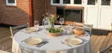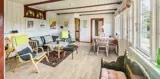 Das Wohnzimmer ist einfach gehalten in der Ausstattung, aber bietet genügend Platz für alle Bewohner. Es gibt ein Smart-TV und die deutschen Programme können über eine Parabol empfangen werden. Die Küche ist separat zu den anderen Räumlichkeiten und beinhaltet auch den Essbereich. Sie ist mit einem Herd mit Cerankochfeld, einem Backofen, einer Mikrowelle, einer Geschirrspülmaschine sowie einer Kühl- und Gefrierkombination ausgestattet. Der Bodenbereich ist mit Steinfliesen verlegt. Das Badezimmer verfügt über ein WC, ein Handwaschbecken und eine Dusche. Es gibt insgesamt drei Schlafzimmer im Ferienhaus: DB + DB + 2B. Internetanschluss (W-Lan) ist vorhanden. Am Haus befinden sich zwei Terrassenbereiche, ein großer Teil davon überdacht. Für die kleinen Gäste stehen eine Sandkiste und ein Schaukelgestell zur Verfügung. Es ist nur ein kleines Haustier erlaubt (max. 30 cm hoch). Das Rauchen ist nicht gestattet.