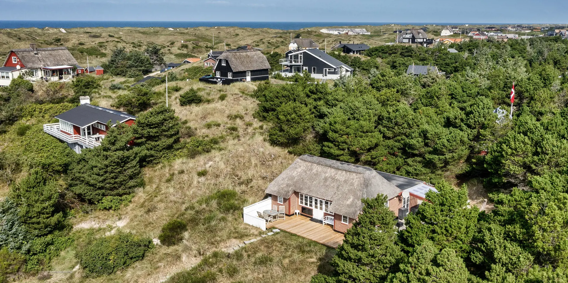 Einfaches gemütliches Reetdach-Ferienhaus mit Namen „Norly“ für 5 Personen ausgestattet. Der Strand ist nur 400 Meter vom Ferienhaus entfernt. Das Ferienhaus befindet sich auf einem 3000 m² großen Grundstück und auf einer Düne.