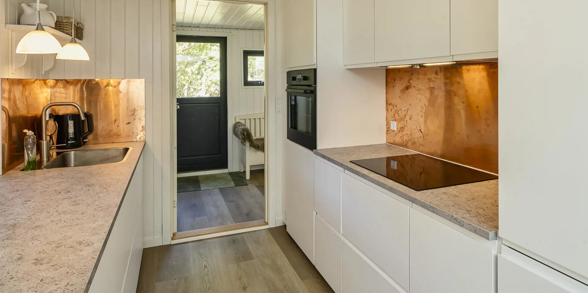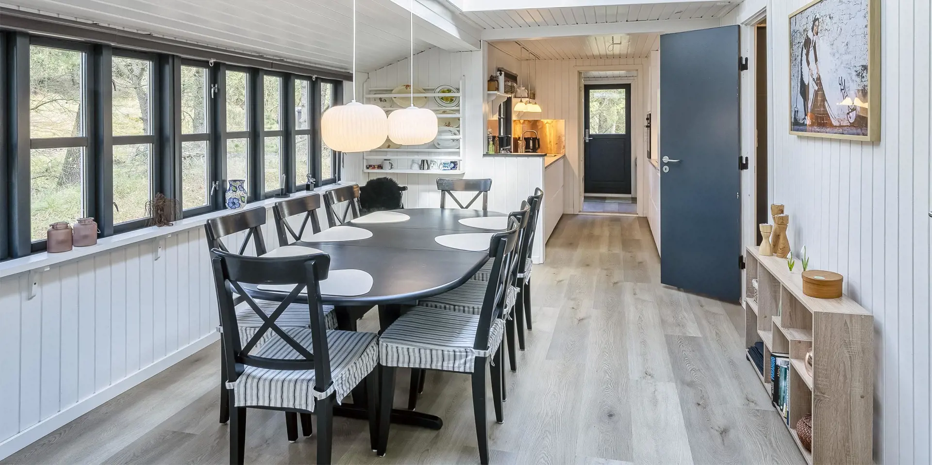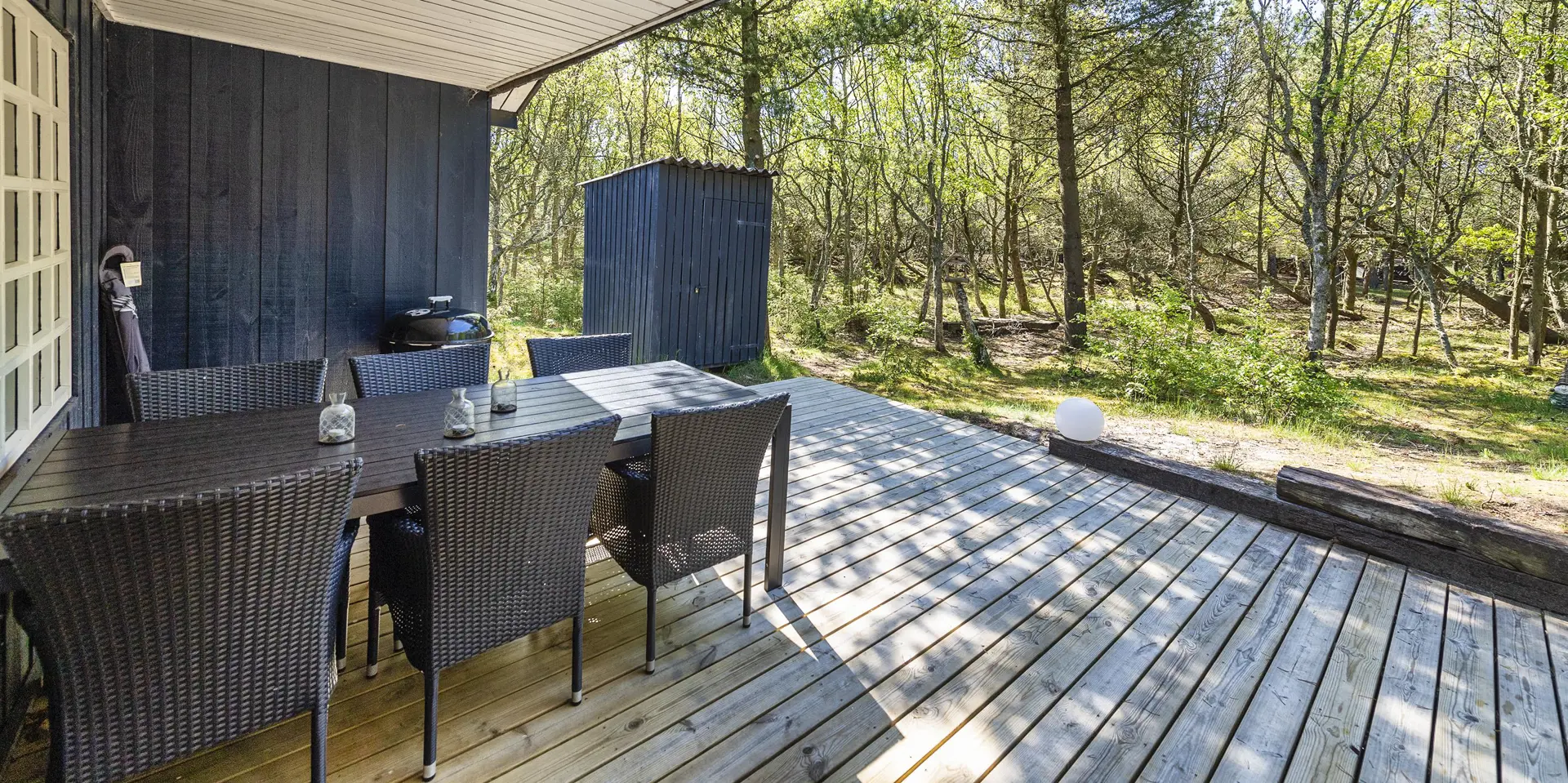 Dieses gemütlich und modern eingerichtete Ferienhaus liegt in Mitten eines Waldes, umgeben von Bäumen und Sträuchern. Das Haus ist für 6 Personen ausgestattet und liegt ca. 900 Meter vom Strand entfernt. Das Wohnzimmer ist mit seinen Möbeln nett eingerichtet und verfügt über einen Kamin. Chromecast. Die Küche ist zum Essbereich hin offen gehalten und verfügt über einen Herd mit Cerankochfelsd, einer Mikrowelle, einem Backofen, einer Geschirrspülmaschine und einem Kühlschrank. Der Essbereich ist hell und freundlich und bietet für alle seine Bewohner genügend Platz. Das Badezimmer ist mit einem WC, einem Handwaschbecken und einer Dusche ausgestattet (wurde renoviert 2020). Die Waschmaschine und ein Trockner sind hier ebenfalls untergebracht. Es gibt insgesamt drei Schlafzimmer: DB + DB + EB. Der freundliche Eingangsbereich ist gefliesst und bietet reichlich Platz für Jacken und Schuhe. Hinten am Ferienhaus ist auch eine kleine Terrasse, wobei auch ein kleiner Teil überdacht ist. Das Ferienhaus verfügt über einen Internetanschluss (W-Lan). Das Rauchen im Ferienhaus ist nicht erlaubt. Es sind keine Haustiere erlaubt, mit Ausnahme ein kleiner Hund mit max. Rückenhöhe von 30 cm. Das Ferienhaus ist in 1963 erbaut worden und laufend renoviert.