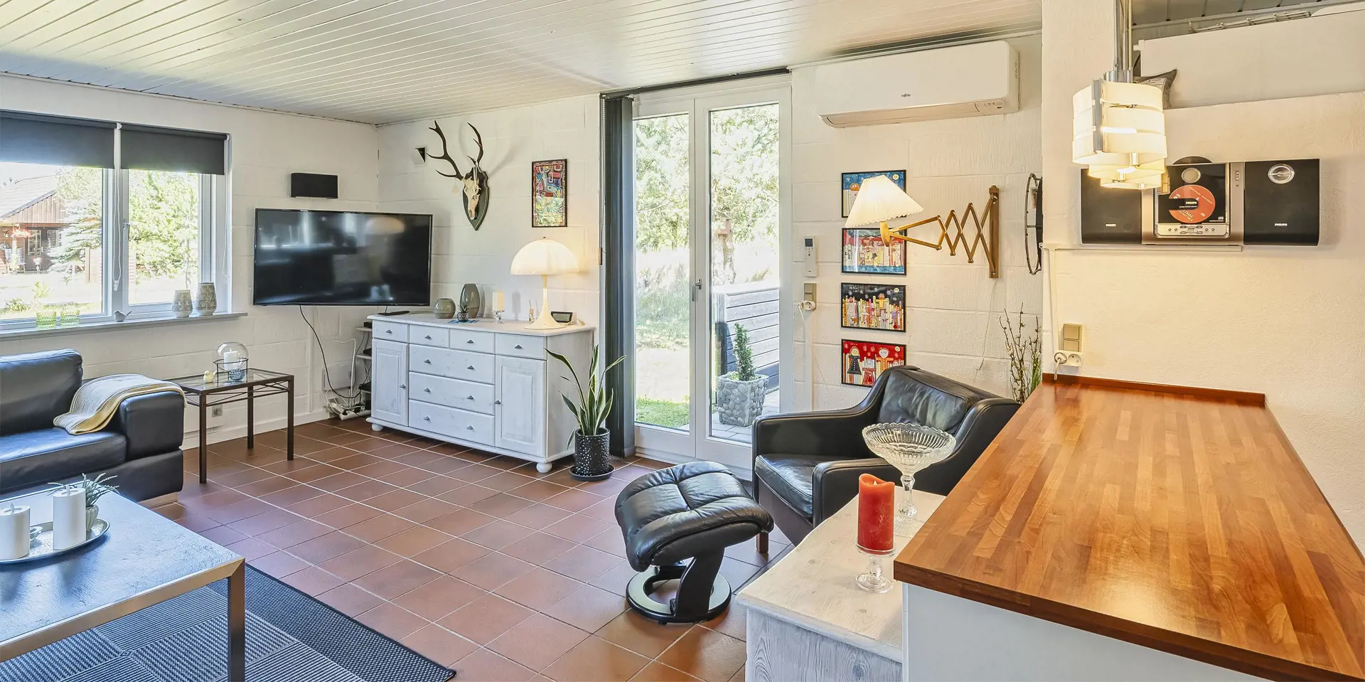Schönes Ferienhaus auf einem tollen Naturgrundstück dicht am Wald gelegen. In dieser Gegend ist es garantiert, das die Hirsche und das Rotwild auf ihrem Grundstück gerne vorbei schauen und sie liebes es von den Gästen mit Obst und Gemüse gefüttert zu werden. Das Ferienhaus ist für 4 Personen ausgestattet und ca. 2 Km vom Strand entfernt. Der Wohnbereich ist nett eingerichtet und mit einer Bodenfliese ausgestattet. Die Sitzgruppe bietet genügend Platz für alle seine Bewohner an. Die deutschen Fernsehprogramme empfangen Sie über eine Parabolantenne. Der Essbereich ist zur Küche hin offen. In diesem Bereich ist außerdem der Kamin aufgestellt. Es befindet sich eine Warmepumpe im Ferienhaus. Mit dieser Warmepumpe haben sie die Möglichkeit die Stromkosten zu senken, denn die Warmepumpe ist energiesparend. Die Küche verfügt über einen Herd mit Platten, einem Backofen, eine Geschirrspülmaschine, einer Mikrowelle und einer Kühl- und Gefrierkombination. Das Badezimmer hat ein WC, ein Handwaschbecken und eine Dusche. Der Trockner ist auch im Badezimmer untergebracht. Es sind insgesamt zwei Schlafzimmer vorhanden: DB + DB. In einem separaten Raum befindet sich die Waschmaschine. Haushaltsgeräte sind ausgetauscht worden. Ekstra Kühl- und Gefrierkombination im Schuppen vorhanden. Teilweise steht Solarenergie zur Verfügung. Das Ferienhaus verfügt über einen Internetanschluss (W-Lan). Die Terrasse am Ferienhaus ist geschlossen. Auf dem Grundstück befinden sich ein Schaukelstativ, eine Sandkiste und ein Klettergerüst mit Rutsche. Das Rauchen im Haus ist nicht erlaubt. Es sind keine Haustiere erlaubt. Desweiteren sind auch keine Jugendgruppen erwünscht. Das Haus ist nicht allergikerfreundlich, da der Eigentümer das Haus selbst mit einem Hund nutzt. Für dieses Ferienhaus fallen Zusatzkosten für den Wasserverbrauch an. Gratis Eintritt für Fitness in Vejers und Blåvand in 2025. Das Ferienhaus ist in 1970 erbaut worden und in 2003/2016 renoviert.