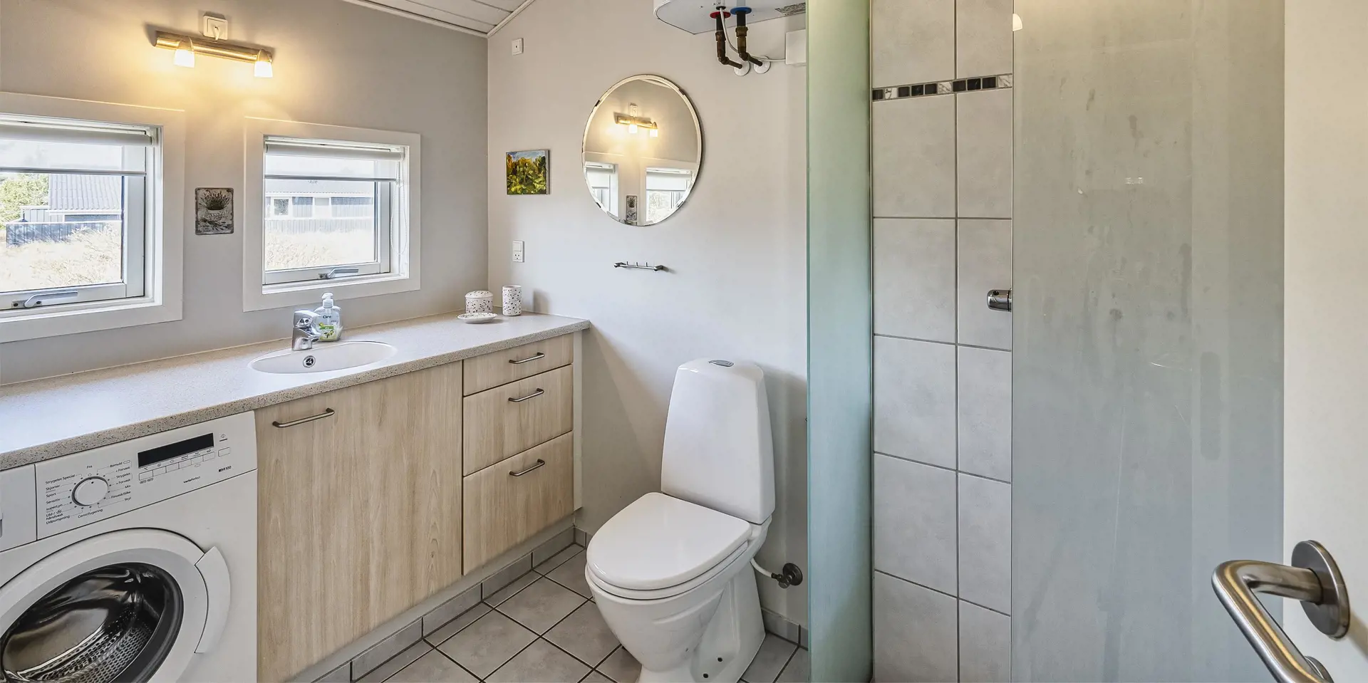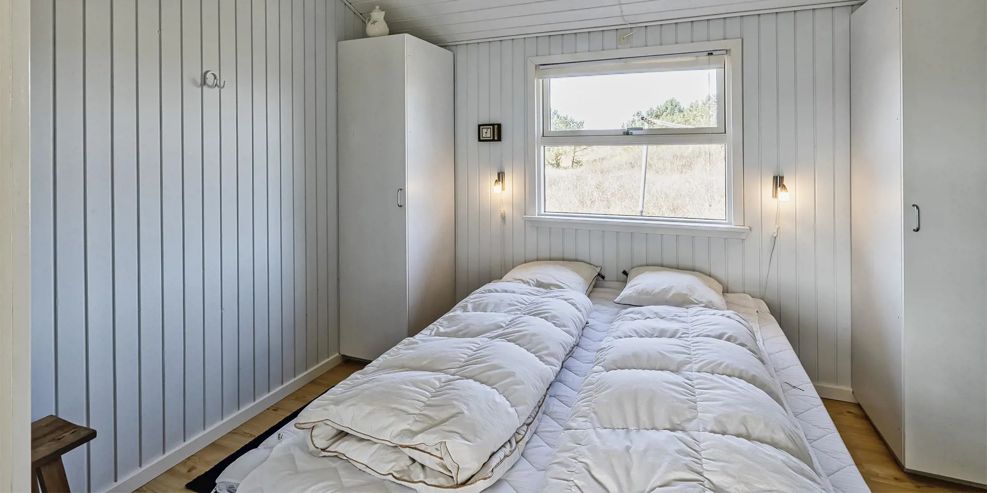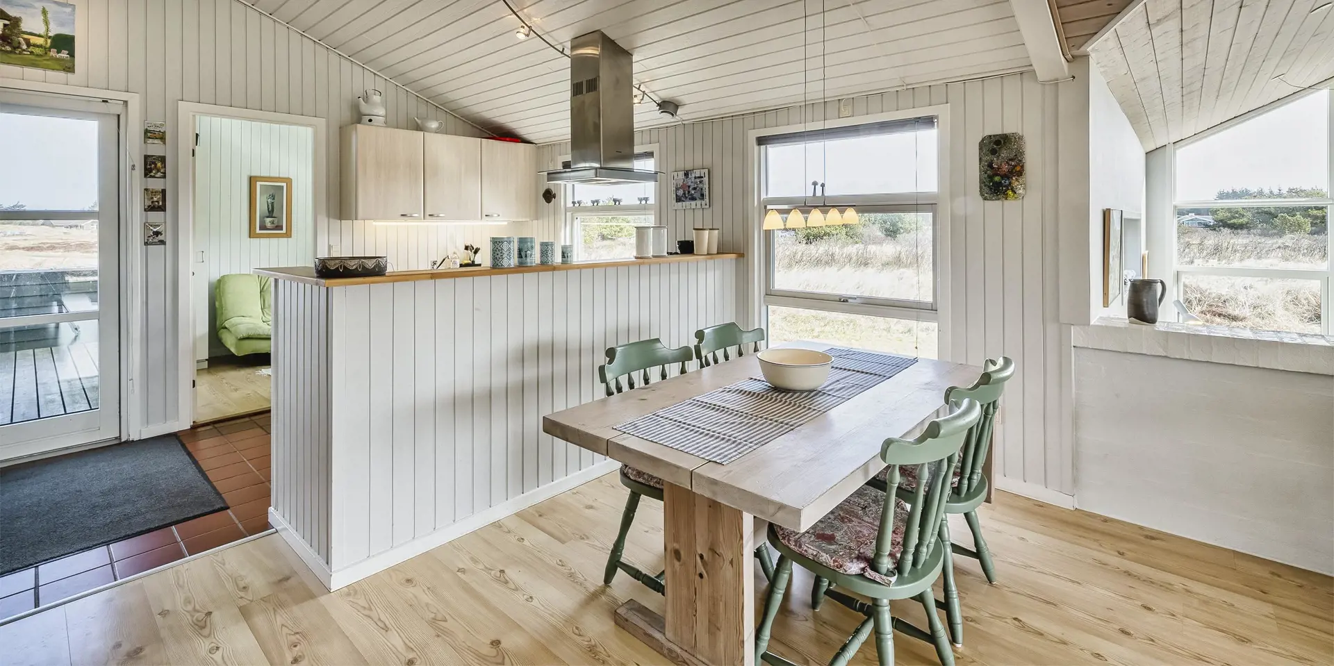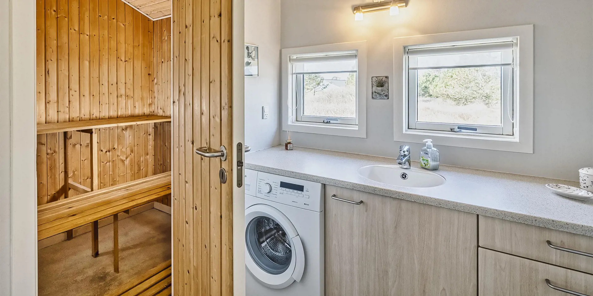 Freundlich ausgestattetes Ferienhaus für bis zu 4 Personen. Dieses Ferienhaus liegt nur 800 Meter vom Strand entfernt. Genießen Sie Ihren Kaffee doch auf der teilweise überdachten Terrasse und lauschen dem Meer zu oder haben einfach nur einen tollen Blick auf den kleinen See im Jafdalvej. Der Wohn- und Essbereich ist in zwei Bereiche aufgeteilt. Die gemütliche Sofaecke mit Blick auf den Kamin erreichen Sie über drei kleine Stufen, die Sie runter gehen. Dieser Bereich ist angebaut und mit einer hübschen Bodenfliese ausgestattet und auch der Kamin befindet sich hier und gibt eine wohlige Wärme ab. Ein weiterer Wohnbereich ist geradezu vom Eingangsbereich und mit Laminat versehen und mit Fussbodenheizung ausgestattet. Es befindet sich eine Warmepumpe im Ferienhaus. Mit dieser Warmepumpe haben sie die Möglichkeit die Stromkosten zu senken, denn die Warmepumpe ist energiesparend. Das deutsche Fernsehprogramm empfangen Sie über eine Parabol-Antenne, aber auch dänische DR programme können empfangen werden. Desweiteren steht Ihnen Google Chrome Cast zur Verfügung. Die offene Küche verfügt über einen Herd mit Cerankochfeld, einem Backofen, einer Mikrowelle,einer Geschirrspülmaschine und einer Kühl- und Gefrierkombination. Das Badezimmer ist mit einem WC, einer Dusche und einem Handwaschbecken ausgestattet. Desweiteren gibt es hier eine Fussbodenheizung. Ebenfalls befindet sich die Sauna und eine Waschmaschine im Badezimmer. Es sind 3 Schlafzimmer vorhanden. 2 Schlafzimmer DB + 2B. In dem dritten Zimmer befindet sich nur ein Schlafsofa. Es befindet sich ein Internetanschluss (W-Lan - 30/30) im Ferienhaus. Das Rauchen ist nicht erlaubt. Es sind keine Haustiere erlaubt. Das Ferienhaus ist 1987 erbaut und in 2009 renoviert.