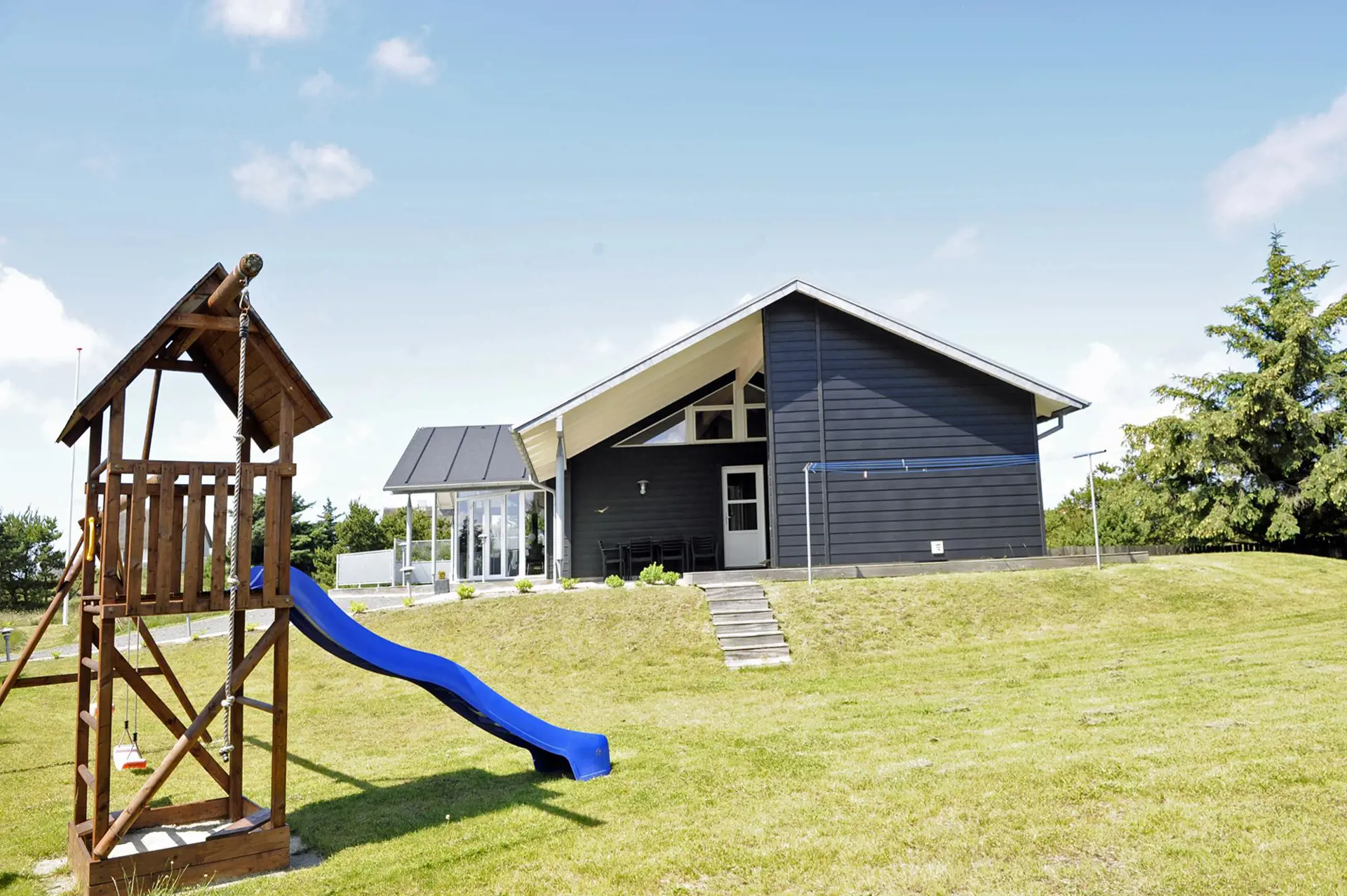 Ein Ferienhaus der Extraklasse für 6 Personen auf dem oberen Teil des Grundstückes gelegen. Dies ist ein Niedrigenergiesparhaus aufgrund der Luft-Wasser-Wärmepumpe. Wenn Sie mit einem Gläschen Wein auf der Terrasse sitzen, können Sie sogar das Rauschen des Meeres hören, denn der Strand ist nur 400 Meter vom Haus entfernt. Alle Räumlichkeiten sind mit Fliesen ausgestattet, bis auf die Schlafzimmer, die sind mit einem schönen hellem Laminatboden ausgelegt. Das Wohnzimmer verfügt über einen Kamin. Mit der Wärmepumpe senken sich die Stromkosten, da die Heizung mit der Wärmepumpe energiesparend ist. Das deutsche Fernsehprogramm empfangen Sie über Stofa, daher können Sie nur 5-8 deutsche Kanäle empfangen. Auf dem Hems befindet sich ein weiteres TV-Gerät, wobei Sie die Möglichkeit haben über das Internet deutsche Fernsehprogramme empfangen können.Die Wohnküche ist offen und der große Tresen lädt zum kochen ein. Weiterhin befindet sich ein Herd mit Cerankochfeld, ein Backofen in Arbeitshöhe eine Geschirrspülmaschine, eine Mikrowelle und eine Kühl- und Gefrierkombination ( 2 Schubladen im Gefrierschrank). Das grosse Badezimmer beim Eingangsbereich ist mit einem WC, einer Dusche, einem Handwaschbecken und einem Whirlpool ausgestattet. Das Gästebad im hinteren Bereich hat ebenfalls ein WC, eine Dusche und ein Handwaschbecken. Drei Schlafzimmer: DB + DB + DB. Auf dem kleinen Hems können sie z.B. mit einem Buch gut relaxen. Auf dem Grundstück befindet sich ein Schaukelstativ und eine Sandkiste ist auch vorhanden. Die Waschmaschine und der Trockner befinden sich im Hauswirtschaftsraum direkt neben dem Eingang. Das Rauchen ist nicht erlaubt. Es sind keine Haustiere erlaubt. Das Ferienhaus verfügt über einen Internetanschluss (W-Lan). Für dieses Haus fallen extra Wasserkosten an. Das Ferienhaus ist 2008 erbaut.