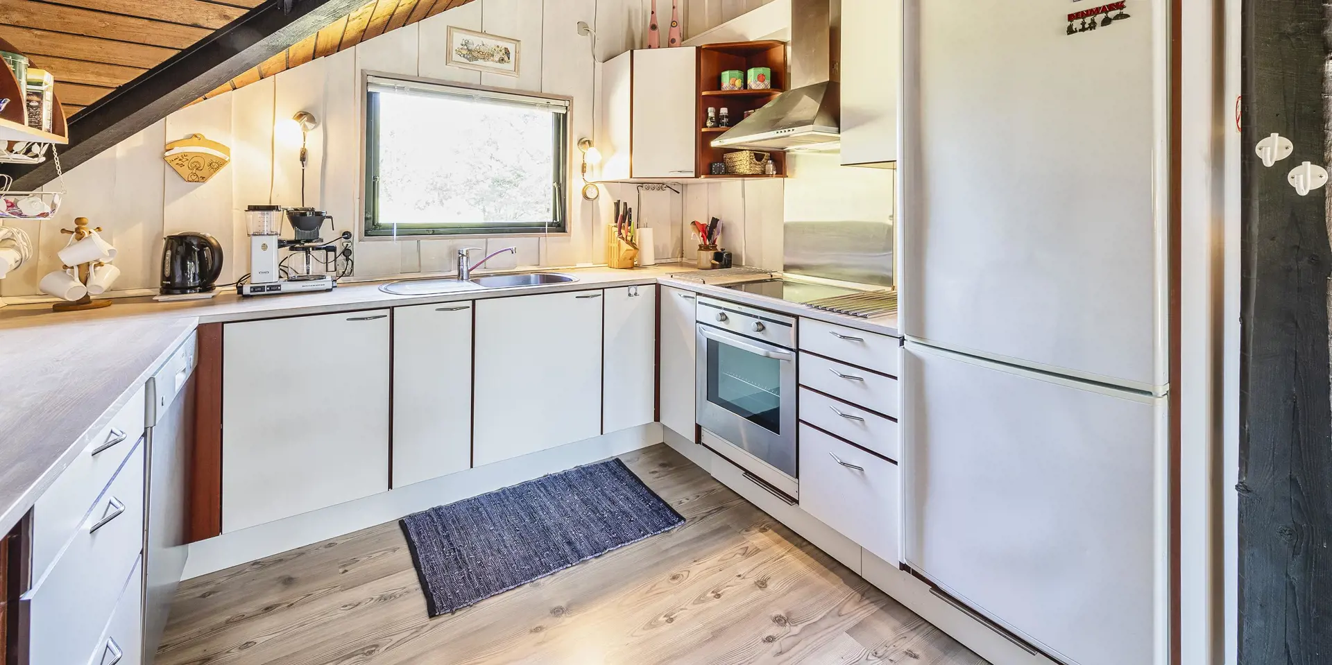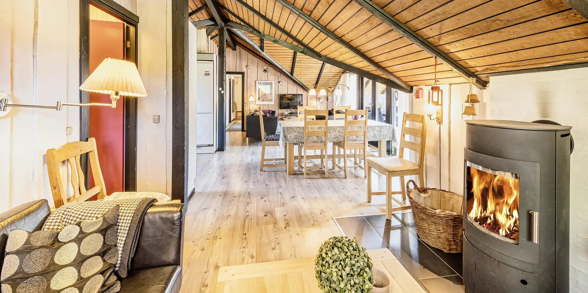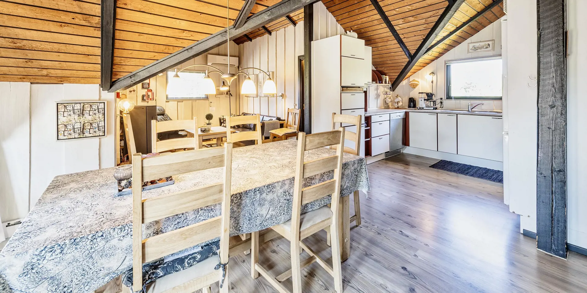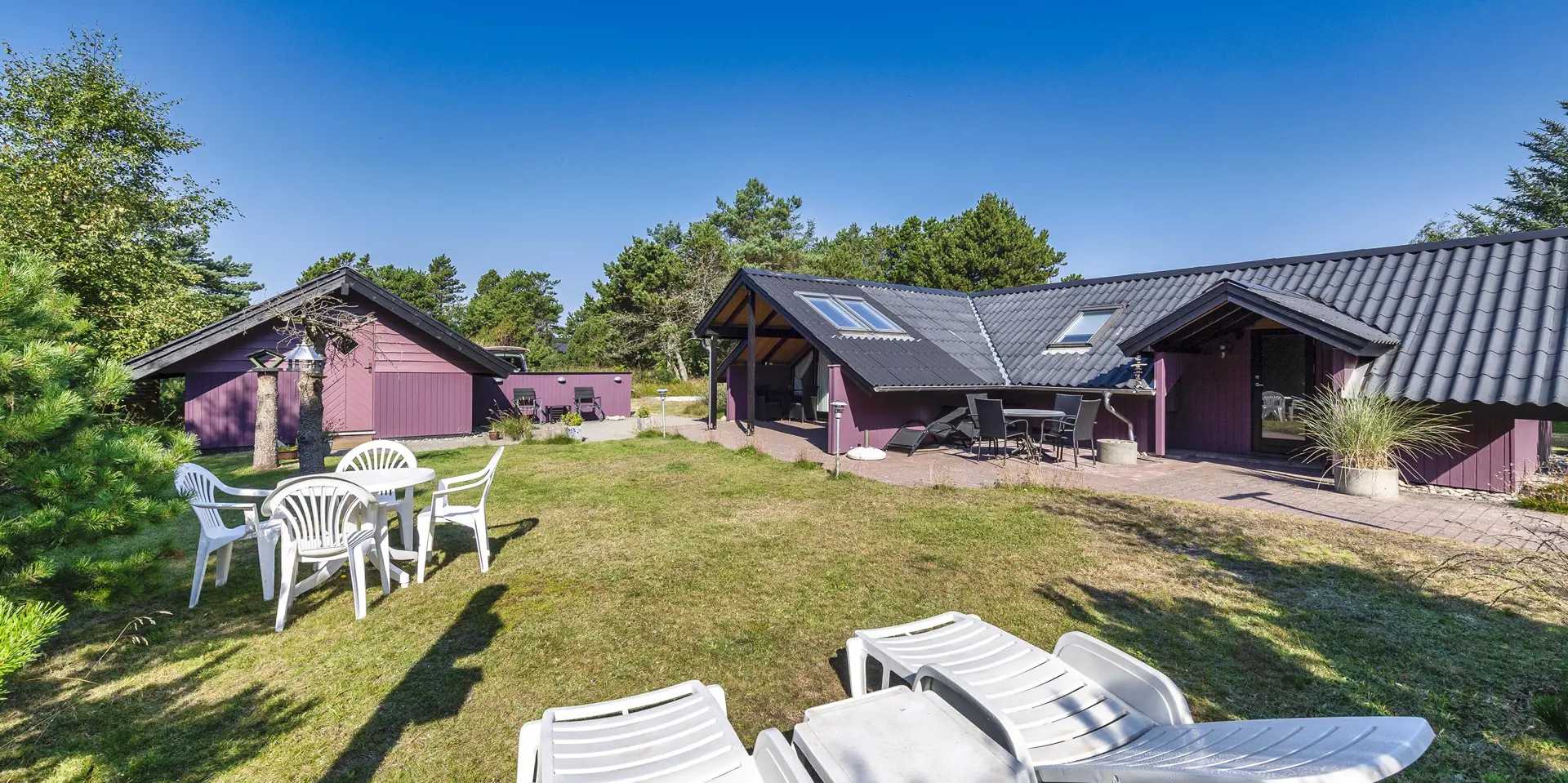 Dieses Ferienhaus liegt auf einem schönes großen Waldgrundstück und ist umgeben von großen Bäumen, aber die Sonne kann totzalledem auf das Grundstück scheinen. Das Ferienhaus liegt am Ende einer Sackgasse und dicht zum Waldgebiet. Von diesem Waldgebiet kommen oftmals die Hirsche und das Rotwild zu den Ferienhäusern. Sie lieben es von den Gästen mit Obst und Gemüse verwöhnt zu werden. Das Haus ist für 5 Personen ausgestattet und der Strand ist ca. 1,2 Km vom Haus entfernt. Zwischen den beiden Wohnbereichen befindet sich der Essplatz gegenüber der Küche. Der eine Wohnbereich ist mit einem Fernsehgerät ausgestattet. Das deutsche Fernsehprogramm empfangen Sie über eine Parabolantenne. In dem anderen Wohnbereich ist der Kamin aufgestellt. Dieser Bereich ist der”hygge” Bereich. Gemütlich den Kamin angezündet, ein Gläschen Wein und der Abend kann genossen werden. Es befindet sich eine Warmepumpe im Ferienhaus. Mit dieser Warmepumpe haben sie die Möglichkeit die Stromkosten zu senken, denn die Warmepumpe ist energiesparend. Die Küche ist einfach und verfügt über einen Herd mit Cerankochfeld, einem Backofen, einer Geschirrspülmaschine, einer Mikrowelle und einer Kühl- und Gefrierkombination. Das Badezimmer hat ein WC, ein Handwaschbecken, eine Dusche und eine Sauna. Die Waschmaschine ist auch hier im Badezimmer untergebracht. Insgesamt gibt es drei Schlafzimmer im Ferienhaus: 2B + 2B + 2B. Das Ferienhaus verfügt übe einen Internetanschluss (W-Lan). Vom Eingangsbereich, der bietet genügend Platz für Jacken und Schuhe, geht eine kleine Abstellkammer ab. Hintern Haus ist eine große Rasenfläche. Hier haben die Kinder viel Platz zum Toben und zum Fußball spielen. Desweiteren steht den Kid´s eine Sandkiste zur Verfügung. Ein Terrassenbereich steht den Gästen ebenfalls am Ferienhaus zur Verfügung. Ein Teil der Terrasse ist sogar überdacht. Das Rauchen im Ferienhaus ist nicht erlaubt. Es sind max. zwei Haustiere erlaubt. Das Kaminholz, was sich am Ferienhaus befindet, kann käuflich erworben werden. Das Ferienhaus ist 1978 erbaut worden und in 1988 wurde es renoviert.