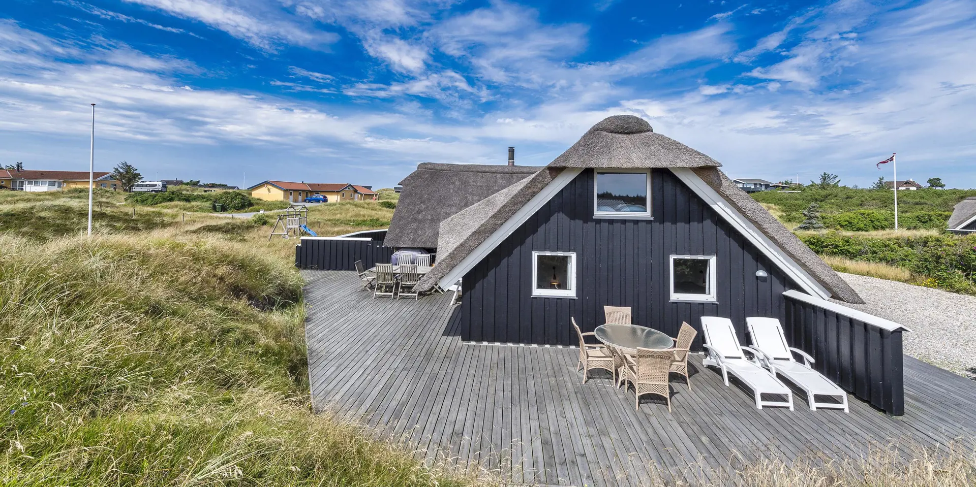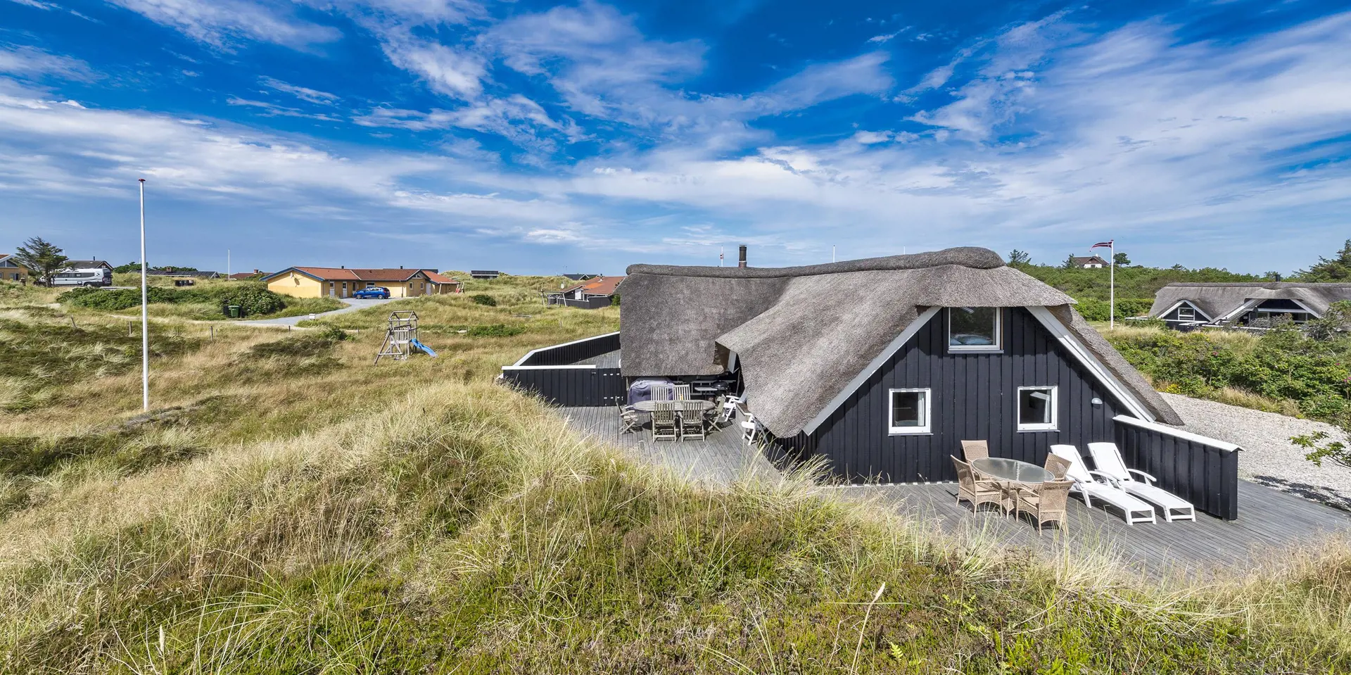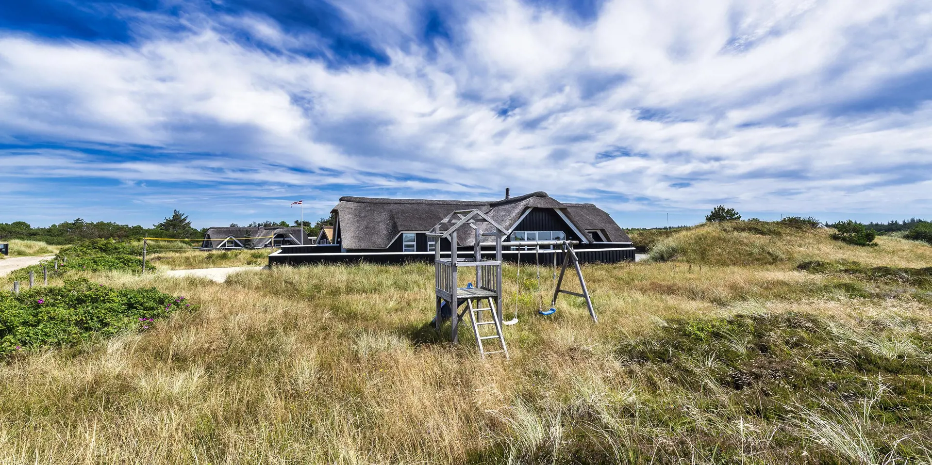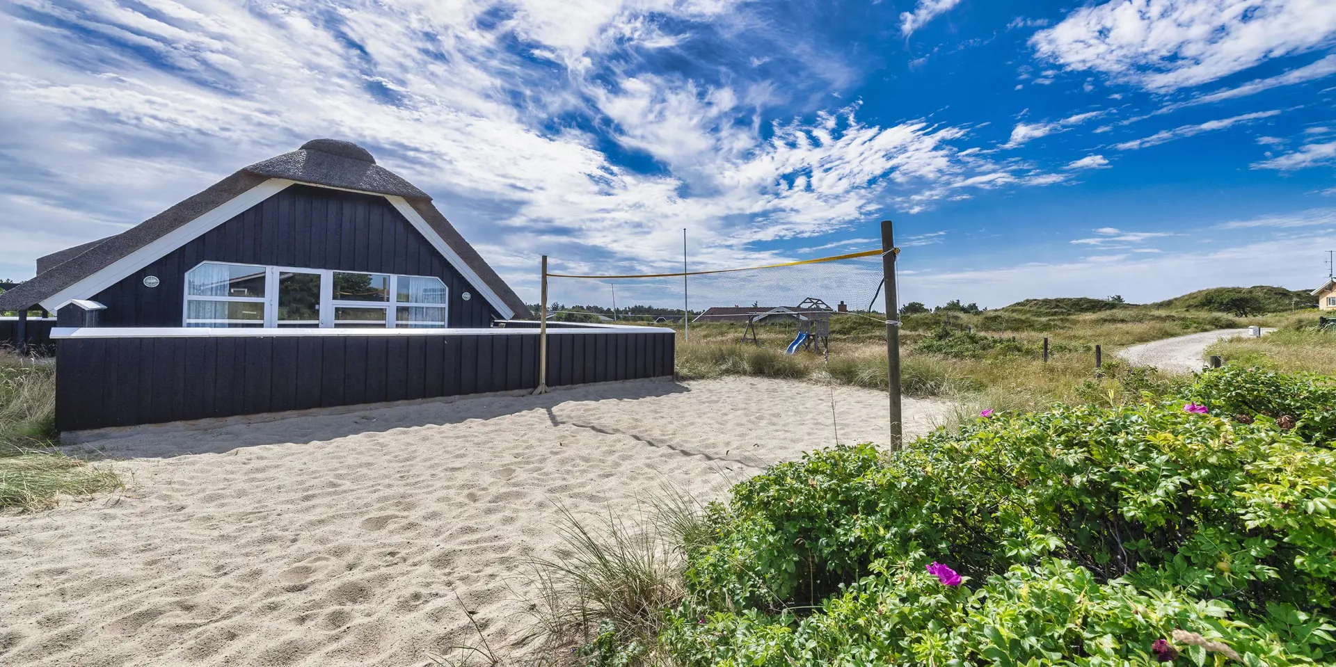 Reetgedecktes Poolhaus für 8 Personen und 2 Kinder auf einem großen windgeschütztem Dünengrundstück gelegen. Der Strand ist nur ca. 500 Meter vom Ferienhaus entfernt. Der Wohnbereich ist mit einer großen Rundsitzecke ausgestattet mit direktem Blick auf die Terrasse. Der Essbereich ist mit einer fest eingebauten Sitzbank ausgestattet und hat einen hübschen antiken Esstisch. Ein Kamin ist hier im Wohn- und Essbereich aufgestellt. Es befindet sich eine Warmepumpe im Ferienhaus. Mit dieser Warmepumpe haben sie die Möglichkeit die Stromkosten zu senken, denn die Warmepumpe ist energiesparend. Das deutsche Fernsehprogramm ist über eine Parabolantenne zu empfangen. Die offene Küche bietet genügend Raum und Platz zum Arbeiten. Sie verfügt über einen Herd mit Cerankochfeld, einem Backofen in Arbeitshöhe, einer Geschirrspülmaschine, einer Mikrowelle und einer Kühl- und Gefrierkombination. Es gibt zwei Bäder im Ferienhaus. Beide sind mit je einem WC, einem Handwaschbecken und einer Dusche ausgestattet. Das größere Badezimmer verfügt noch über eine Sauna. Eine Waschmaschine und ein Trockner sind in einem der Bäder aufgestellt. Der große Poolbereich hat ein Schwimmbecken mit der Grösse von ca. 4,85 x 3 x 1,1 Meter (Länge x Breite x Tiefe). Hier im Poolbereich ist der Whirlpool aufgestellt und eine Klimaanlage mit Luft-Wasser-Pumpe, die ist energiesparend. Desweiteren finden Sie hier auch eine gemütliche Rattan-Sitzgruppe. Insgesamt stehen Ihnen vier Schlafzimmer: DB + DB + DB +DB. Der Zugang zum Hems befindet sich auf dem Flurbereich. Das Ferienhaus verfügt über einen Internetanschluss (W-Lan). Es sind max. drei Haustiere erlaubt. Am Ferienhaus ist eine neue schöne große Süd-Terrasse gebaut worden. Der größte Teil davon ist geschlossen. Hier können sie gut Ihren Vierbeiner mal Luft schnappen lassen, ohne das er gleich stiften geht. Auf dem Grundstück steht ein Beachvolley und eine Schaukel zur Verfügung. Nicht-raucher Haus. Das Ferienhaus ist 1987 erbaut worden.