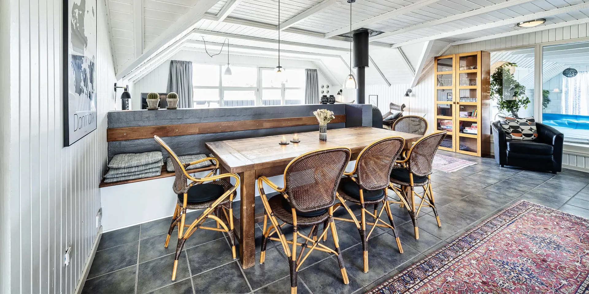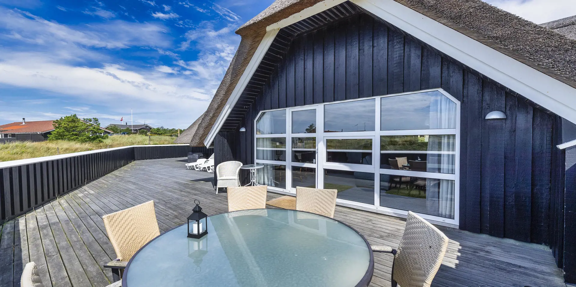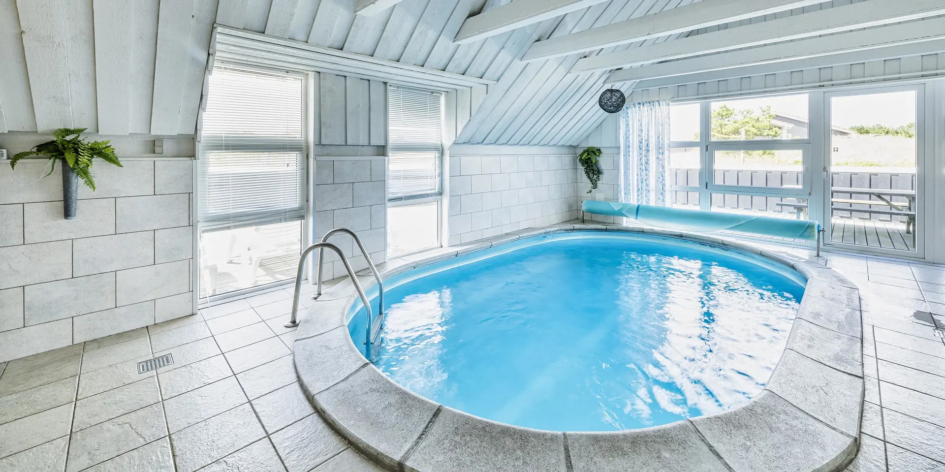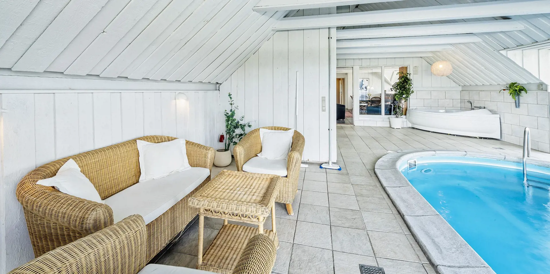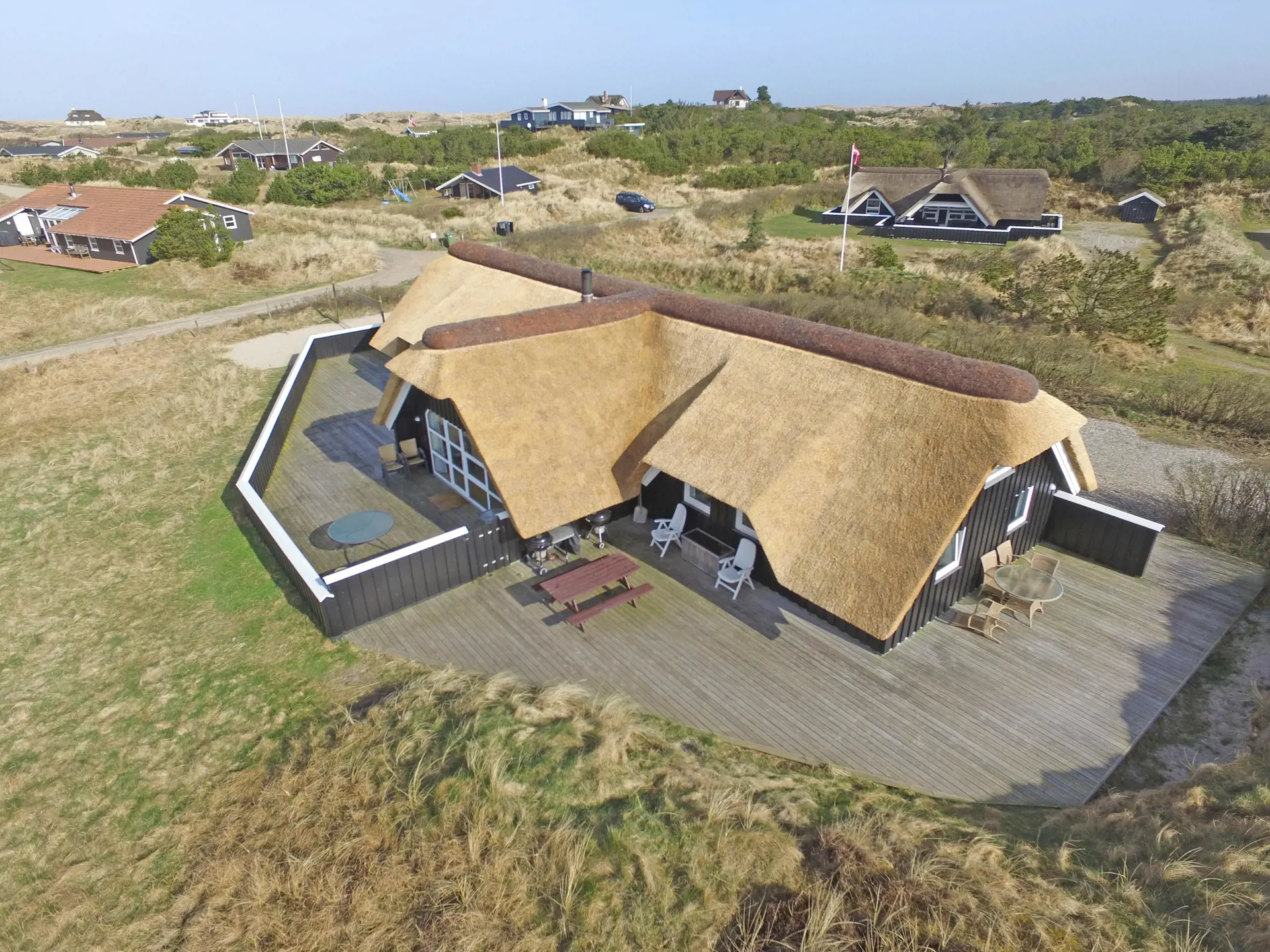 Reetgedecktes Poolhaus für 8 Personen und 2 Kinder auf einem großen windgeschütztem Dünengrundstück gelegen. Der Strand ist nur ca. 500 Meter vom Ferienhaus entfernt. Der Wohnbereich ist mit einer großen Rundsitzecke ausgestattet mit direktem Blick auf die Terrasse. Der Essbereich ist mit einer fest eingebauten Sitzbank ausgestattet und hat einen hübschen antiken Esstisch. Ein Kamin ist hier im Wohn- und Essbereich aufgestellt. Es befindet sich eine Warmepumpe im Ferienhaus. Mit dieser Warmepumpe haben sie die Möglichkeit die Stromkosten zu senken, denn die Warmepumpe ist energiesparend. Das deutsche Fernsehprogramm ist über eine Parabolantenne zu empfangen. Die offene Küche bietet genügend Raum und Platz zum Arbeiten. Sie verfügt über einen Herd mit Cerankochfeld, einem Backofen in Arbeitshöhe, einer Geschirrspülmaschine, einer Mikrowelle und einer Kühl- und Gefrierkombination. Es gibt zwei Bäder im Ferienhaus. Beide sind mit je einem WC, einem Handwaschbecken und einer Dusche ausgestattet. Das größere Badezimmer verfügt noch über eine Sauna. Eine Waschmaschine und ein Trockner sind in einem der Bäder aufgestellt. Der große Poolbereich hat ein Schwimmbecken mit der Grösse von ca. 4,85 x 3 x 1,1 Meter (Länge x Breite x Tiefe). Hier im Poolbereich ist der Whirlpool aufgestellt und eine Klimaanlage mit Luft-Wasser-Pumpe, die ist energiesparend. Desweiteren finden Sie hier auch eine gemütliche Rattan-Sitzgruppe. Insgesamt stehen Ihnen vier Schlafzimmer: DB + DB + DB +DB. Der Zugang zum Hems befindet sich auf dem Flurbereich. Das Ferienhaus verfügt über einen Internetanschluss (W-Lan). Es sind max. drei Haustiere erlaubt. Am Ferienhaus ist eine neue schöne große Süd-Terrasse gebaut worden. Der größte Teil davon ist geschlossen. Hier können sie gut Ihren Vierbeiner mal Luft schnappen lassen, ohne das er gleich stiften geht. Auf dem Grundstück steht ein Beachvolley und eine Schaukel zur Verfügung. Nicht-raucher Haus. Das Ferienhaus ist 1987 erbaut worden.