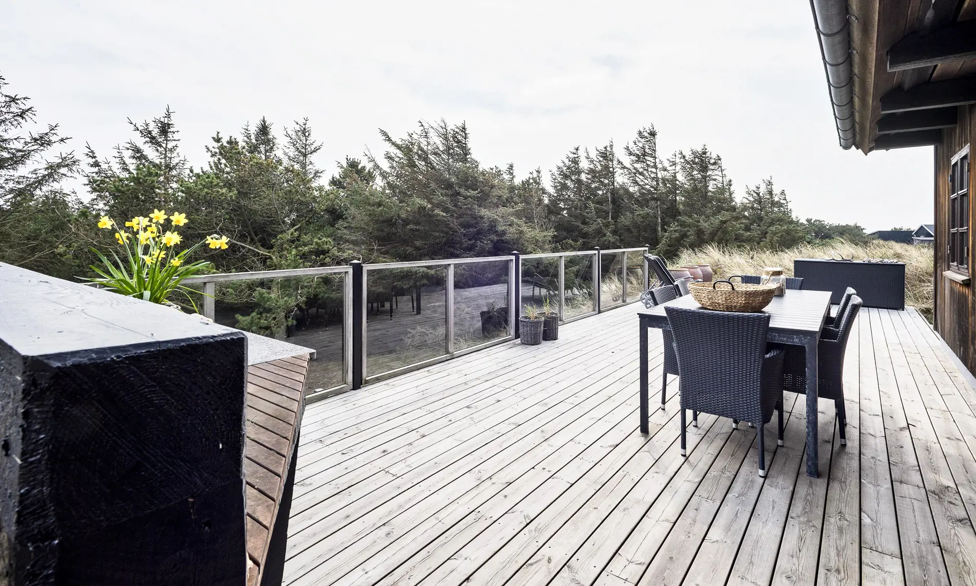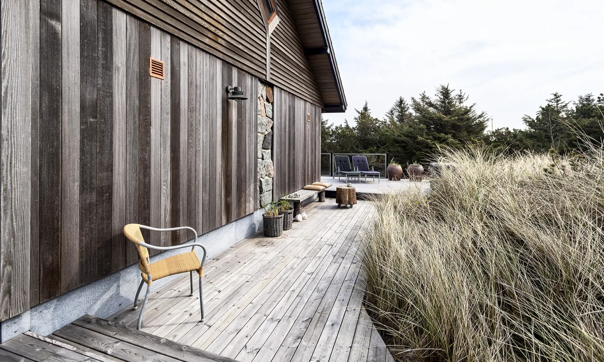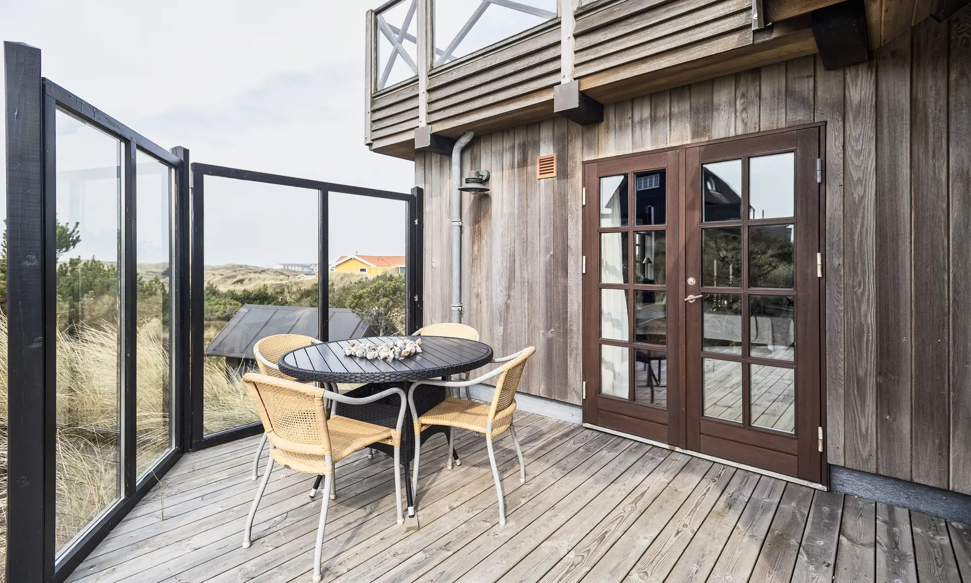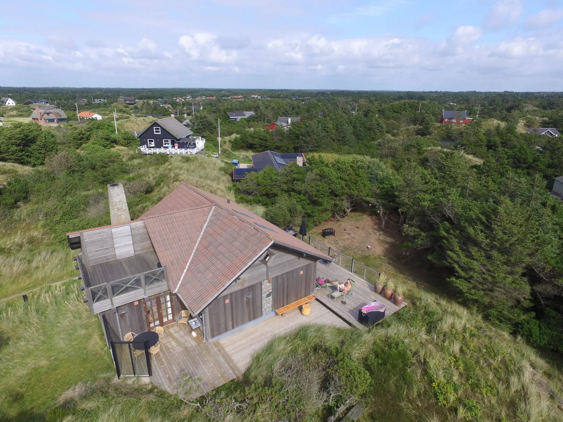 Dieses vom Eigentümer selbst instand gesetzte Holzhaus liegt oben auf einer großen Düne und hat einen wunderbaren Blick über das Feriengebiet. Das Auto kann nicht bis an das Haus gefahren werden, denn zum Ferienhaus gelangen Sie nur über den längeren Aufstieg. Das Ferienhaus ist für 4 Personen ausgestattet. Dieses Ferienhaus verzaubert jeden Bewohner, und gibt ihm ein wohliges Gefühl. Zum Strand ist es nur rund 200 Meter. Der Eingangsbereich mit Bad und Küche sind mit einer mediterranen Bodenfliese verlegt worden und strahlen eine angenehme Wärme aus. Dazu kommt, das einige Wände mit der gleichen Farbe an Klinker gemauert sind. Der Wohn- und Essbereich ist mit Laminat verlegt. Die großzügige Rundecke lädt zum Kuscheln und relaxen ein; dazu der eingebaute Kamin an und der Abend kann mit einem Gläschen Wein genossen werden. In einer Ecke neben dem Kamin befindet sich eine kleine Nische, ein Alkoven. Hier ist es urgemütlich um ein kleines Nickerchen zu halten. Das Fernsehprogramm empfangen Sie über Yousee, daher sind nur 3-4 deutsche Kanäle zu empfangen. Es ist auch möglich Netflix zu sehen. Die im Wohnbereich offenen Balken bringen den besonderen Charme ins Ferienhaus. Eine offene Treppe führt in ein oberes Geschoss, das den Bewohnern allerdings nicht zur Verfügung steht. Dies ist Privat, ebenso der Balkon, den Sie auch nur vom oberen Geschoss begehen können. Die Essecke ist mit hübschen, teilweise antiken Möbeln ausgestattet. Die Küche im Landhaus-Stil hat einen Zugang zur Terrasse und lädt unwillkürlich zum Kochen ein. Die Ausstattung ist mit einem Gasherd (4 Kochstellen), einem Backofen in Arbeitshöhe, einer Geschirrspülmaschine und einer Kühl- und Gefrierkombination ausgestattet. Vom Eingangsbereich geht das Badezimmer ab, das beinhaltet ein WC, eine Dusche und ein Handwaschbecken, das in einer hübschen Arbeitsplatte eingefasst ist. Auch hier finden Sie die Waschmaschine. Sie haben 2 Schlafzimmer: DB + 2B. Ein weiterer Ausgang zur Terrasse ist vom Wohnzimmer. Auf der gesamten Terrassenfläche ist genügend Platz um ein Sonnenbad zu nehmen, in einem schattigen Plätzchen ein Buch zu lesen oder auf um eine kleine Grillparty zu halten. Zusätzlich haben Sie eine Außendusche und ein Internetanschluss (W-Lan) befindet sich auch im Ferienhaus. Das Haus ist für Kleinkinder nicht geeignet. Es sind keine Haustiere erlaubt, mit Ausnahme ein kleiner Hund mit max. Rückenhöhe von 30 cm. Das Rauchen ist nicht gestattet. Das Ferienhaus ist 1999 erbaut. Das Ferienhaus verfügt über ein Gas Weber Grill. Bitte beachten Sie: Sie müssen selber für Gas für den Grill sorgen, und der Grill muss nach Gebrauch wieder gereinigt zurück gestellt werden.