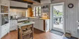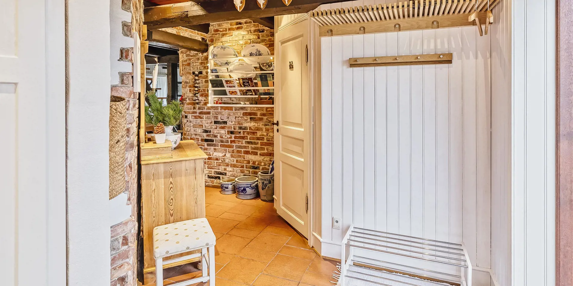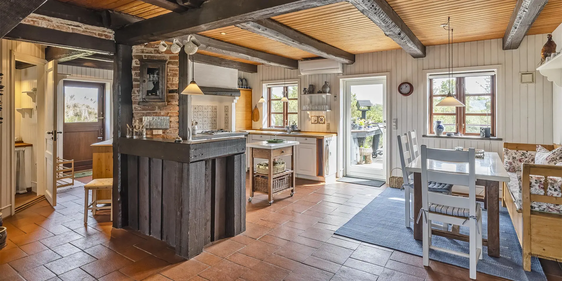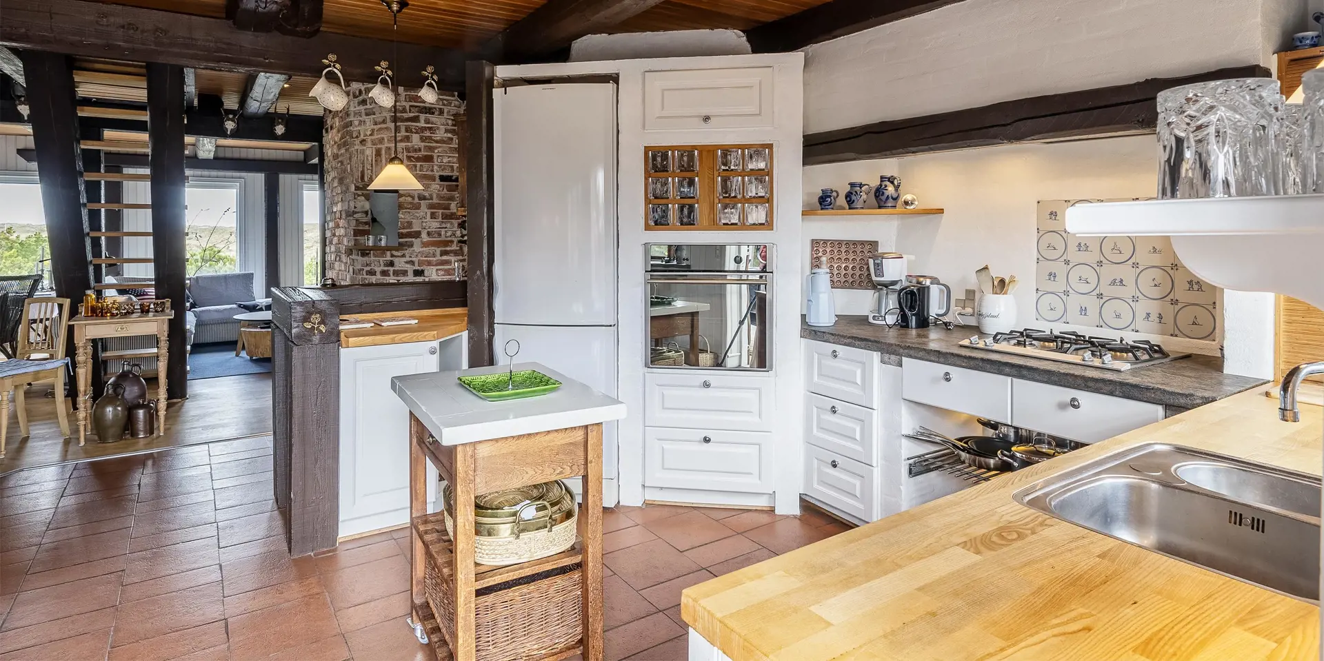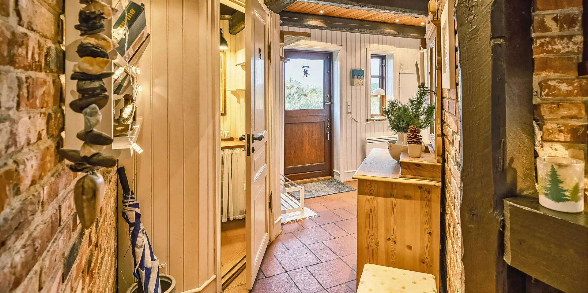 Dieses vom Eigentümer selbst instand gesetzte Holzhaus liegt oben auf einer großen Düne und hat einen wunderbaren Blick über das Feriengebiet. Das Auto kann nicht bis an das Haus gefahren werden, denn zum Ferienhaus gelangen Sie nur über den längeren Aufstieg. Das Ferienhaus ist für 4 Personen ausgestattet. Dieses Ferienhaus verzaubert jeden Bewohner, und gibt ihm ein wohliges Gefühl. Zum Strand ist es nur rund 200 Meter. Der Eingangsbereich mit Bad und Küche sind mit einer mediterranen Bodenfliese verlegt worden und strahlen eine angenehme Wärme aus. Dazu kommt, das einige Wände mit der gleichen Farbe an Klinker gemauert sind. Der Wohn- und Essbereich ist mit Laminat verlegt. Die großzügige Rundecke lädt zum Kuscheln und relaxen ein; dazu der eingebaute Kamin an und der Abend kann mit einem Gläschen Wein genossen werden. In einer Ecke neben dem Kamin befindet sich eine kleine Nische, ein Alkoven. Hier ist es urgemütlich um ein kleines Nickerchen zu halten. Das Fernsehprogramm empfangen Sie über Yousee, daher sind nur 3-4 deutsche Kanäle zu empfangen. Es ist auch möglich Netflix zu sehen. Die im Wohnbereich offenen Balken bringen den besonderen Charme ins Ferienhaus. Eine offene Treppe führt in ein oberes Geschoss, das den Bewohnern allerdings nicht zur Verfügung steht. Dies ist Privat, ebenso der Balkon, den Sie auch nur vom oberen Geschoss begehen können. Die Essecke ist mit hübschen, teilweise antiken Möbeln ausgestattet. Die Küche im Landhaus-Stil hat einen Zugang zur Terrasse und lädt unwillkürlich zum Kochen ein. Die Ausstattung ist mit einem Gasherd (4 Kochstellen), einem Backofen in Arbeitshöhe, einer Geschirrspülmaschine und einer Kühl- und Gefrierkombination ausgestattet. Vom Eingangsbereich geht das Badezimmer ab, das beinhaltet ein WC, eine Dusche und ein Handwaschbecken, das in einer hübschen Arbeitsplatte eingefasst ist. Auch hier finden Sie die Waschmaschine. Sie haben 2 Schlafzimmer: DB + 2B. Ein weiterer Ausgang zur Terrasse ist vom Wohnzimmer. Auf der gesamten Terrassenfläche ist genügend Platz um ein Sonnenbad zu nehmen, in einem schattigen Plätzchen ein Buch zu lesen oder auf um eine kleine Grillparty zu halten. Zusätzlich haben Sie eine Außendusche und ein Internetanschluss (W-Lan) befindet sich auch im Ferienhaus. Das Haus ist für Kleinkinder nicht geeignet. Es sind keine Haustiere erlaubt, mit Ausnahme ein kleiner Hund mit max. Rückenhöhe von 30 cm. Das Rauchen ist nicht gestattet. Das Ferienhaus ist 1999 erbaut. Das Ferienhaus verfügt über ein Gas Weber Grill. Bitte beachten Sie: Sie müssen selber für Gas für den Grill sorgen, und der Grill muss nach Gebrauch wieder gereinigt zurück gestellt werden.