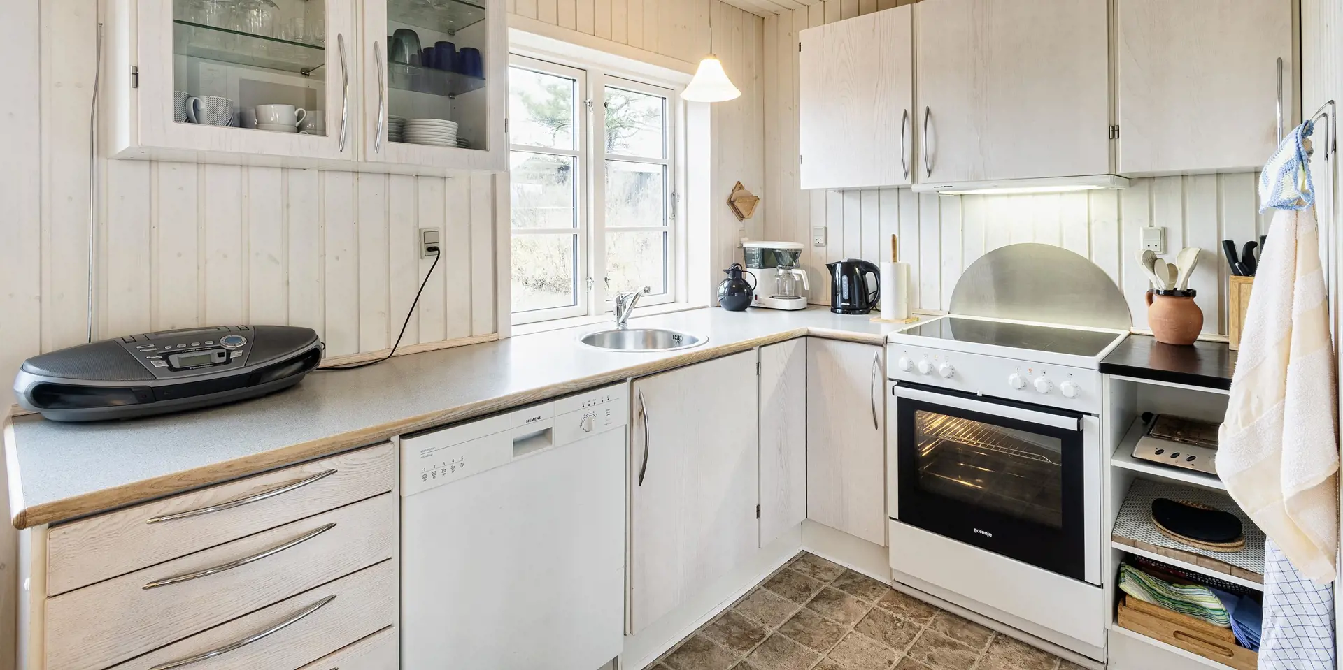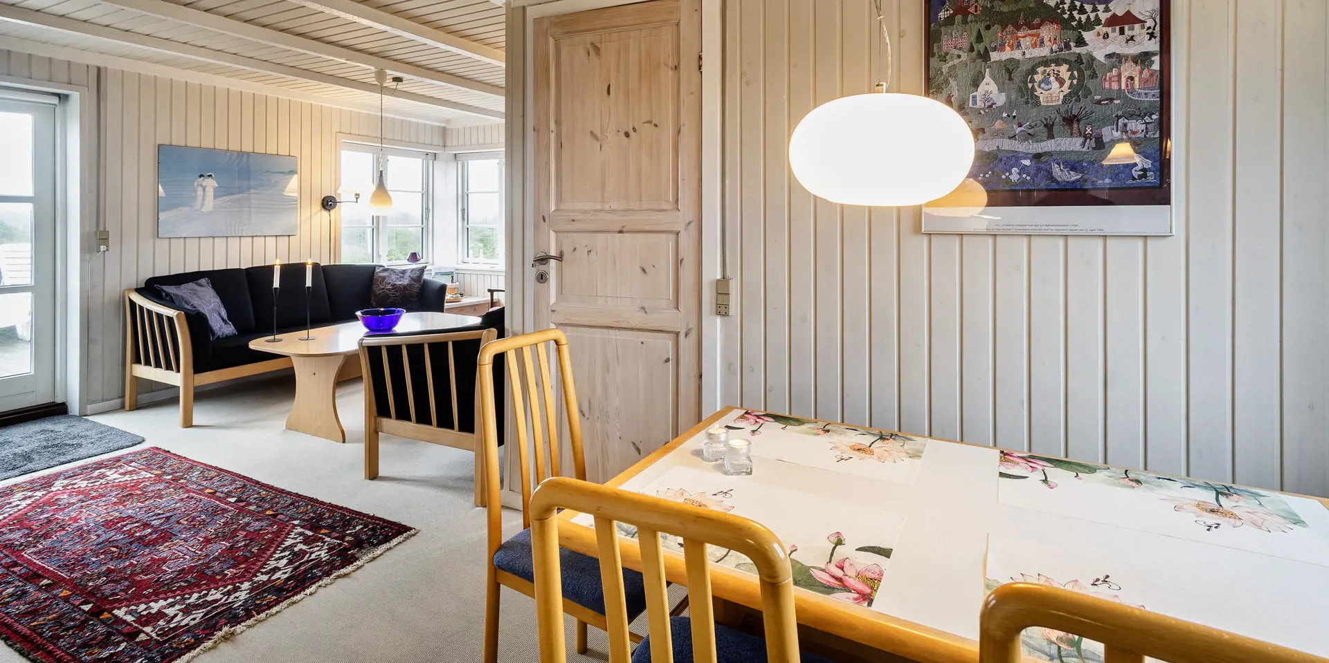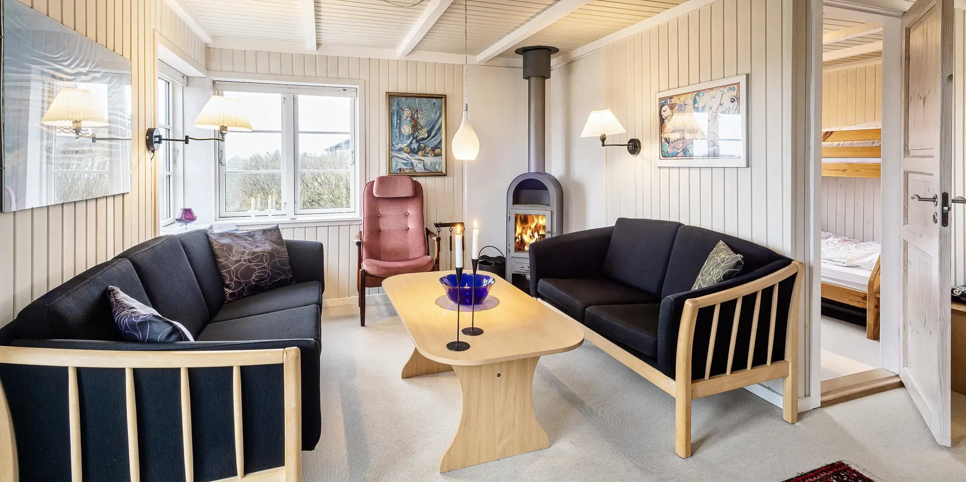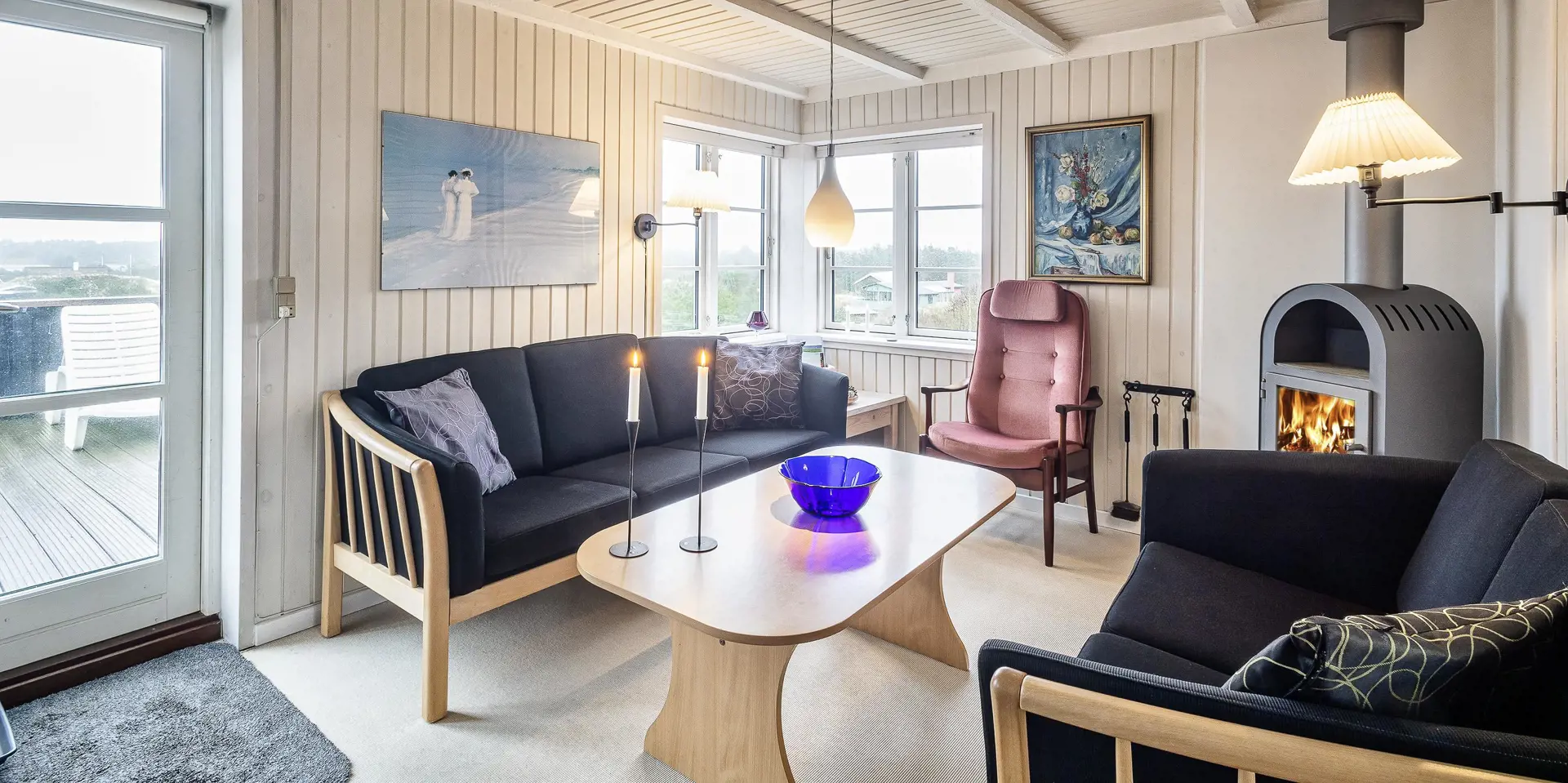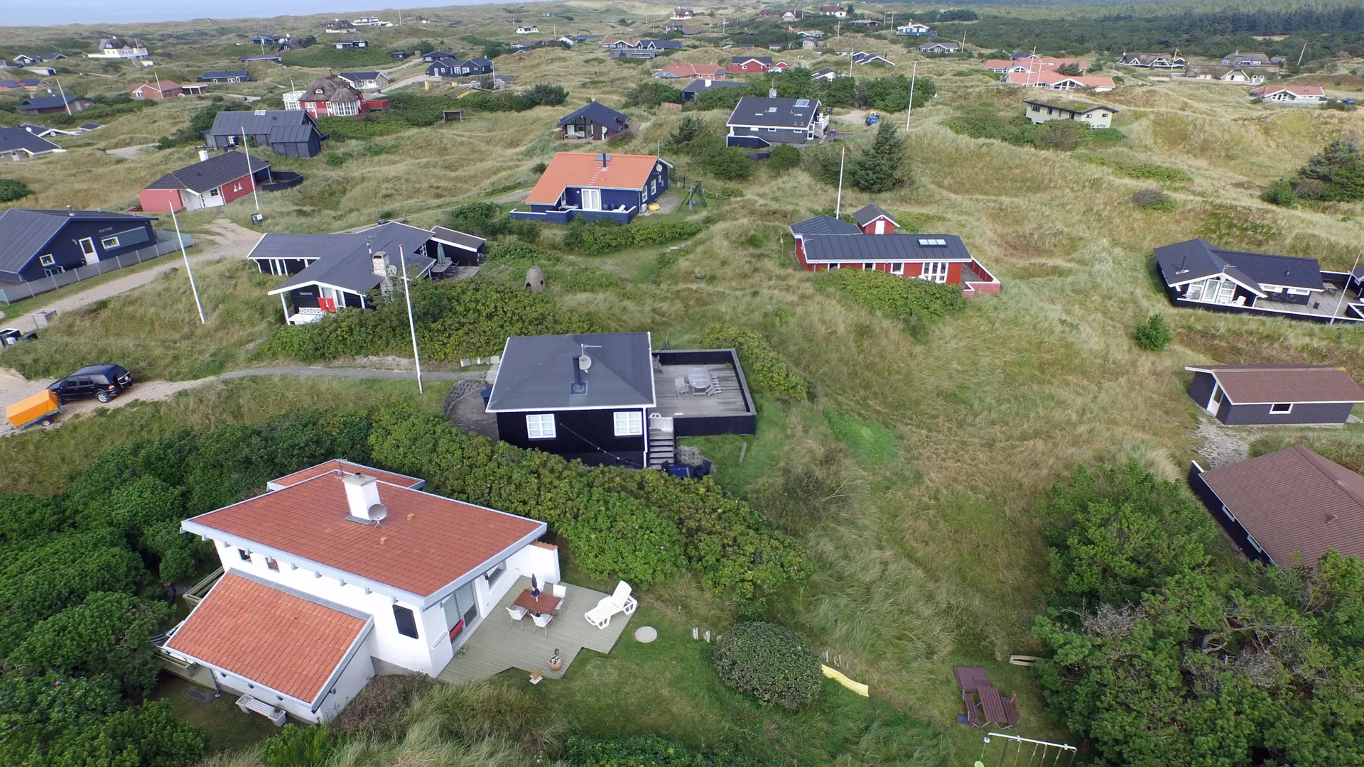 Kleines geschmackvoll eingerichtetes Ferienhaus auf einer Düne gelegen und mit einem tollem Rund-um-Panoramablick von der Terrasse aus. Das Ferienhaus ist für 4 Personen und der Strand ist ca. 400 Meter vom Ferienhaus entfernt. Der Wohnbereich ist mit typischen dänischen Möbeln ausgestattet. Ein Kamin ist auch in diesem Bereich untergebracht. Das deutsche Fernsehprogramm empfangen Sie über eine Parabolantenne. Chromecast ist vorhanden. Die offene Küche ist als Wohnküche ausgestattet und somit mit dem Essbereich verbunden. Eine kleine Sitzbank steht am Esstisch bereit. Die Küche verfügt über ein Herd mit Cerankochfeld, einem Backofen, einer Geschirrspülmaschine, einer Mikrowelle und einer Kühl- und Gefrierkombination. Das Badezimmer hat ein WC, ein Handwaschbecken und eine Dusche. Insgesamt stehen Ihnen zwei Schlafzimmer zur Verfügung: DB + DB. Sie haben insgesamt drei verschiedene Terrassenbereiche, eine mit Holzdielen, direkt am Ferienhaus und zwei Bereiche sind mit Steinfliesen verlegt. Die Hagebuttenbüsche schützen einen Bereich neben dem Treppenaufgang an der Seite und daher ist dieser Sitzplatz recht gut geschützt. Das Ferienhaus verfügt über einen Internetanschluss (W-Lan). Es sind keine Haustiere erlaubt, mit Ausnahme ein kleiner Hund mit max. Rückenhöhe von 30 cm. Der Grill und die Fahrräder am Ferienhaus sind zur freien Benutzung. Wir geben allerdings keine Garantie auf die Benutzbarkeit. Gratis Eintritt für das Badeland in Oksbøl in 2025. Das Rauchen ist nicht gestattet. Das Ferienhaus ist 1952 erbaut worden.
