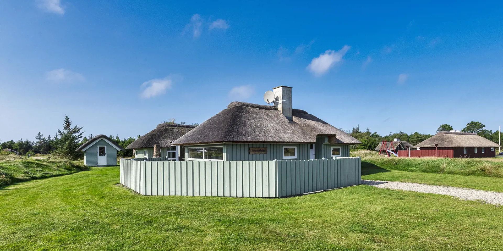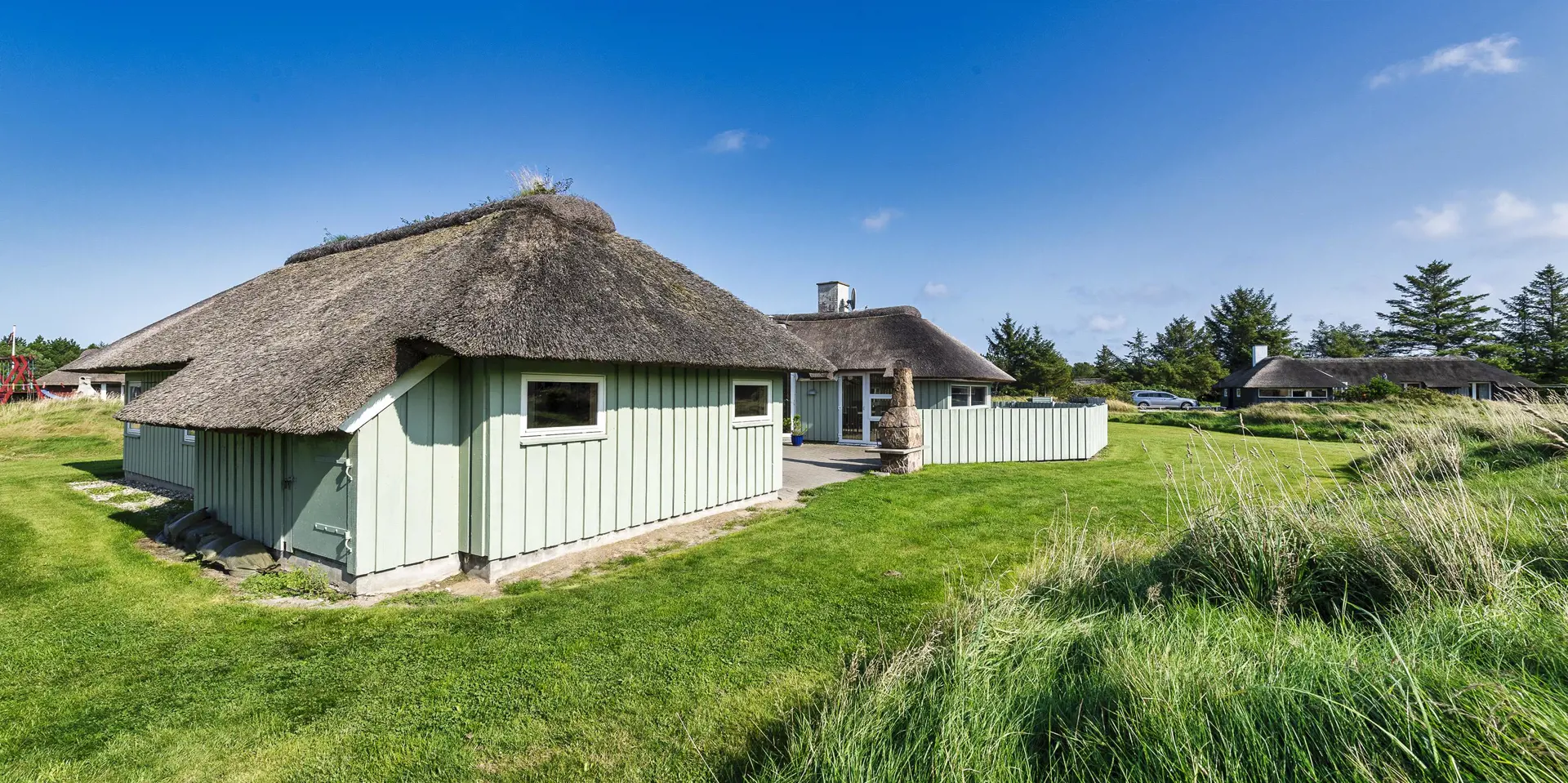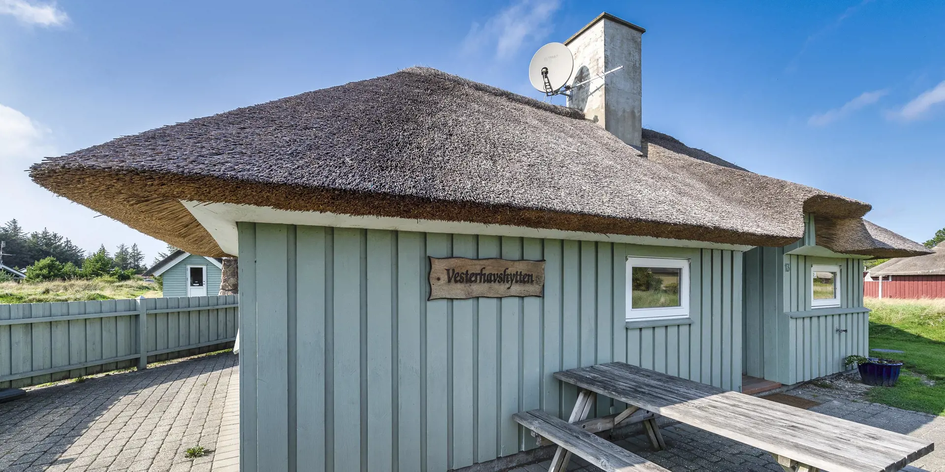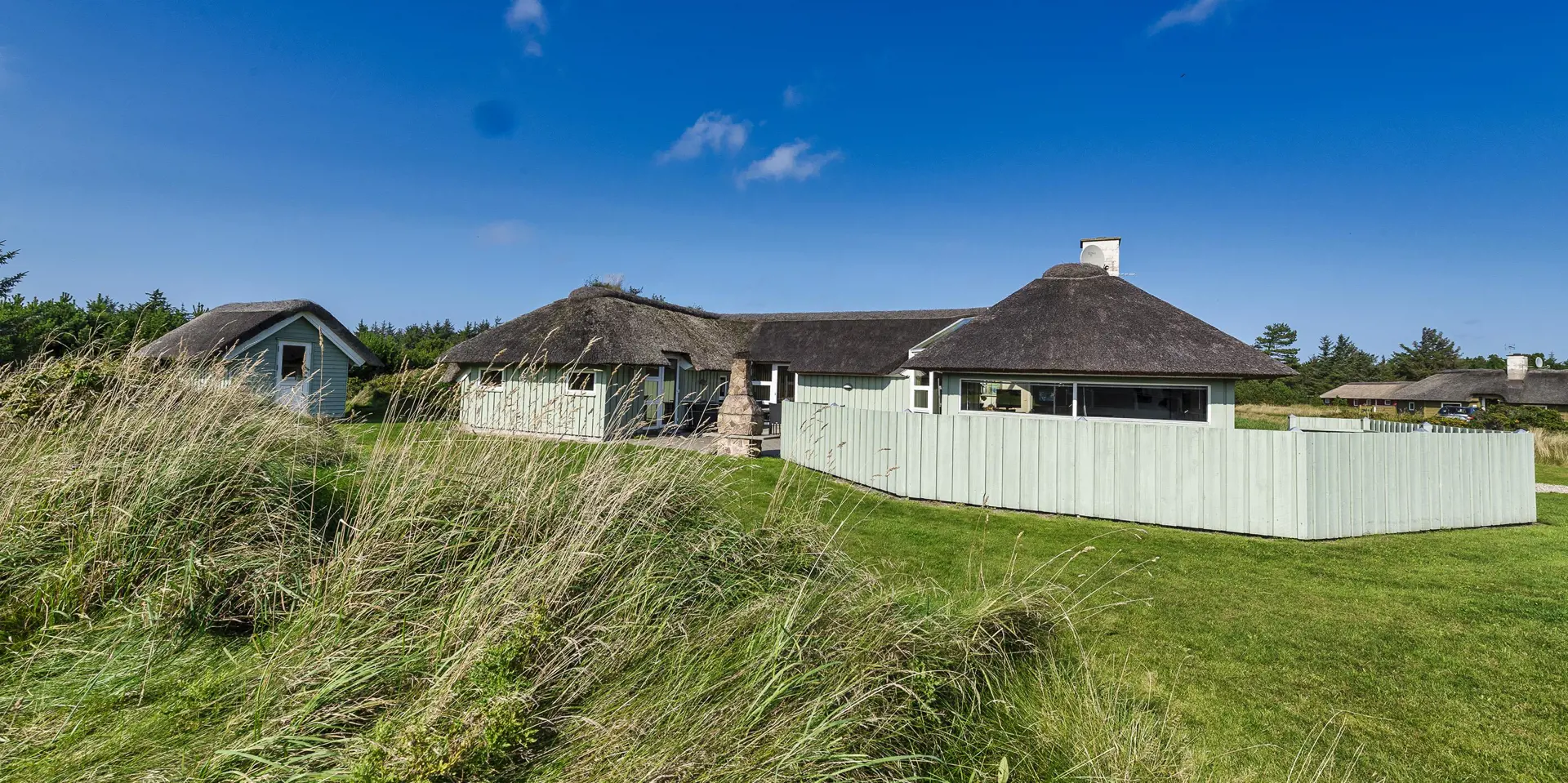Reetgedecktes Ferienhaus auf einem grossen naturbelassenem Rasengrundstück gelegen mit Namen ”Vesterhavshytten”. Das Ferienhaus bietet Platz für 10 Personen und ist ca. 2 Km vom Strand entfernt. Auf der grossen Rundsitzecke in dem Wohnbereich ist genügend Platz für alle. Dort befindet sich auch der eingebaute Kamin. Kamin zum abend angezündet und ein Glässchen Wein, dann kann man es richtig geniessen. Das Ferienhaus ist mit einer Warmepumpe ausgestattet. Mit dieser Warmepumpe haben Sie die Möglichkeit die Stromkosten zu senken, denn die Warmepumpe ist energiesparend. Das deutsche Fernsehprogramm empfangen Sie über eine Parabolantenne oder Chrome Cast. DVD-Player. Die Küche ist separat und verfügt über einen Herd mit Cerankochfeld, einem Backofen, einer Geschirrspülmaschine, einer Mikrowelle und einer Kühl- und Gefrierkombination. Der Essbereich ist vor der Küche plaziert. Durch die grosse Fensterfront und den Oberlichtern strahlt viel Helligkeit in diesen Bereich. Für alle Bewohner des Hauses stehen insgesamt zwei Bäder zur Verfügung. Beide haben ein WC, ein Handwaschbecken und eine Dusche. Und in dem anderen grösserem Badezimmer befindet sich ein Whirlpool und die Waschmaschine und der Trockner sind hier ebenfalls untergebracht. Über dem Whirlpool gibt es Oberlichter, die mit Rollo´s zugezogen werden können. Ein schönes Bad am Abend zur Entspannung, und dann noch den Sternenhimmel beobachten, was will man mehr. Insgesamt stehen den Gästen fünf Schlafzimmer zur Verfügung: DB + DB + 2B + 2B + 2B. Das Ferienhaus verfügt über einen Internetanschluss (W-Lan)(30/30). Rauchen ist nicht erlaubt. Der Terrassenbereich ist gut angelegt, ähnlich wie ein Innenhof und mit einem festen Stein-Grill ausgestattet, dadurch ist dieser Bereich auch gut geschützt. Hier können Sie am Abend auch einfach mal ein paar Holzscheite reinlegen und haben die dänische “hygge” am Aussen-Kamin. Nur ein Hund erlaubt. Das Ferienhaus ist 1988 erbaut worden und in 2006 renoviert. Gratis Eintritt für das Badeland Oksbøl in 2025.