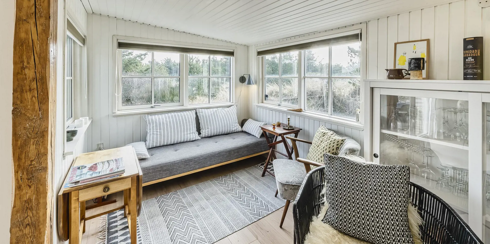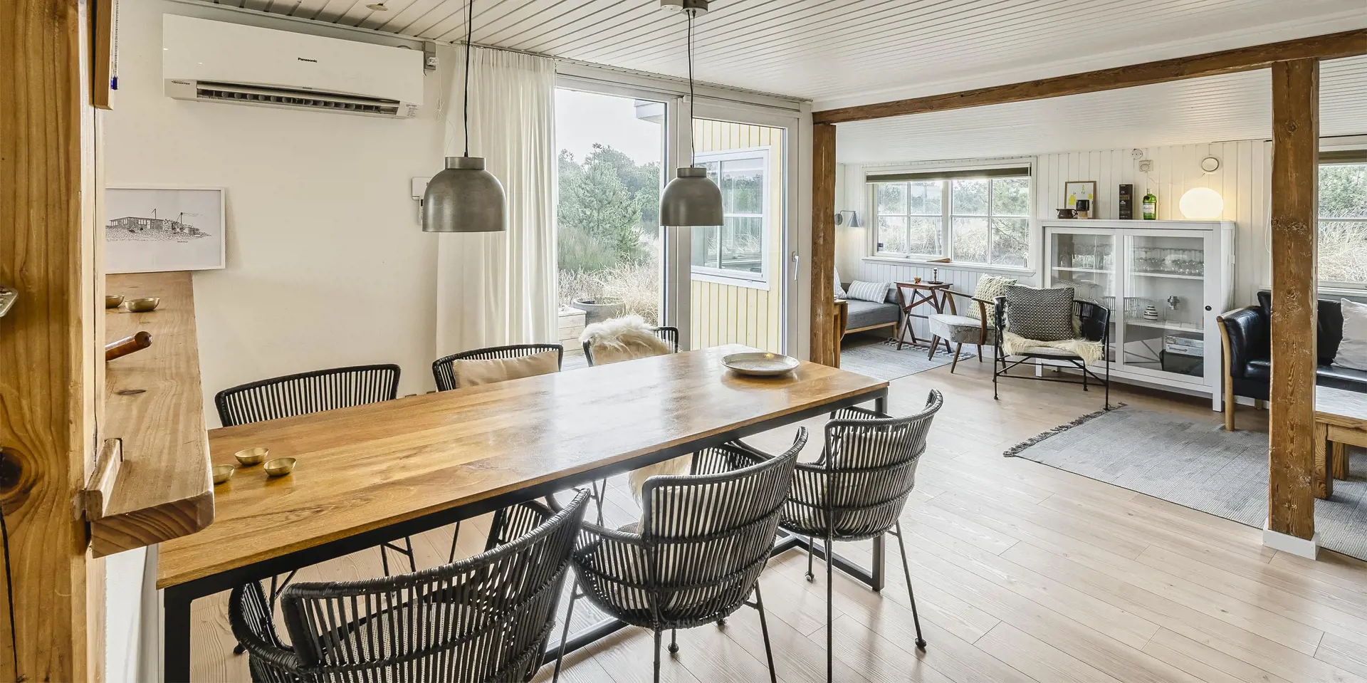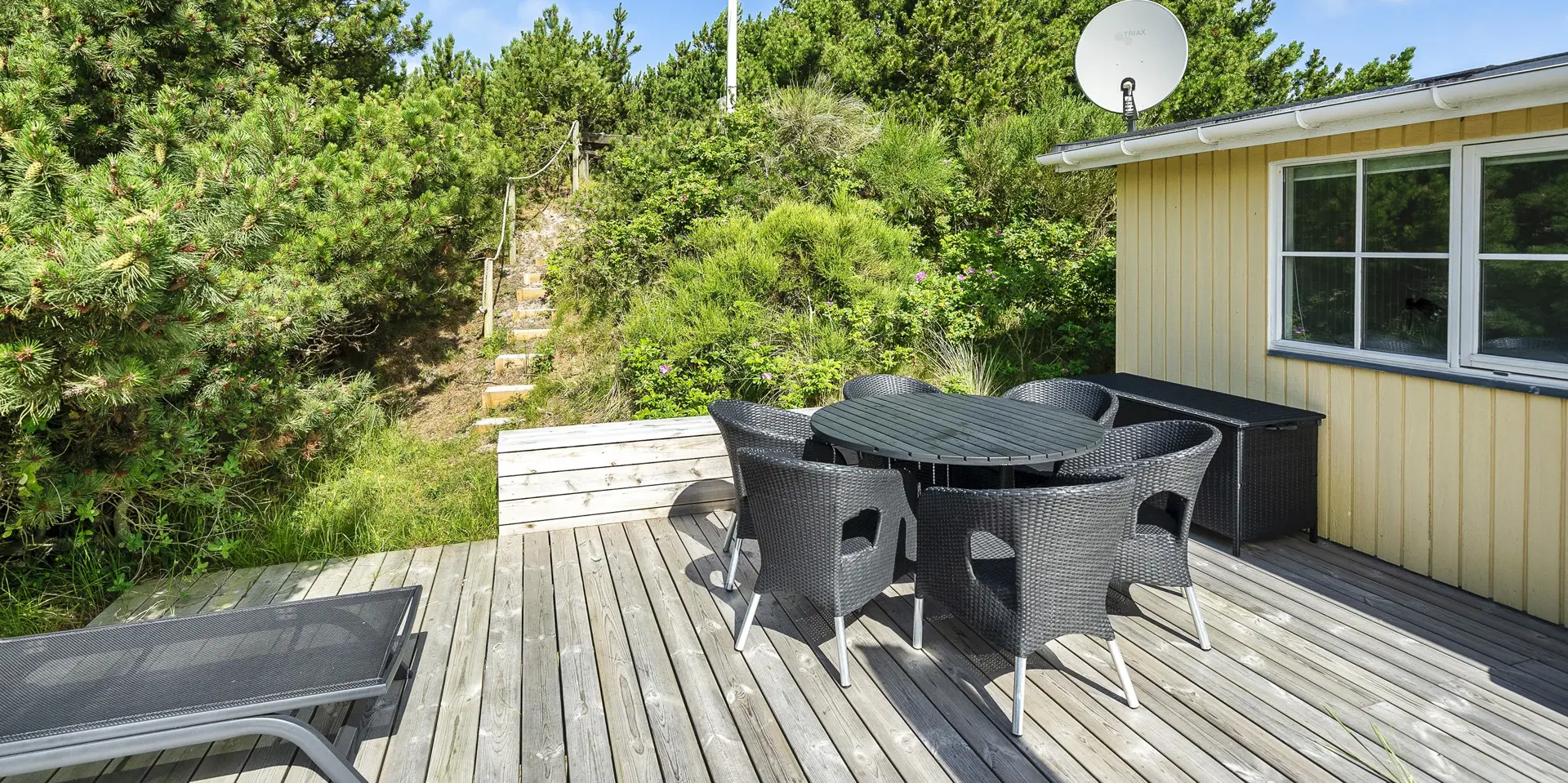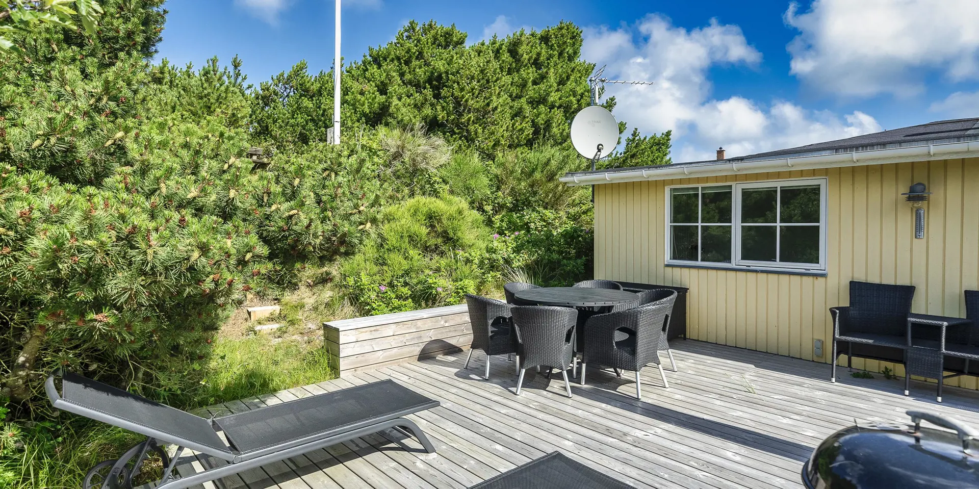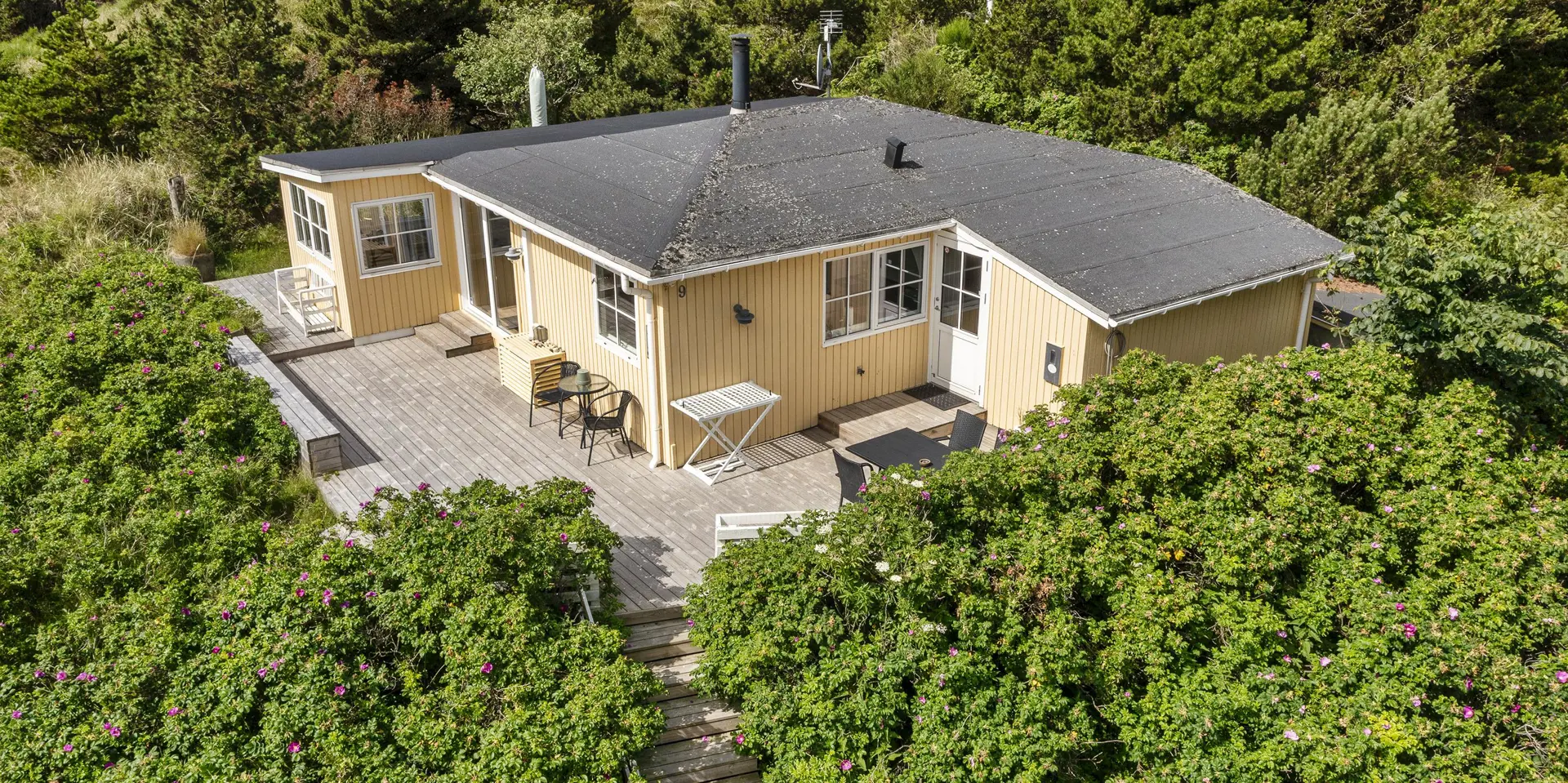 Gemütliches Ferienhaus auf einem grossen Dünengrundstück gelegen, umgeben von Hagebuttenbüschen. Das Ferienhaus ist für 5 Personen ausgestattet. Das Ferienhaus liegt nur 500 Meter vom Strand entfernt. Der Wohn- und Essbereich ist nett eingerichtet mit seinen Möbeln und den offenen stehenden Balken. Dies gibt dem Ferienhaus einen besonderen Charme. Desweiteren befindet sich im Wohnbereich ein gemütliches Kuschelsofa. Der Holzesstisch und die dazugehörigen Stühle passen einfach in das Haus und zur gesamten Ausstattung. Im Wohnbereich ist ein Kamin aufgestellt. Es befindet sich eine Warmepumpe im Ferienhaus. Mit dieser Warmepumpe haben sie die Möglichkeit die Stromkosten zu senken, denn die Warmepumpe ist energiesparend. Das deutsche Fernsehprogramm empfangen Sie über eine Parabolantenne und zusätzlich Chrome Cast. Die neue Küche verfügt über über einen Herd mit Cerankochfeld, einem Backofen, einer Geschirrspülmaschine und einer Kühl- und Gefrierkombination. Das Badezimmer ist mit hübschen Fliesen versehen und mit einer Fussbodenheizung ausgestattet. Desweiteren verfügt das Bad über ein WC, ein Handwaschbecken und eine Dusche. Eine Waschmaschine steht den Gästen im Ferienhaus auch zur Verfügung und diese ist im Badezimmer untergebracht. Insgesamt gibt es drei Schlafzimmer: DB + DB + DB. Das Ferienhaus verfügt über einen Internetanschluss (W-Lan). Am Ferienhaus stehen zwei Terrassenbereiche zur Verfügung. Eine davon ist mit einer Markiese ausgestattet. Es sind keine Haustiere erlaubt. Rauchen ist nicht erlaubt. Buchungen an Jugendgruppen im Alter bis 25 Jahre nehmen wir nicht entgegen. Das Ferienhaus ist 1937 erbaut worden und renoviert in 2019.