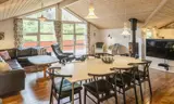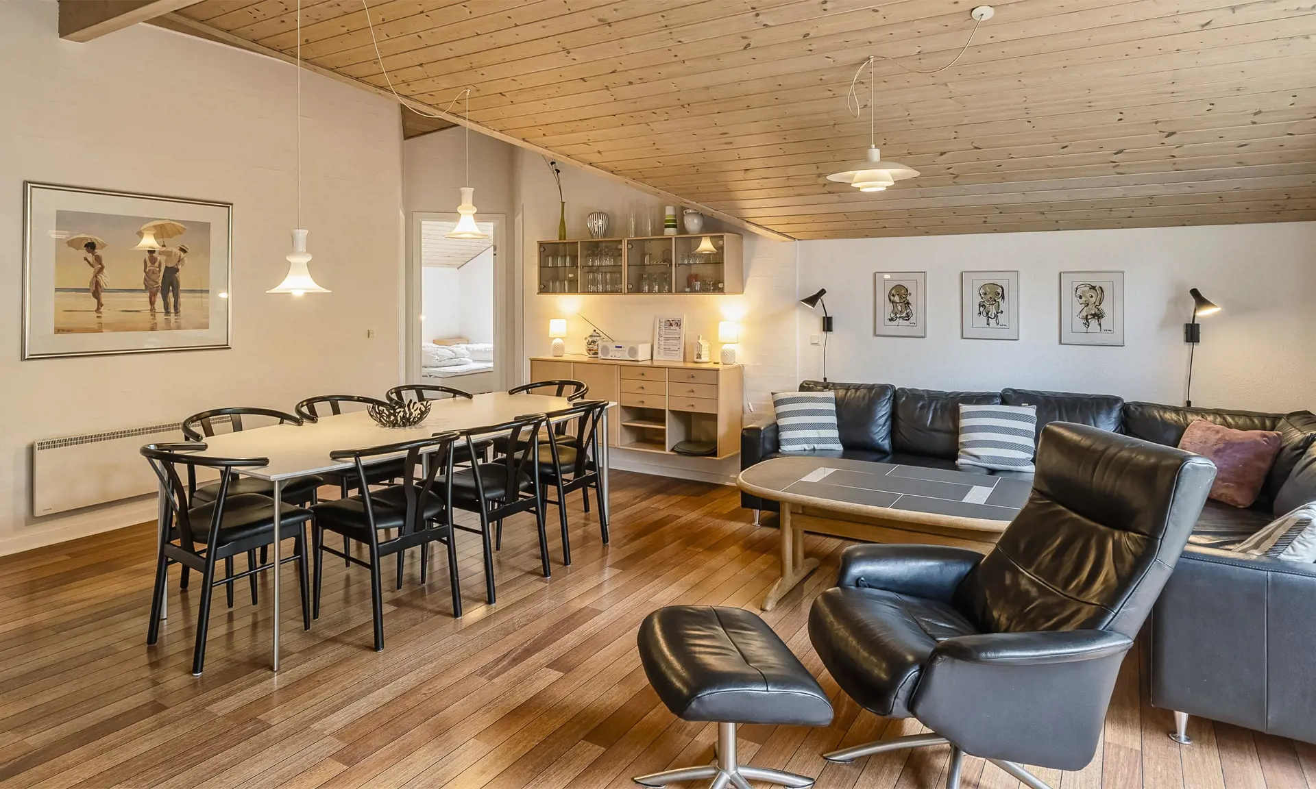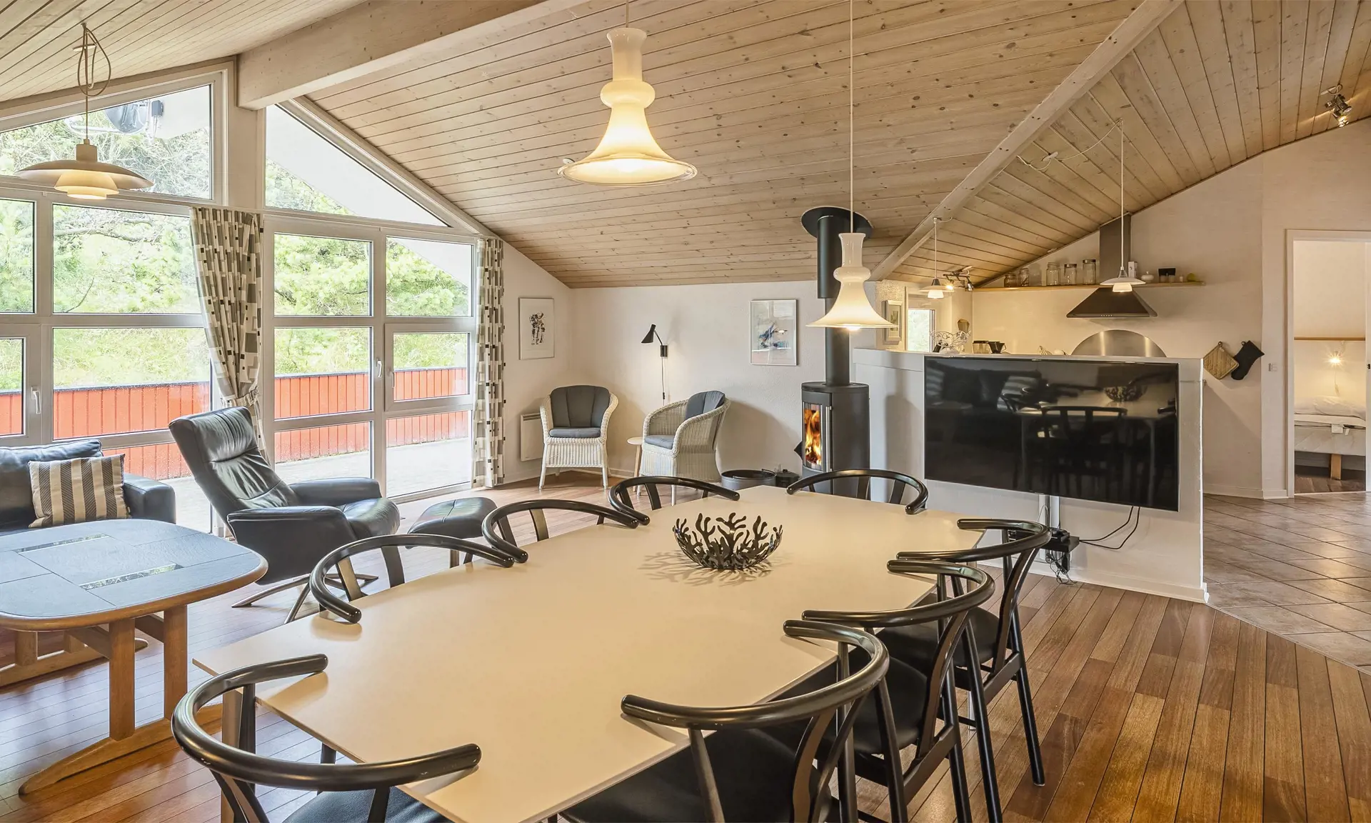 Helles und freundliches Ferienhaus in Mitten der Dünenlandschaft gelegen. Das Ferienhaus ist insgesamt für 8 Personen ausgestattet, aufgeteilt für 6 Erwachsene und 2 Kinder. Der Strand ist nur 200 Meter vom Haus entfernt. Das Wohnzimmer ist mit dem Essbereich zusammen und bietet genügend Platz für alle seine Bewohner. Auf der Rundsitzecke finden Sie Ihren gemütlichen Platz und haben einen direkten Blick auf den Kamin, der eine angenehme Wärme im Hause verteilt. Das deutsche Fernsehprogramm empfangen Sie über eine Parabolantenne. Die Küche ist zum Wohn- und Essbereich offen gehalten. Sie verfügt über einen Herd mit Cerankochfeld, einem Backofen in Arbeitshöhe, einer Geschirrspülmaschine, einer Mikrowelle und einer Kühl- und Gefrierkombination. Es gibt insgesamt 2 Bäder im Ferienhaus. Das eine Bad ist mit einem WC, einem Handwaschbecken, einer Dusche, einer Sauna und einem Whirlpool ausgestattet. Das zweite Bad verfügt über ein WC, ein Handwaschbecken und einer Dusche. Es befinden sich insgesamt vier Schlafzimmer im Ferienhaus: DB + DB + 2B + 2B. Eine Waschmaschine und ein Trockner stehen den Bewohnern zur Benutzung zur Verfügung. Am Ferienhaus befindet sich eine geschlossene Terrasse, wo auch die kleinen Gäste mal raus können zum spielen ohne das sie verloren gehen können. Desweiteren stehen eine Schaukel und eine Sandkiste auf dem Grundstück auch zur Verfügung. Das Ferienhaus verfügt über einen Internetanschluss (W-lan). Es sind keine Haustiere erlaubt. Das Rauchen ist nicht gestattet. Das Ferienhaus ist 2004 erbaut worden. Gratis Eintritt für das Badeland und Bowling in Varde in 2025