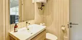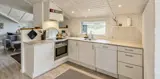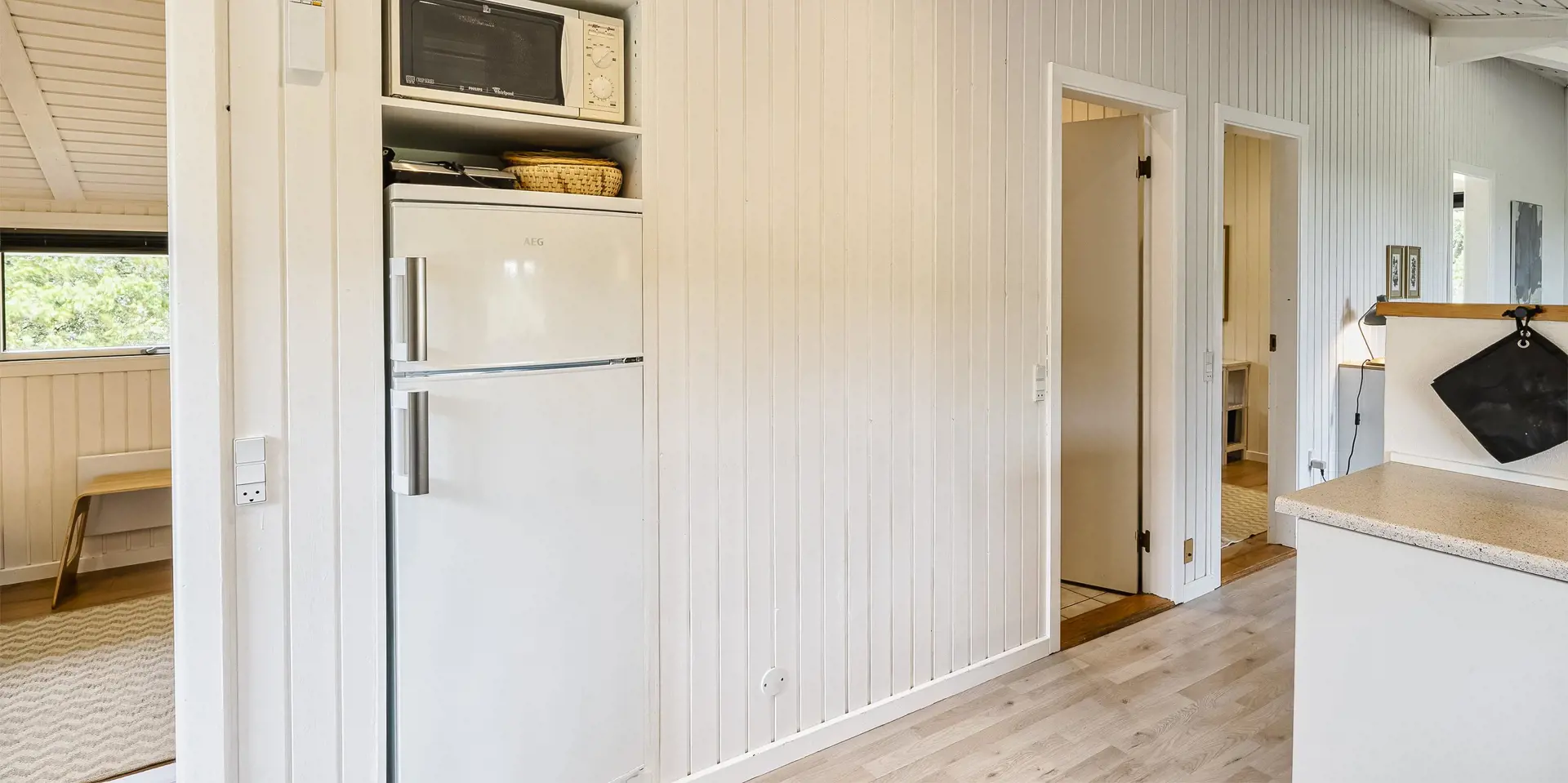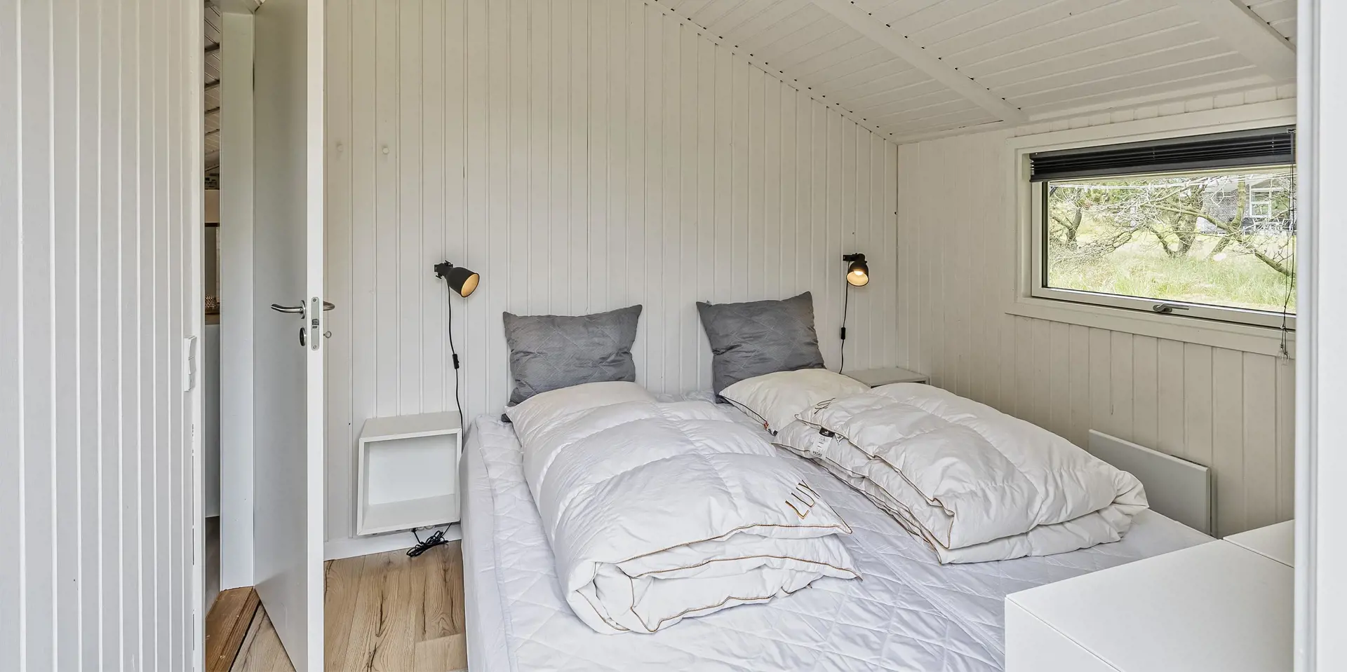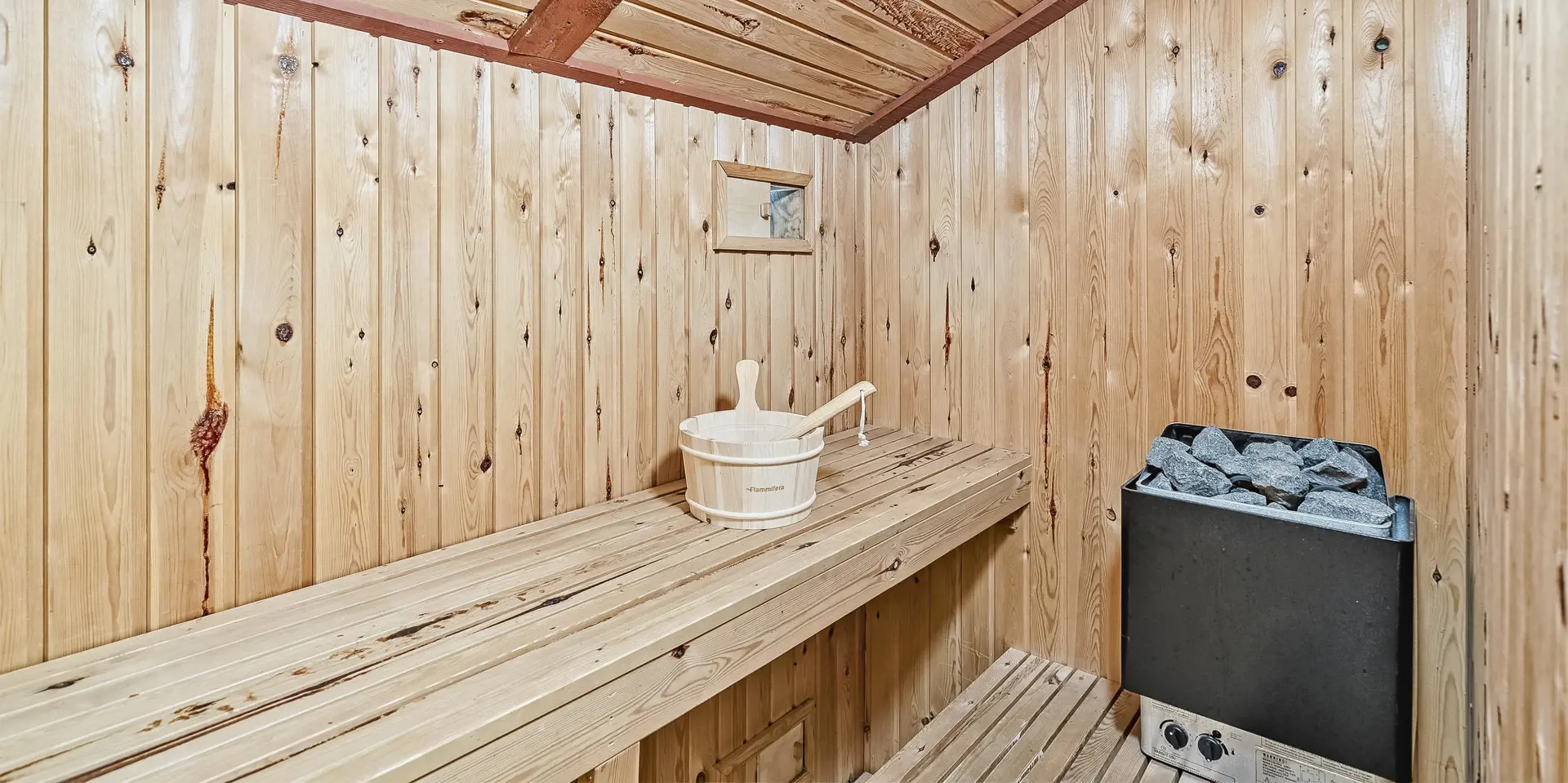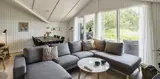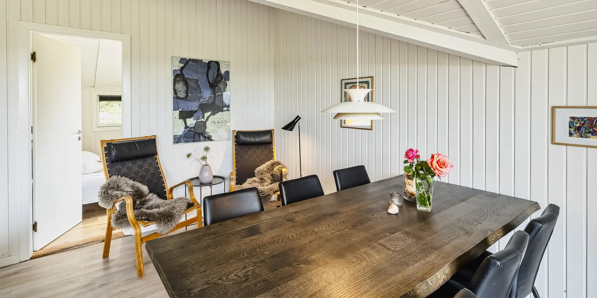Das Wohnzimmer verfügt über einen Holzofen, einen Smart-TV mit dänischen Kanälen im gesamten Wohnzimmer und eine Satellitenschüssel mit ausländischen Kanälen. Es gibt WLAN zur Nutzung und eine Wärmepumpe. Das Wohnzimmer bietet außerdem einen Essbereich am Ende des Wohnzimmers. Vom Wohnzimmer aus hat man Zugang zu 3 Schlafzimmern: DS + DS + 2S. Badezimmer mit Dusche/WC, Sauna.