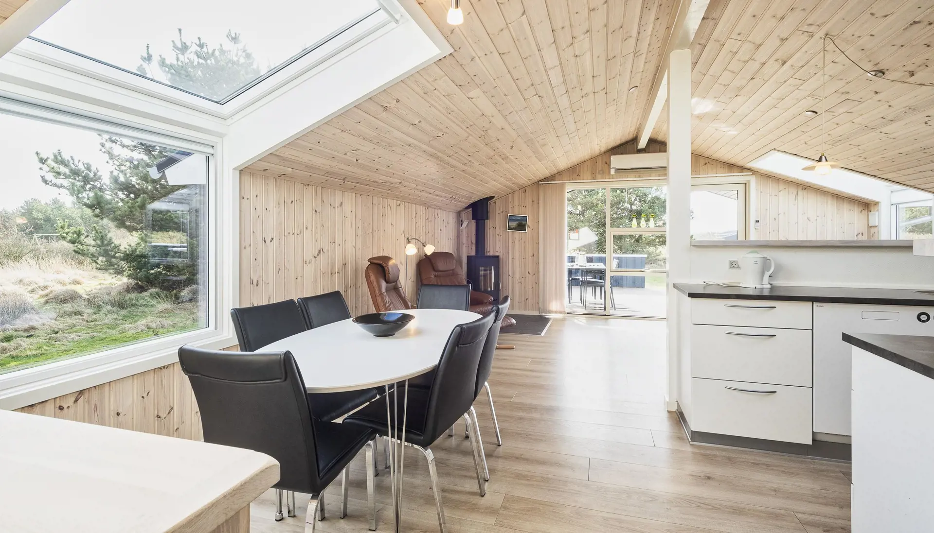 Flott eingerichtetes Ferienhaus auf einem großen Rasengrundstück gelegen. Das Ferienhaus ist für 6 Personen ausgestattet und der Strand ist nur 900 Meter vom Ferienhaus entfernt. Der gesamte Bodenbereich ist mit einem Laminat verlegt worden, außer das Badezimmer, das ist gefliest. Der Wohn- und Essbereich ist zur Küche hin offen gehalten. Im Wohnbereich befindet sich ein gemütliches Sofa und zwei Ledersessel mit einem Hocken sind auch aufgestellt. Der Kamin im Wohnbereich spendet eine angenehme Atmosphäre. Das deutsche Fernsehprogramm empfangen Sie über eine Parabolantenne. Es befindet sich eine Warmepumpe im Ferienhaus. Mit dieser Warmepumpe haben sie die Möglichkeit die Stromkosten zu senken, denn die Warmepumpe ist energiesparend. Die offene Küche ist modern eingerichtet und mit einem Herd mit Cerankochfeld, einem Backofen, einer Geschirrspülmaschine, einer Mikrowelle und einer Kühl- und Gefrierkombination ausgestattet. Das große Badezimmer hat ein WC, ein Handwaschbecken, eine Dusche, eine Sauna und einen Standwasser-Whirlpool. Dieser ist in einer Ecke im Bad aufgestellt und steht ständig mit Wasser gefüllt und daher sofort betriebsbereit. In diesem Badezimmer befindet sich ein Lüfter, der die ganze in Betrieb ist und dieser Lüfter kann nicht abgeschaltet werden. Er muss die ganze Zeit in Betrieb sein. Im Ferienhaus gibt es insgesamt drei Schlafzimmer: DB + DB + 2B. Eine Waschmaschine und ein Trockner stehen im Ferienhaus für die Gäste zur Nutzung bereit. Das Ferienhaus verfügt über einen Internetanschluss (W-Lan). Es sind max. drei Haustiere erlaubt. Das Rauchen im Ferienhaus ist nicht erlaubt. Ein Carport am Hause gibt Ihrem Fahrzeug einen geschützten Platz. Auf der geschlossenen Terrasse können Ihre Vierbeiner mal Luft schnappen, ohne das sie gleich stiften gehen können. Ein kleiner Teil der Terrasse ist sogar überdacht. Bei diesem Ferienhaus fallen Zusatzkosten für den Wasserverbrauch an. Eine Sandkiste und ein Schaukelstativ stehen den Kleinen Gästen auf dem Grundstück zur Verfügung. Katzen sind nicht erlaubt. Das Ferienhaus ist 1982 gebaut worden und in 2017 renoviert. Badezimmer 2024 renoviert. Zusätzlich befindet sich ein Anschluss am Ferienhaus für El-Fahrzeuge (Ladestecker mit 230 volt).