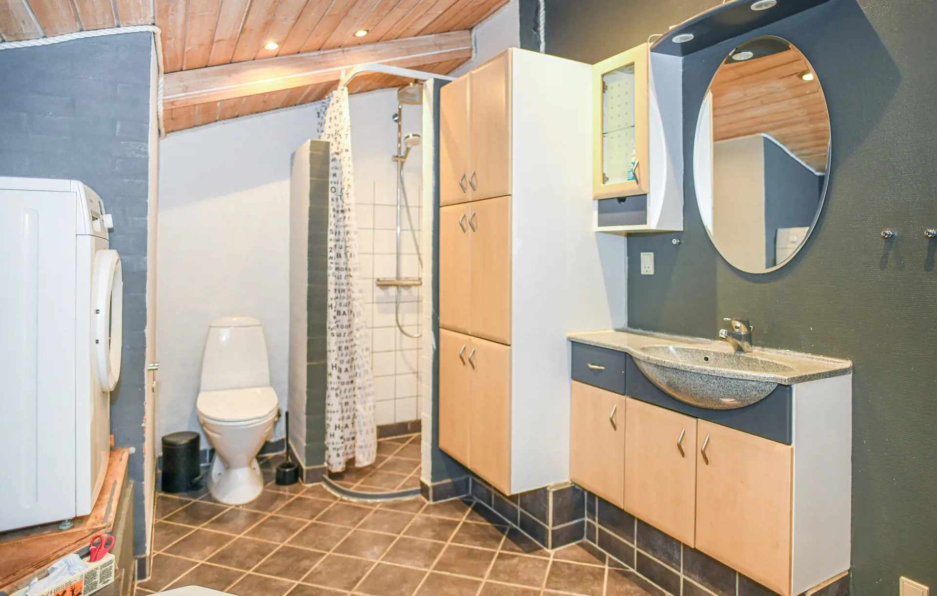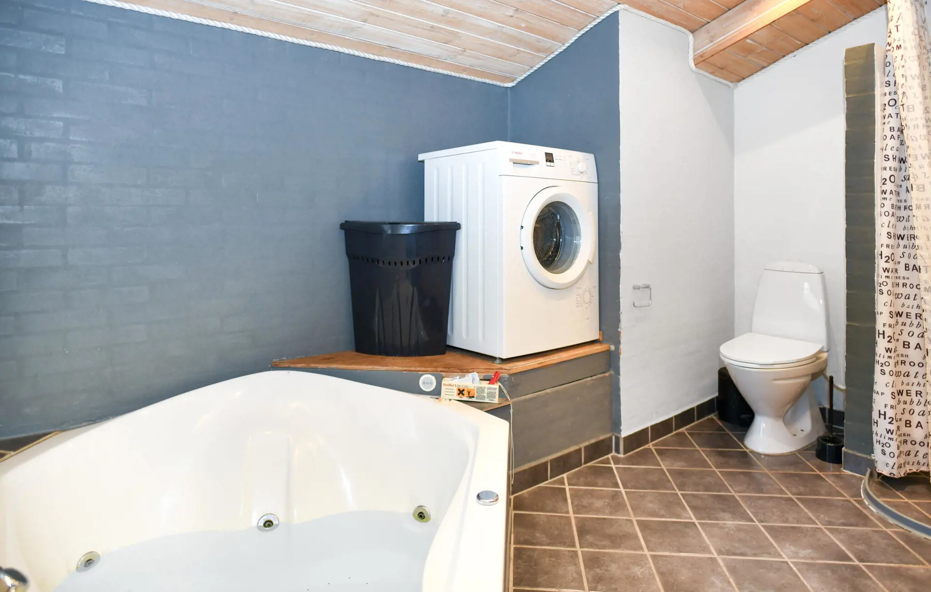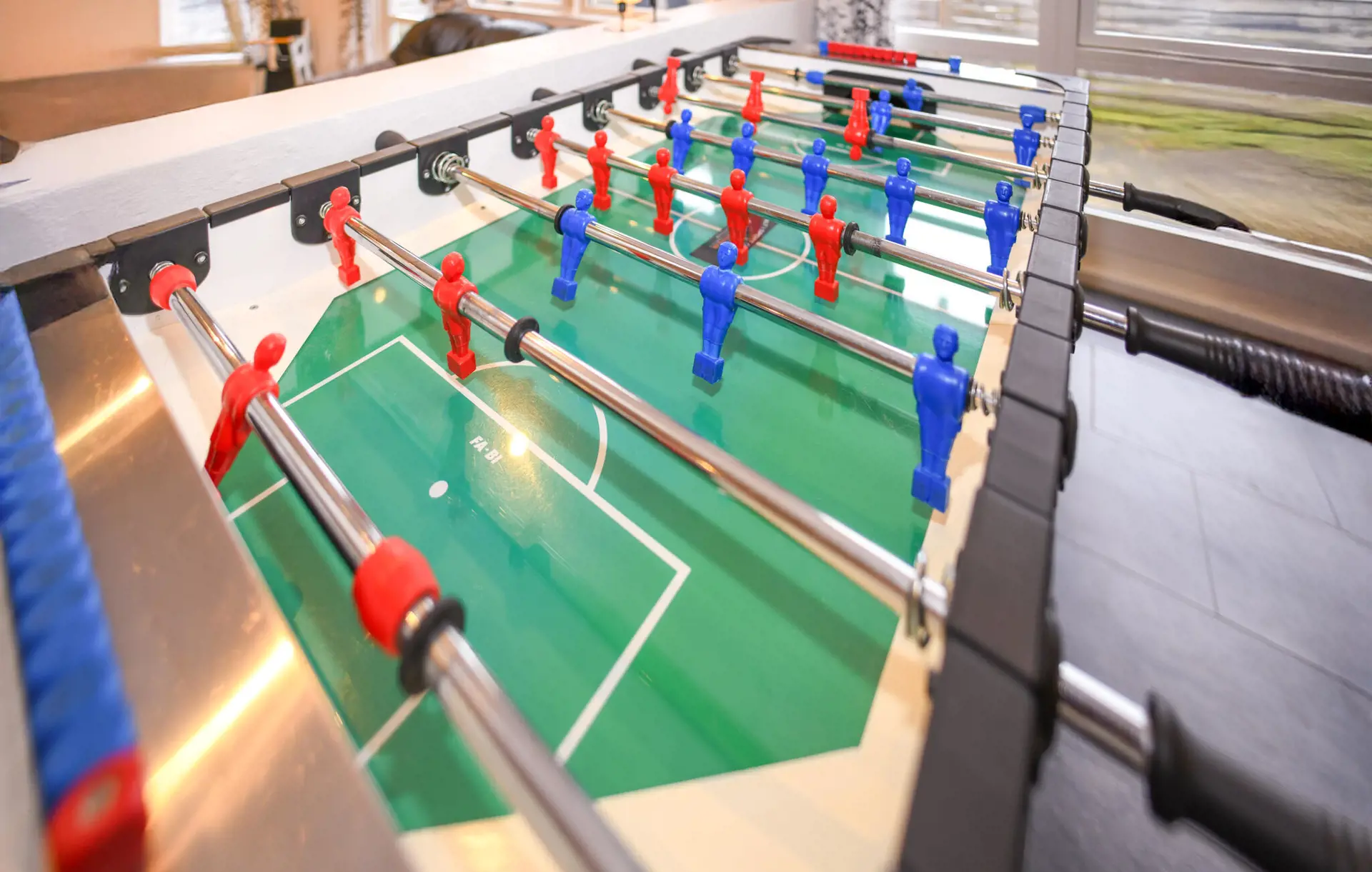 Betreten Sie den großzügigen Wohnbereich und machen Sie es sich auf den bequemen Sofas bequem. Bereiten Sie Ihre Mahlzeiten in der schönen, offenen Küche zu, die Ihnen alles Notwendige für Ihre täglichen Mahlzeiten bietet. Nutzen Sie die gemütliche Essecke für gemeinsame Mahlzeiten oder für gesellige Abende mit Spielen. Entspannen Sie im Whirlpool oder genießen Sie die Wärme des Kaminofens nach einem langen Tag an der frischen Luft. Spielen Sie eine Runde Tischkicker und verbringen Sie unterhaltsame Stunden mit der Familie.