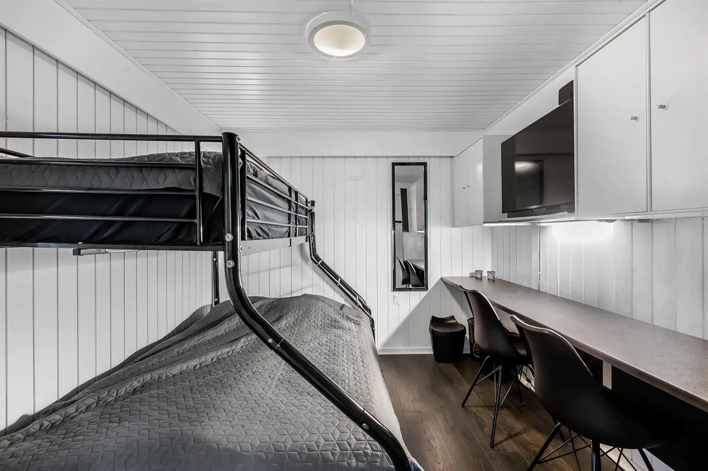 Die Schlafplätze verteilen sich auf 3 Schlafräume. 2 Schlafplätze in einem Doppelbett. 2 Schlafplätze in Einzelbetten.1 Schlafplatz in einem Etagenbett.