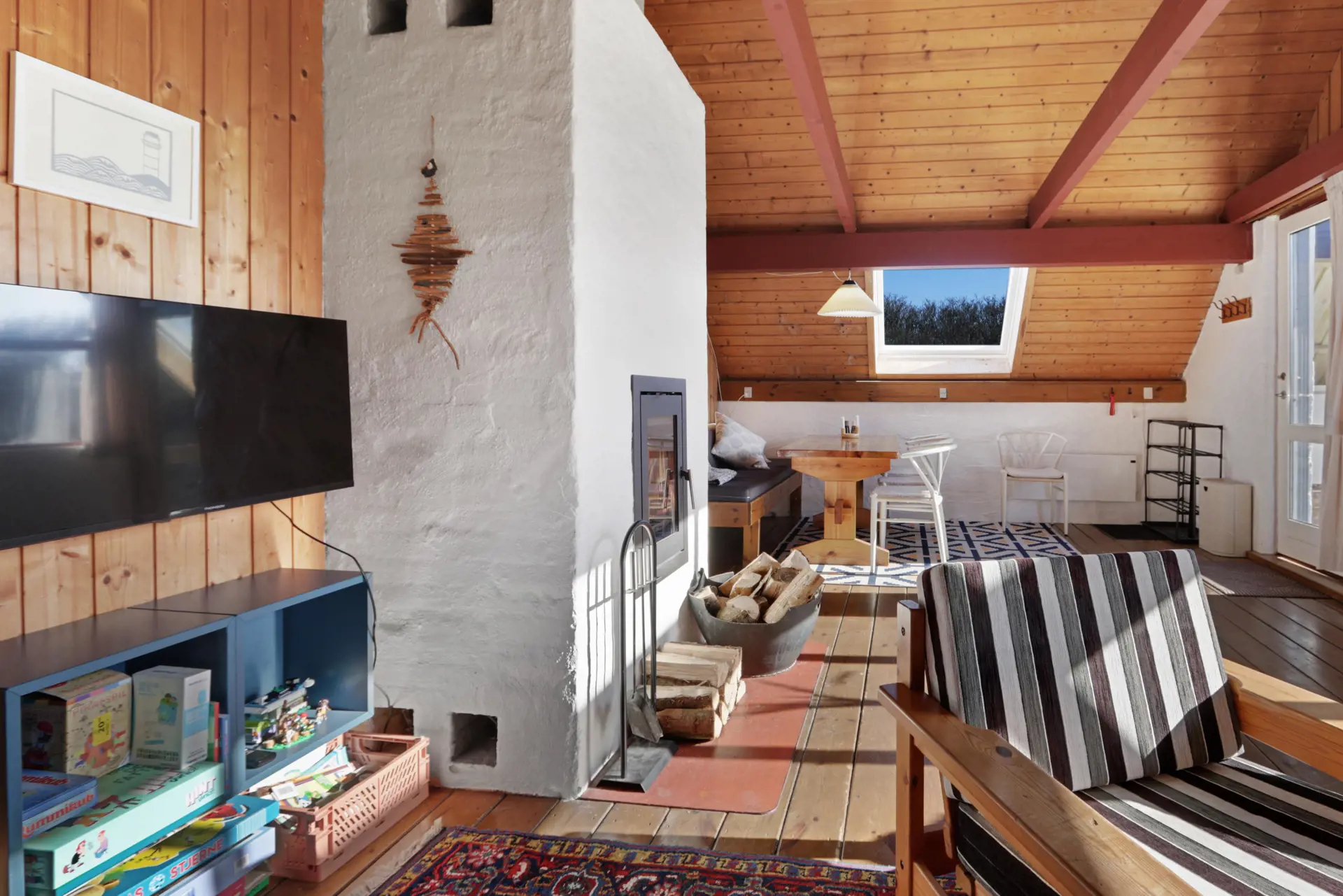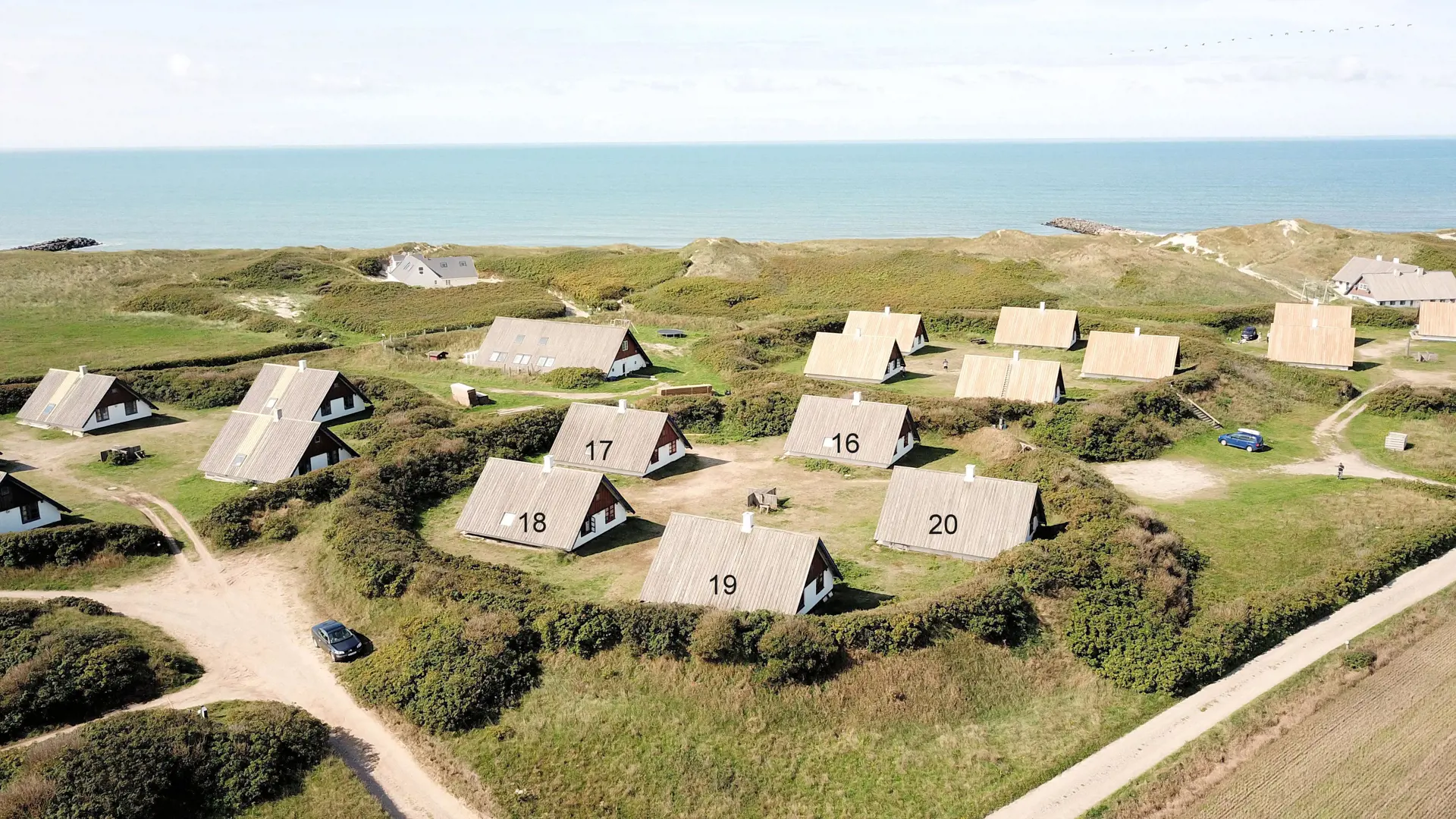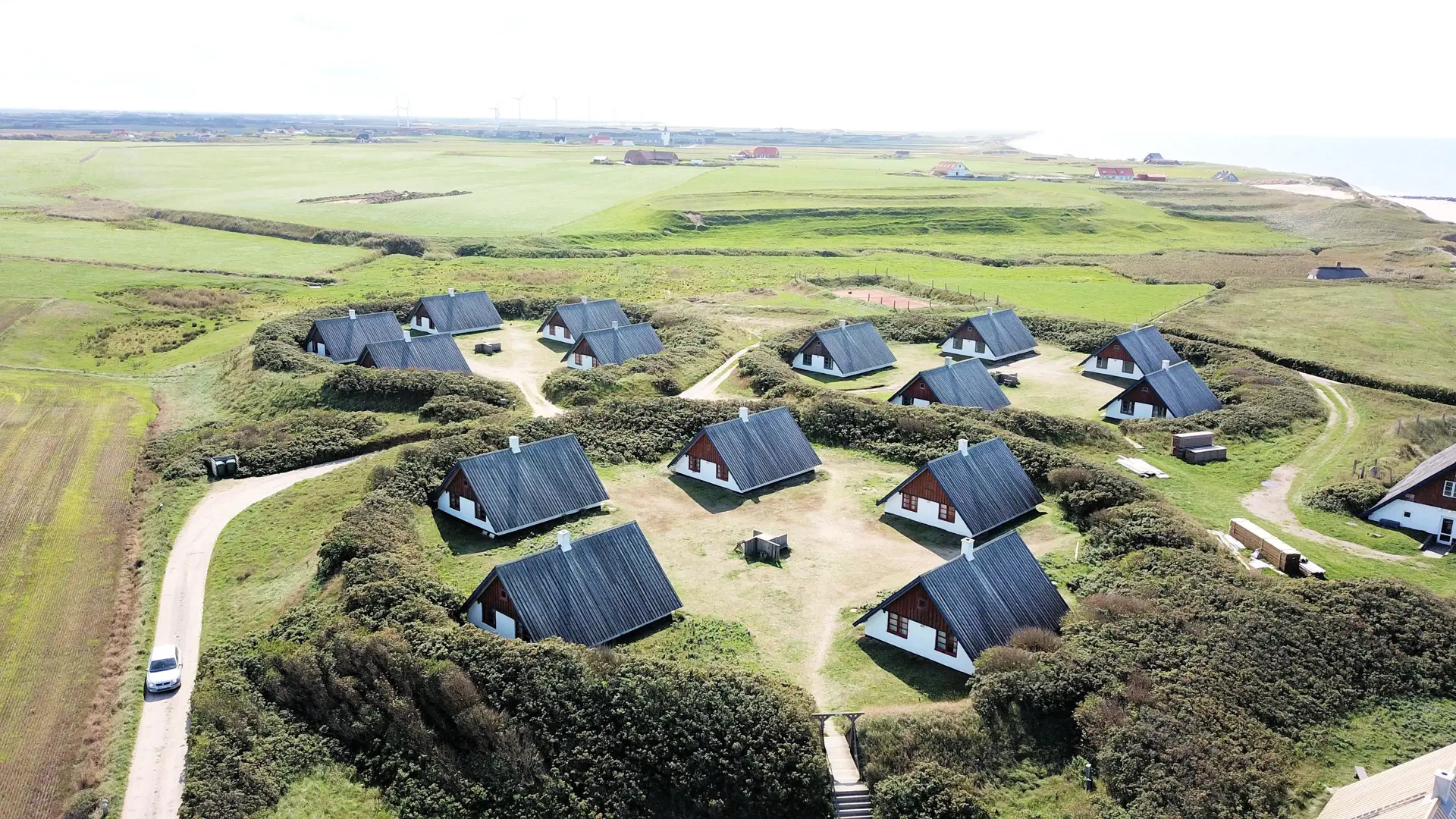 Vom Wohnraum ist ein Ausgang zur kleinen überdachten Terrasse mit Gartenmöbeln, 2 Sonnenliegen und einem Grill. Das Haus ist ein Teil von Fjaltring Ferieby , welches aus 25 ungefähr gleichen A-Häusern, die in 5 Zirkeln aufgeteilt sind. Die ganze Feriensiedlung liegt in einem schönen “Topf” im geschützen Dünenbereich, nur etwa 200 m von der Nordsee entfernt. Geniessen Sie einen ökonomischen Urlaub in einem ganz einfachen Haus in einer einmaligen Lage. Parken Sie das Auto und Sie können den Urlaub geniessen. Den Strand erreichen Sie unter 5 Minuten zu Fuss. Erleben Sie die tosende Nordsee, die jeden Tag ganz neue Erlebnisse anbietet. Laufen Sie am Strand entlang , oder erkunden Sie die vielen anderen Möglichkeiten der Gegend.