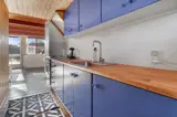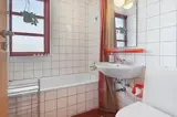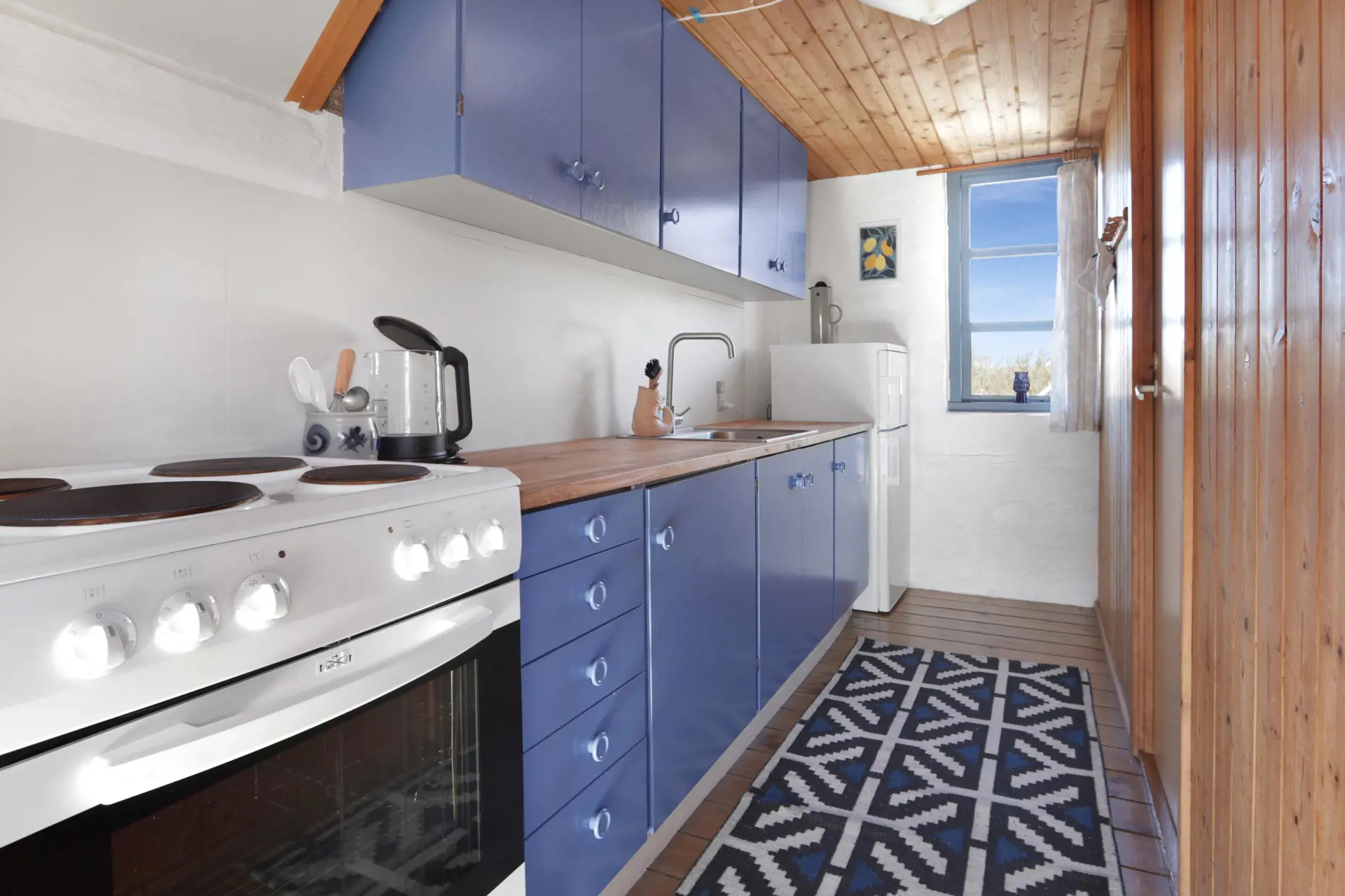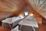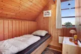 Rustikales Ferienhaus, 90 m2 mit 3 Schlafräumen: 1DB im 1. Stock. 1 Schlafraum mit 1 B. 1 Schlafraum mit 2 Einzellbetten über Eck im Raum im Erdgeschoss. Das Haus ist sehr einfach eingerichtet; ein Wohnraum mit Polstermöbeln, TV mit dänischen und deutschen Programmen, Wärmepumpe und einer Feuerstätte. Einfache Küchenecke mit E-Herd mit 4 Kochplatten und ein Kühlschrank mit kleinem Gefrierfach. Badezimmer mit Toilette, Dusche und Waschbecken. 1 Haustier ist erlaubt.