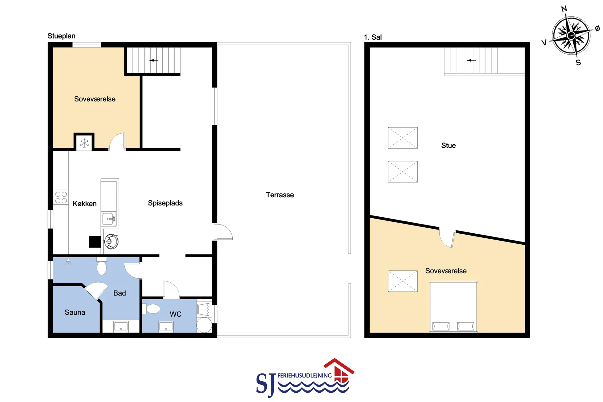 Der Hof liegt in einem ruhigen Gebiet auf einem 9.805 m² großen Naturgrund direkt zum Meer und 1,6 km südlich vom Bovbjerg Leuchtturm. Die Wohnung ist charmant eingerichtet in hellem Stil. Ein Schlafraum mit Doppelbett sowie ein Wohnraum im 1. Stock, beide mit Meerblick. Der Wohnraum verfügt über Stereoanlage mit CD, Farbfernseher mit DVD und Parabol. Im Erdgeschoss: Flur, Badezimmer mit Fußbodenheizung, Sauna und Duschnische. Gästetoilette mit Waschmaschine und Trockner. Esszimmer in offener Verbindung zur gut ausgestatteten Küche mit Ceranfeldherd, Umluftofen, Mikrowelle, Kühlschrank mit Gefrierbox, Geschirrspüler und Kaffeemaschine. Schlafraum mit Doppelbett. Überall in der Wohnung gibts Holz- oder Klinkerboden.