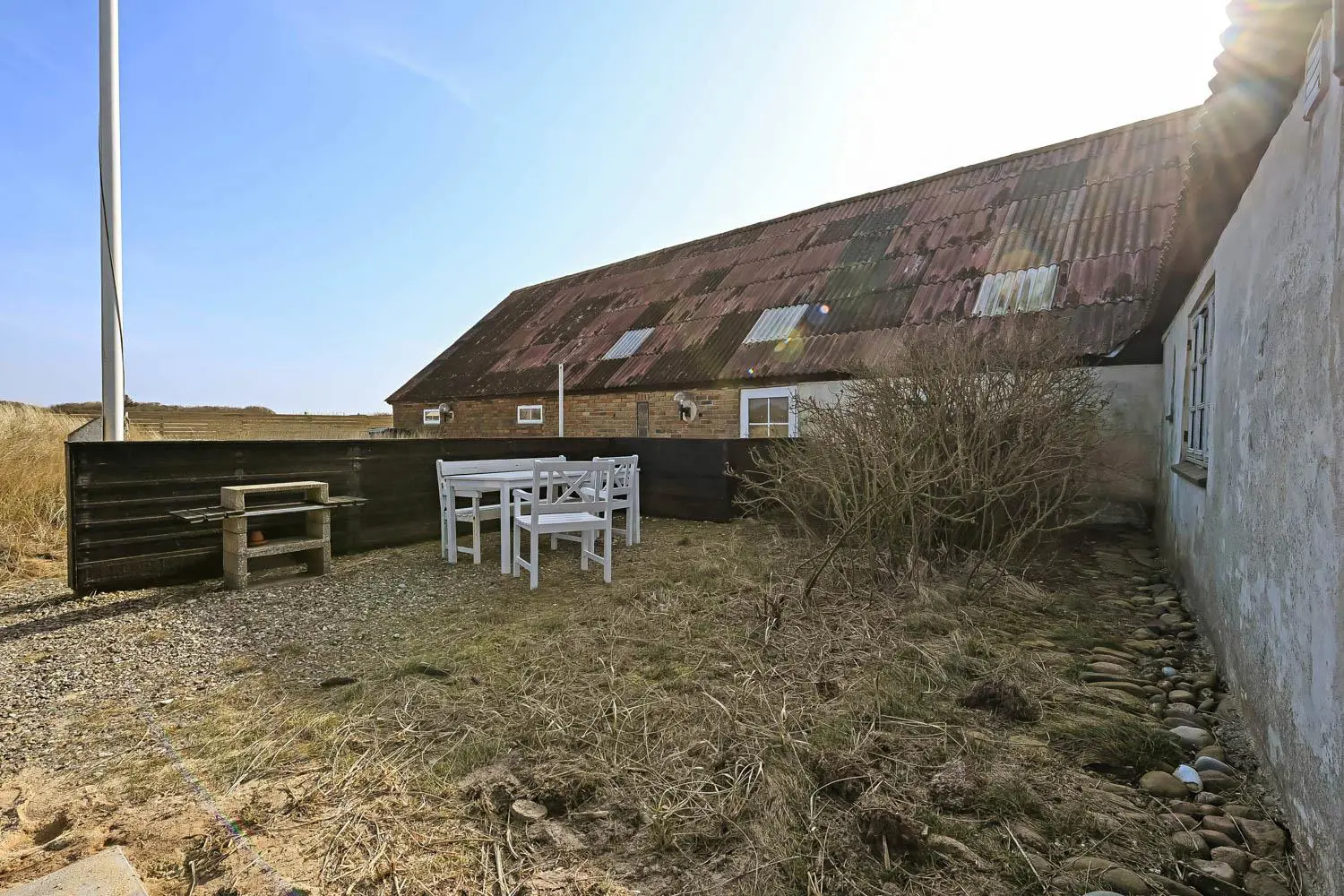 Der Hof befindet sich auf einem großen, ruhigen Naturgrundstück von 9.805 m² mit direktem Zugang zum Meer, etwa 1,6 km südlich vom Bovbjerg Leuchtturm. Die Lage ist friedlich und naturnah – ideal für alle, die Ruhe und Nähe zur Natur suchen.