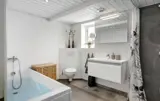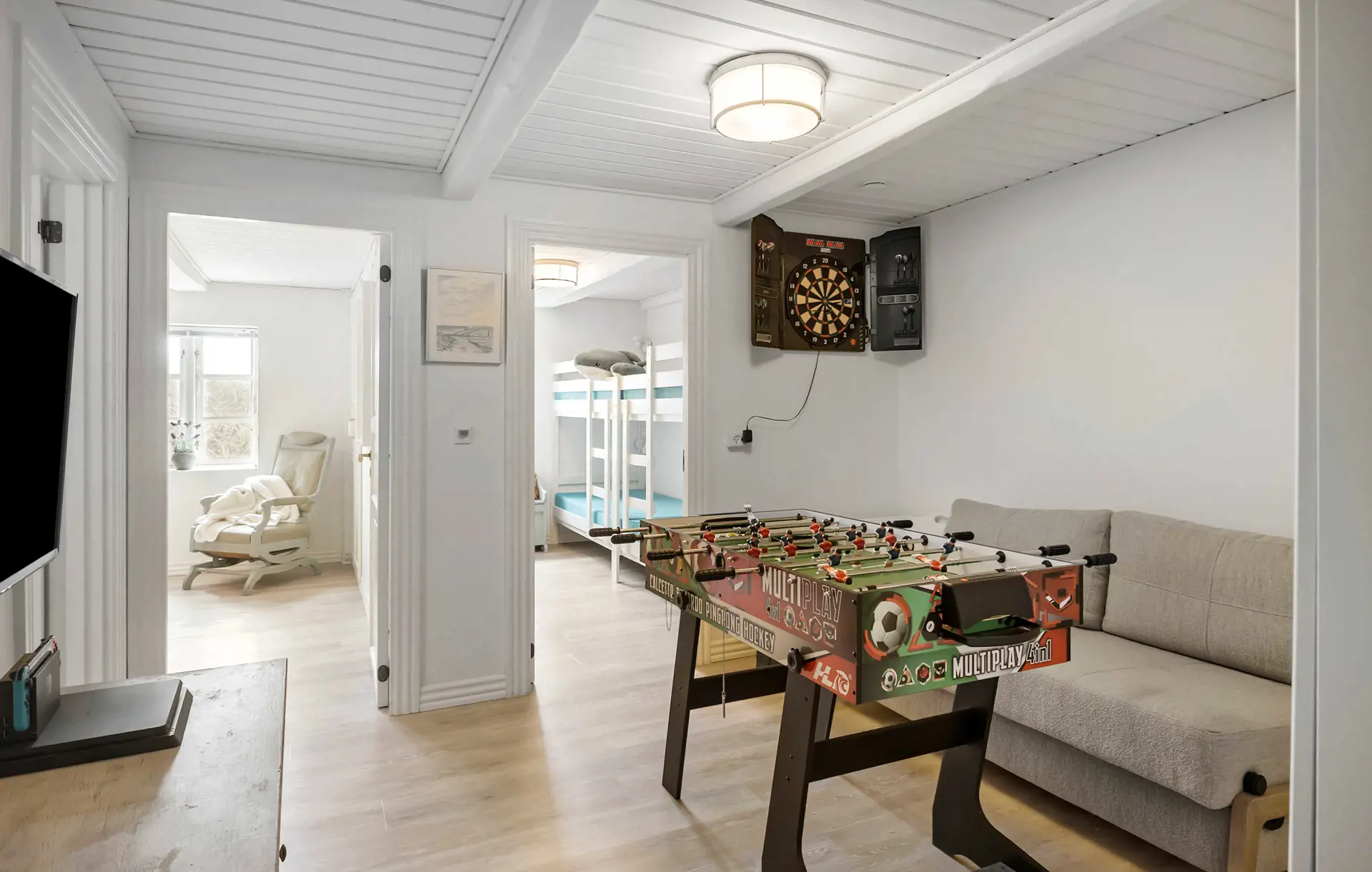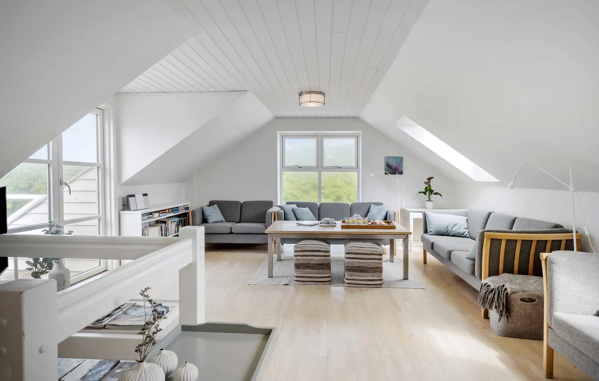 Mitten in der rauen Natur bei Fjaltring liegt dieses einladende Ferienhaus – ideal für einen Urlaub mit Familie oder Freunden, bei dem gemeinsame Zeit im Mittelpunkt steht. Drinnen erwarten Sie helle, freundliche Wohnräume mit viel Platz zum Zusammensein. Die offene Küche ist mit dem Essbereich verbunden, sodass Kochen und Geselligkeit ganz natürlich ineinander übergehen. Nach einem Tag an der frischen Nordseeluft lädt die Sauna zum Aufwärmen und Entspannen ein. Im Aktivitätsraum sorgen Tischfußball, Darts und Spielkonsole für Unterhaltung bei Groß und Klein. Draußen bieten mehrere Terrassen gemütliche Rückzugsorte für lange Sommerabende mit Grill, Gartenmöbeln und Feuerstelle. Auch eine Ladestation für Elektroautos ist vorhanden. Die Umgebung rund um Fjaltring und Lemvig lockt mit Dünen, breiten Sandstränden und Ausflugszielen wie dem Bovbjerg Fyr. Hier genießen Sie frische Meeresluft, weite Landschaften und echte westjütländische Ferienstimmung