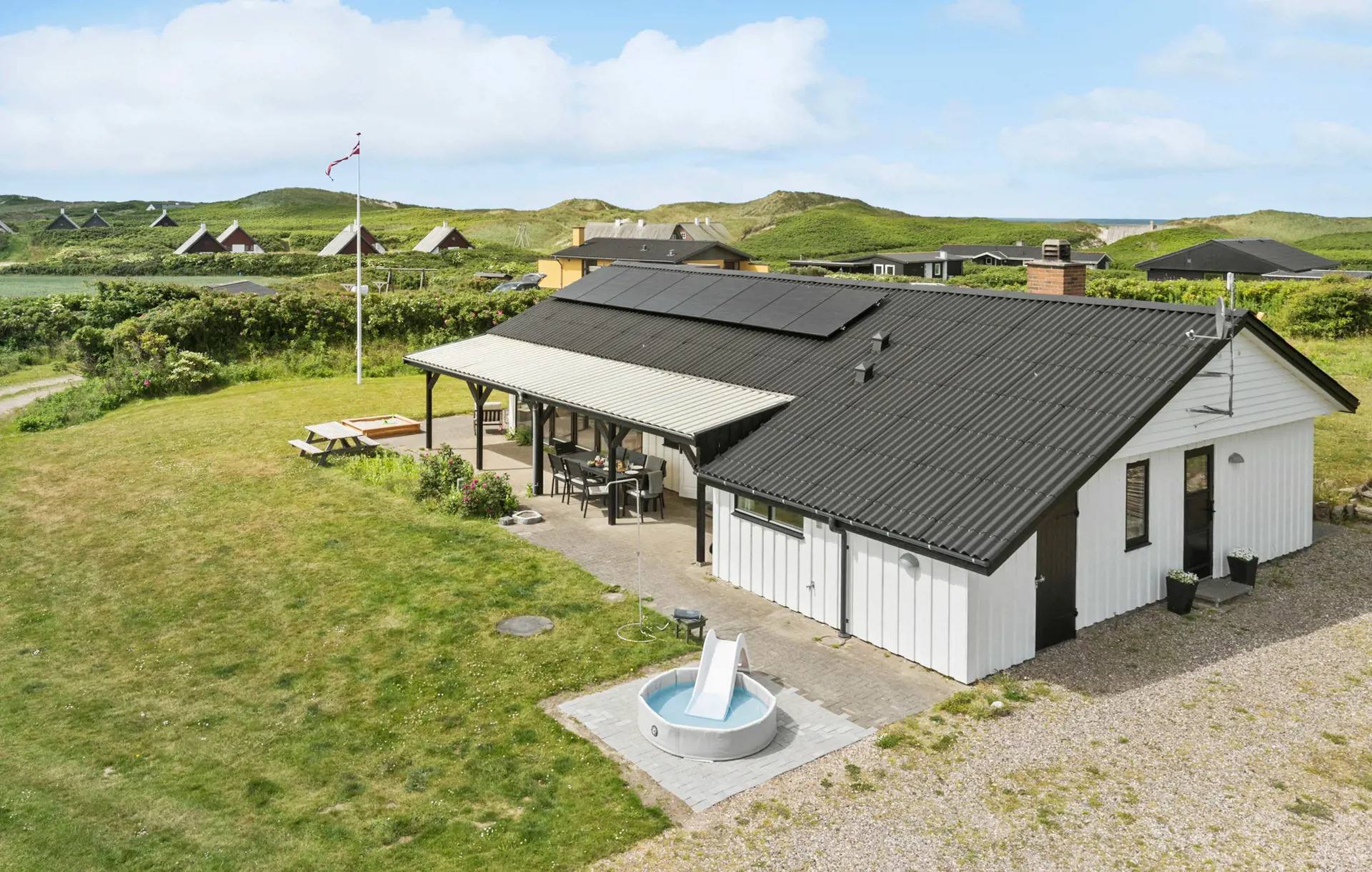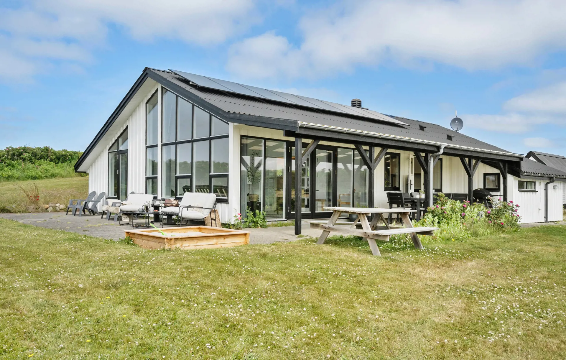 Gemütliches Ferienhaus in einzigartiger Lage bei Fjaltring, nur 200 Meter vom Strand entfernt. Umgeben von Dünen und unberührter Natur bietet es ideale Bedingungen für einen erholsamen Urlaub mit Familie oder Freunden. Das Haus verfügt über ein einladendes Wohnzimmer mit Kaminofen, offene Küche, Sauna und Platz für bis zu 8 Personen. Tischfußball sorgt für Unterhaltung, während die Terrasse mit Grill und Feuerstelle perfekte Rahmenbedingungen für lange Sommerabende schafft. Die Umgebung lädt zu Spaziergängen entlang der Nordsee, Naturerlebnissen und Ausflügen nach Lemvig oder zum Bovbjerg Leuchtturm ein.