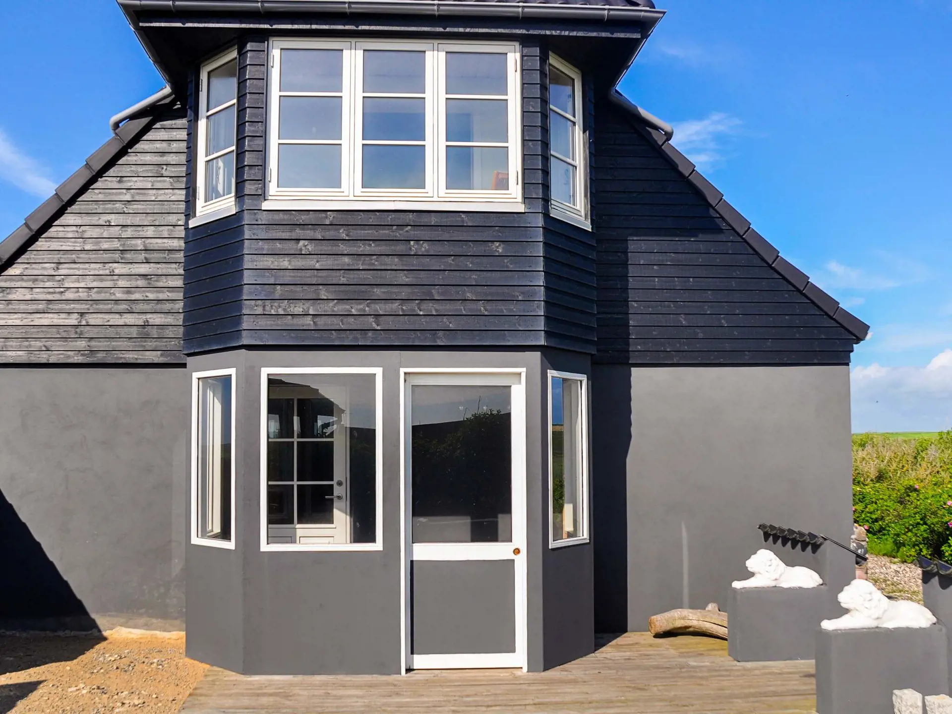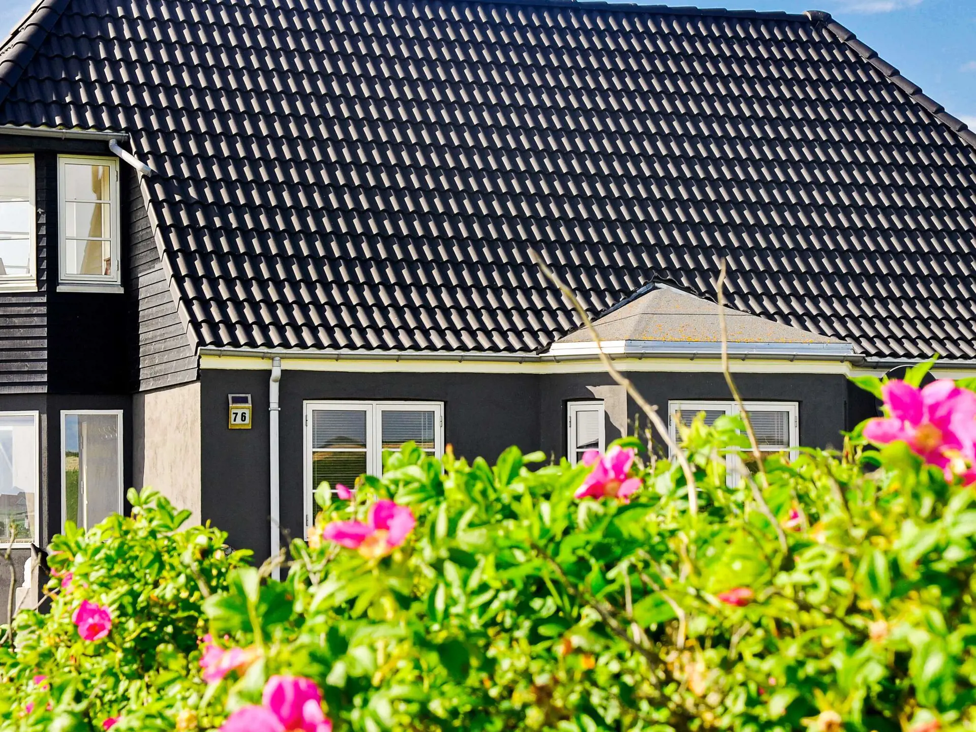 Das Ferienhaus liegt auf einem großen Naturgrundstück mit Rasenfläche und weitläufiger, gut abgeschirmter Südterrasse mit Grill und Ausblick zur umliegenden Dünenlandschaft. Für Spiel und Spaß der Kinder steht ein Fußballtor bereit. Die Gegend ist kinderfreundlich und für aktive Familien ideal.
