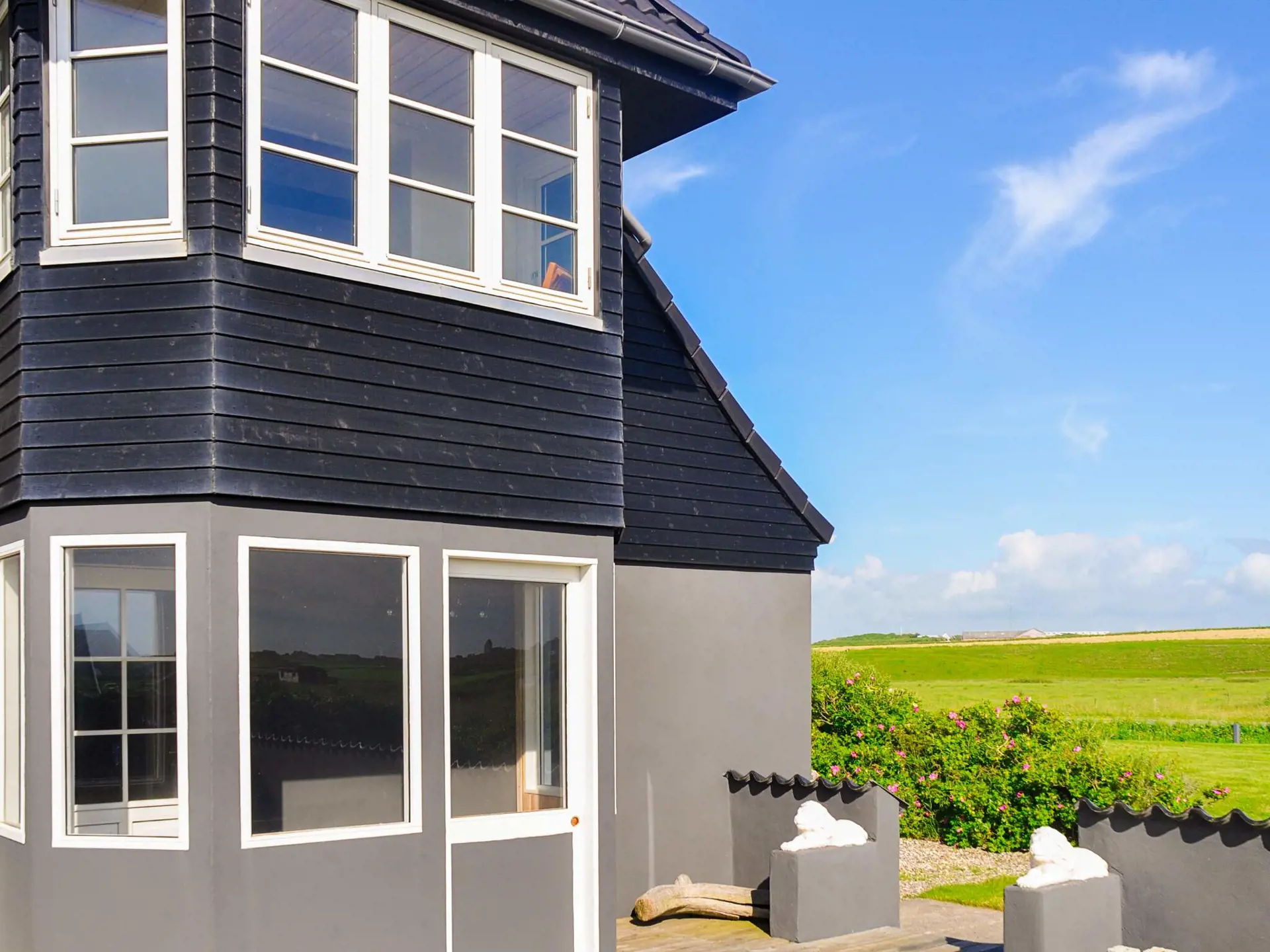 Etwa 300 m von der Nordsee und nur ca. 150 m vom Ferring See liegt dieses Ferienhaus. Den Seeblick genießen Sie von der Küche sowie oben vom 1. Stock aus.