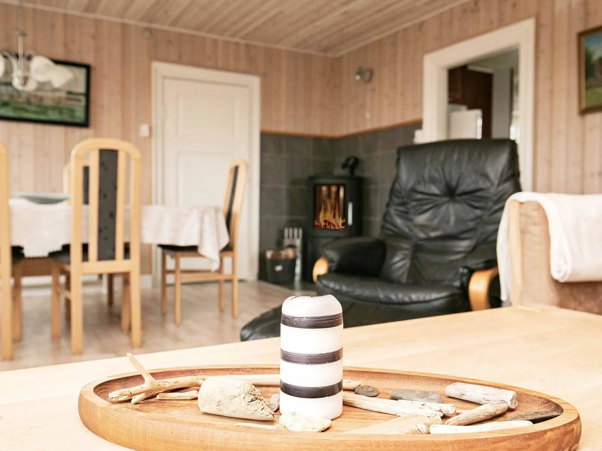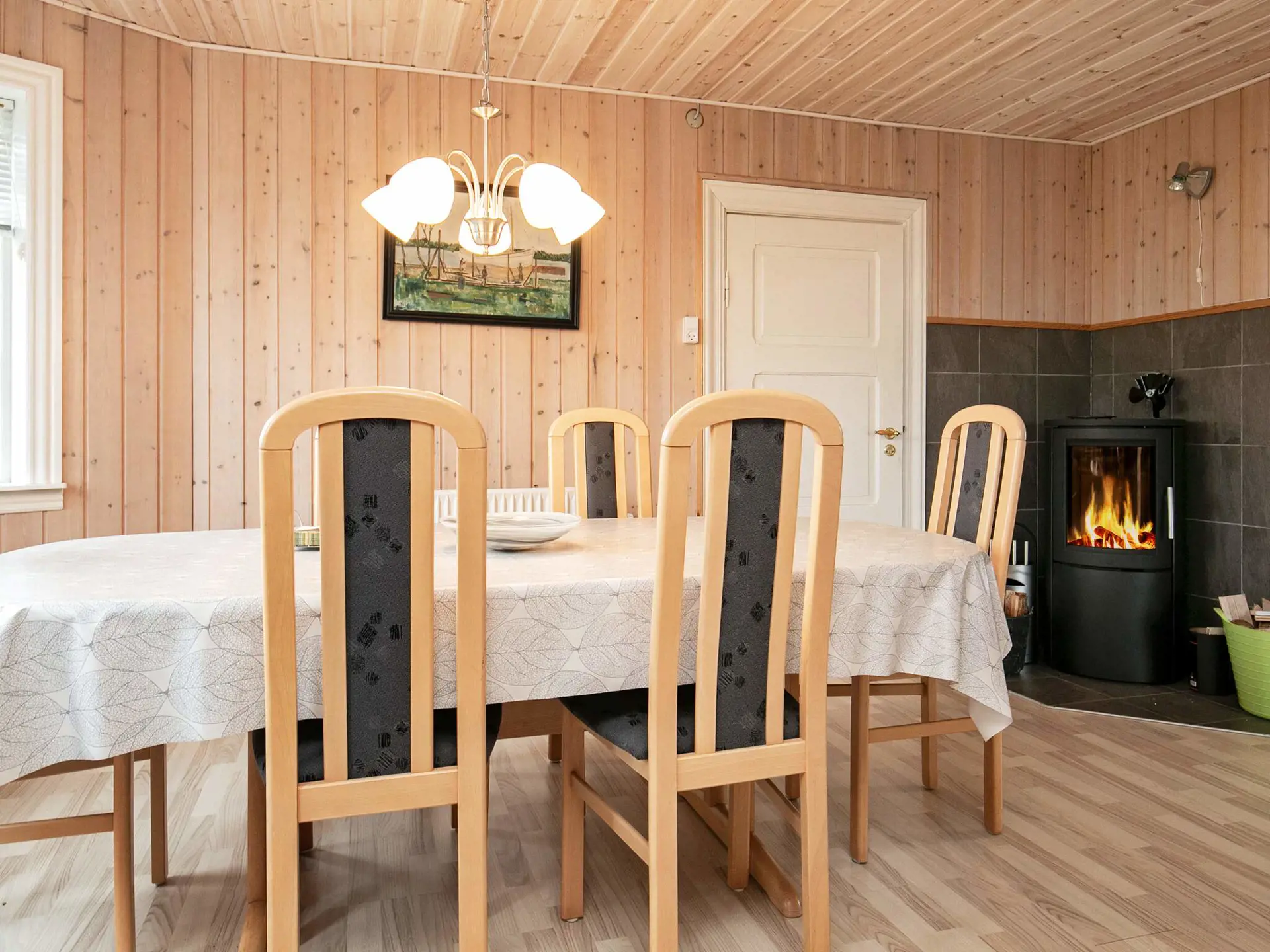 Im Erdgeschoss befinden sich u.a. die geräumige Küche mit u.a. Ceranfeld, Mikrowelle und Geschirrspüler sowie das Wohnzimmer mit Holzofen und Fernseher (nur deutsche Sender), WLAN und Stereoanlage mit CD-Spieler.