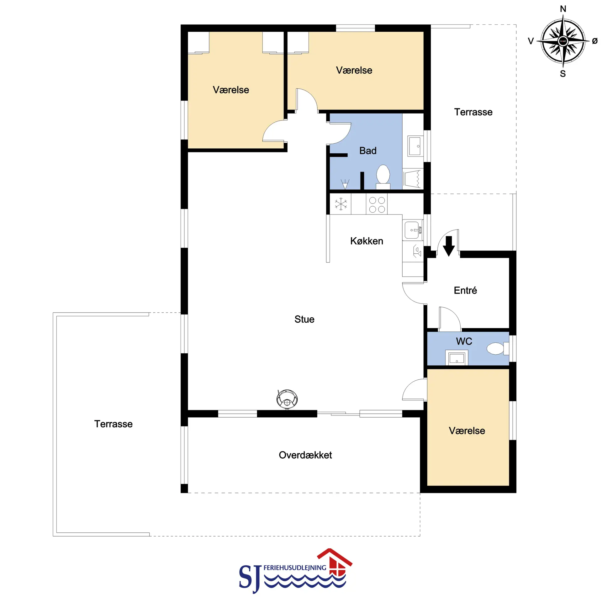 Der Urlaub kann beginnen, sobald das Auto in dem zum Haus gehörenden Carport geparkt ist. Das Haus hat eine Größe von 84 m² und wurde 2025 renoviert. Der Eingangsbereich des Hauses heißt Sie willkommen und bietet Platz für Schuhe und Jacken.