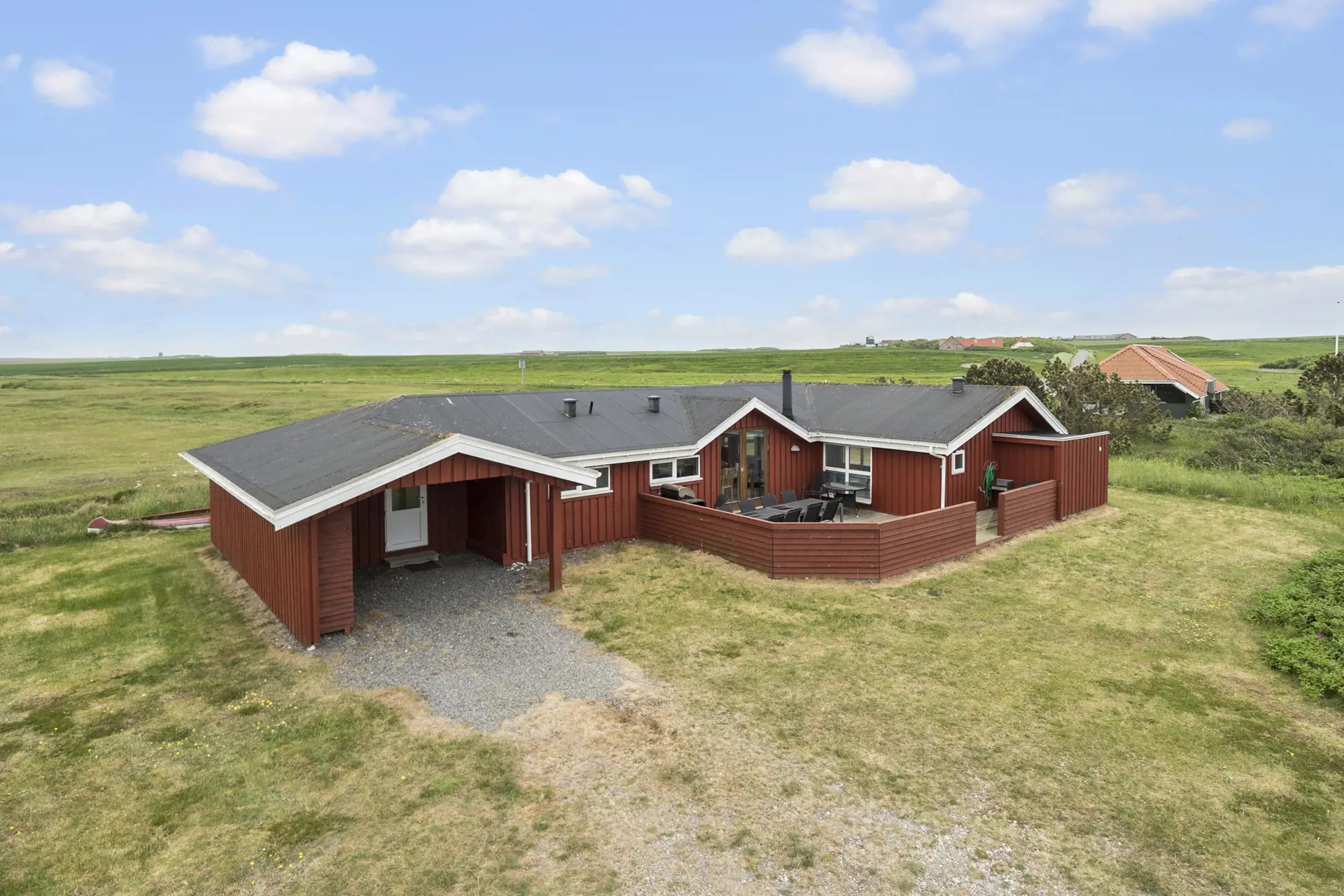 Vom Wohnraum gibt es einen Ausgang zur eingezäunten Terrasse mit Gartenmöbeln, Sonnenliegen und Grill. Hier können Sie die Sonne geniessen oder vor dem Grill am Abend den Sonnenuntergang geniessen. Es gibt ein Carport für das Auto. Ein Haus zu jeder Jahreszeit und mit vielen Möglichkeiten etwas drinnen oder draussen zu machen. Innerhalb von 30-45 Minuten können Sie mehrere Attraktionen und Einkaufsmöglichkeiten erreichen.