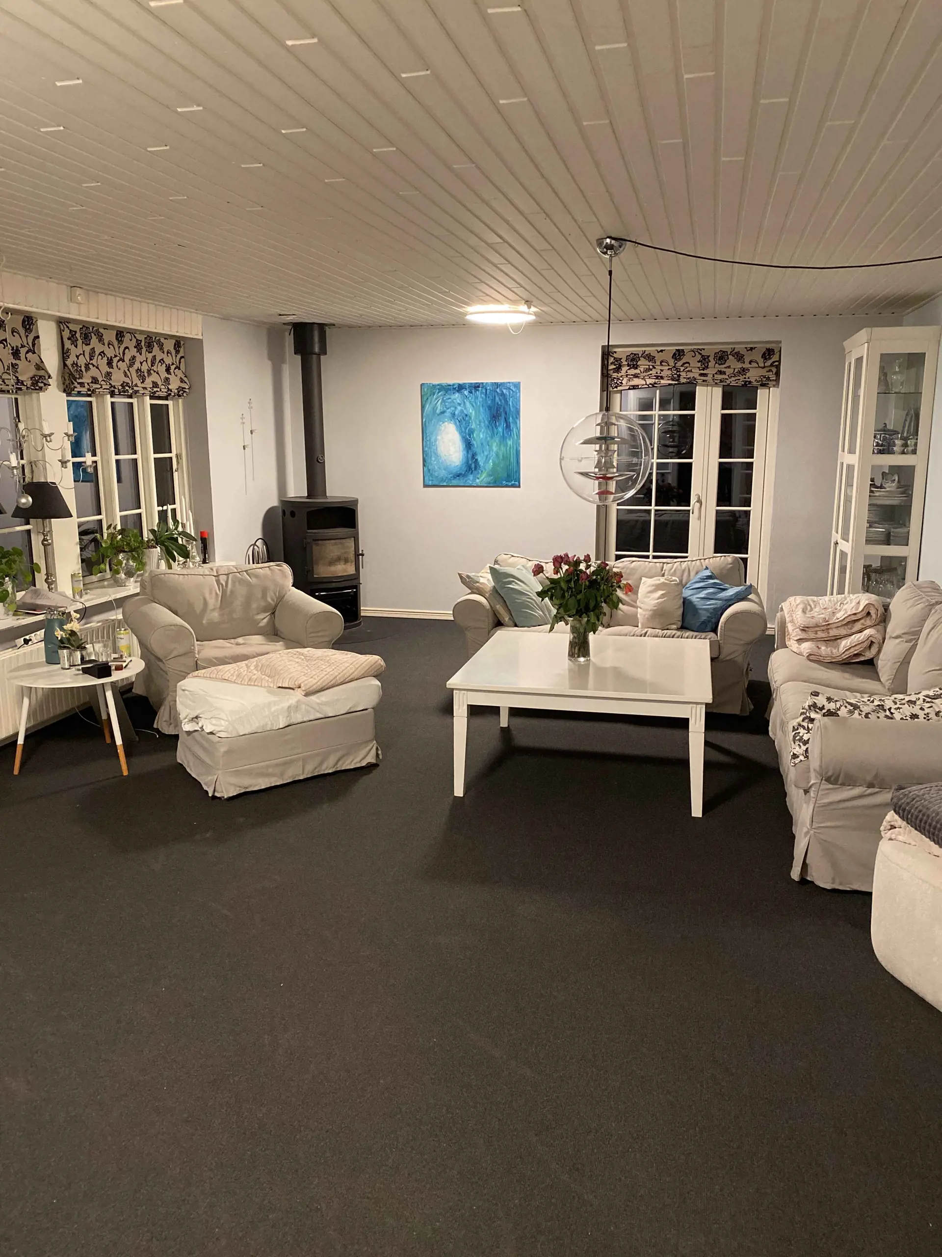 Das Haus verfügt über ein gemütliches Wohnzimmer mit Kamin und bequemen Möbeln. Das Wohnzimmer ist mit einem Flachbild-TV mit Chromecast und High-Speed-Internet ausgestattet. Es gibt auch die Möglichkeit, deutsche TV-Kanäle über Satellit zu empfangen. Ein Hochstuhl für Kinder ist ebenfalls verfügbar.