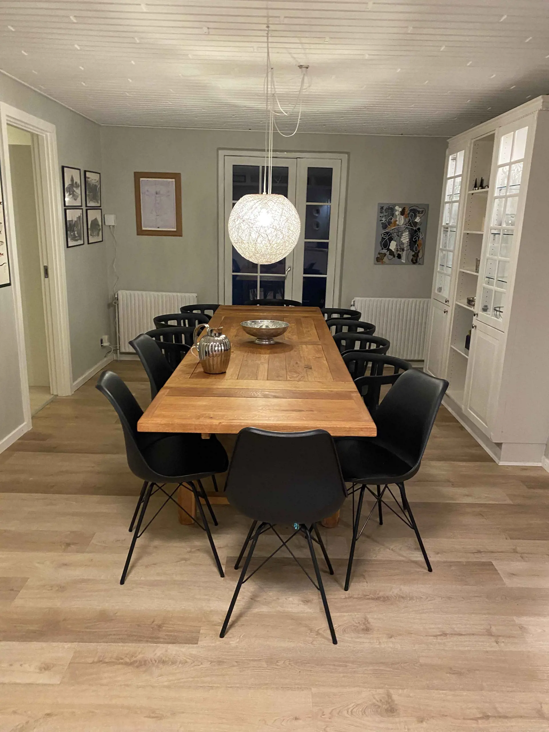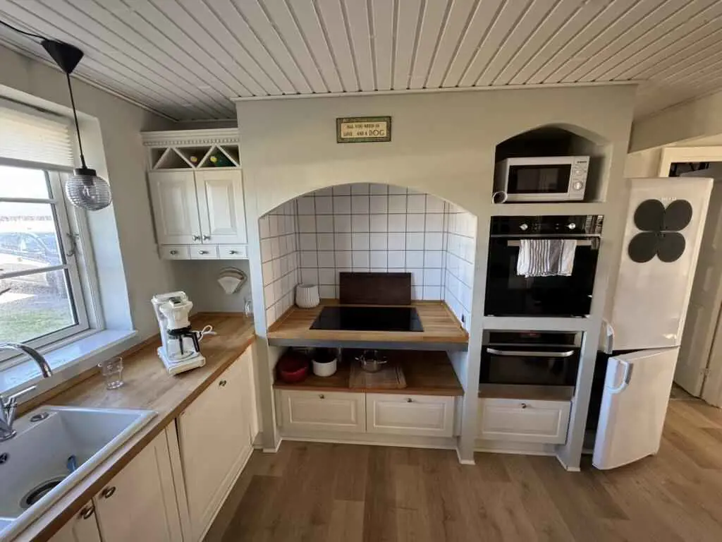 Die Küche ist mit dem Wohnzimmer verbunden und bietet alles, was Sie benötigen. Es gibt einen großen, schönen Esstisch, an dem alle Platz finden.