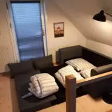 Das Stadthaus empfängt dich mit einer gemütlichen und heimeligen Atmosphäre, in der du dich vom ersten Moment an wohlfühlen wirst. Die Einrichtung ist schlicht und funktional, und liebevolle Details sorgen dafür, dass die Stimmung perfekt zu einem Urlaub in maritimer Umgebung passt. Das Wohnzimmer bildet den natürlichen Treffpunkt des Hauses – hier könnt ihr ruhige Abende mit Spielen, Filmen oder einfach mit Gesprächen und gemeinsamer Zeit genießen. Die Küche ist offen mit dem Wohnbereich verbunden, sodass die Zubereitung der Urlaubsmahlzeiten ganz unkompliziert zu einem gemeinsamen Erlebnis wird. Und wenn der Tag sich dem Ende zuneigt, warten angenehme Schlafplätze für Erwachsene und Kinder. Das Haus ist nicht groß, aber es bietet alles, was ihr braucht – und vor allem: Es fühlt sich einfach gut an, hier zu sein.
