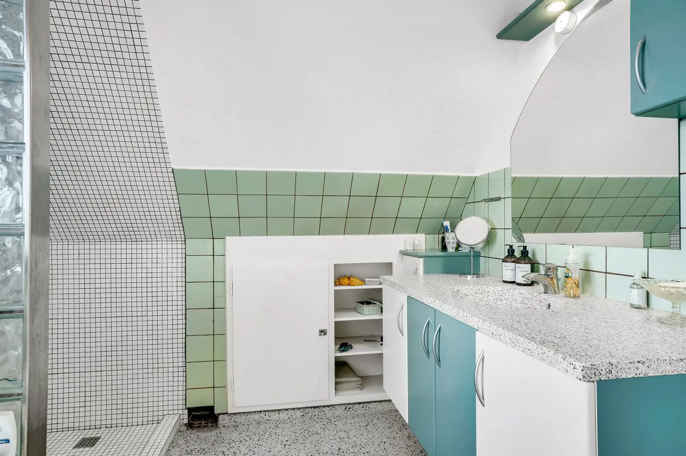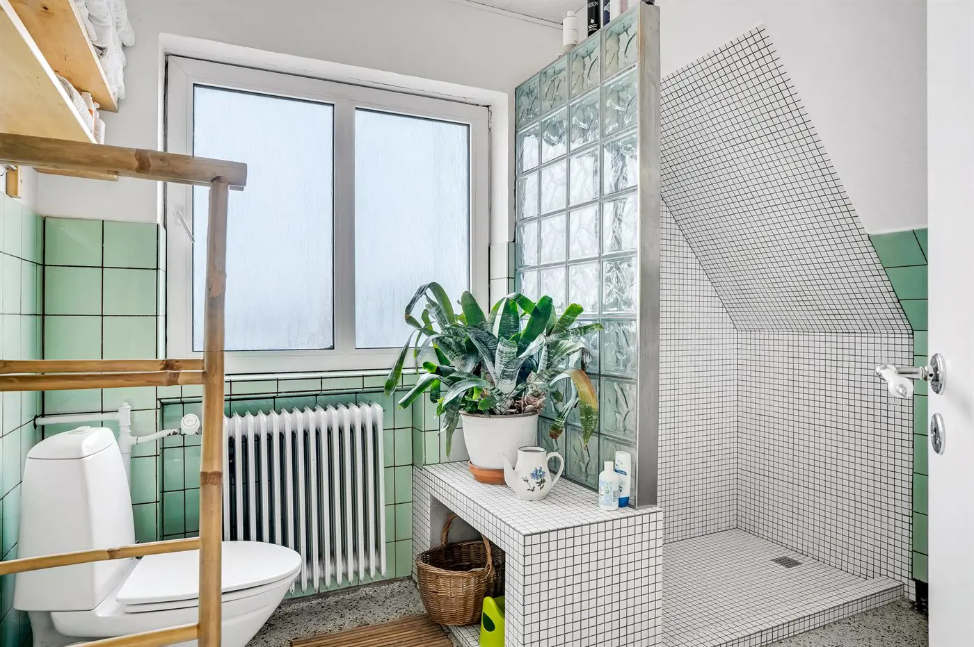 Es gibt 1 Badezimmer mit Duschnische und 2 Toiletten, davon 1 Gästetoilette.