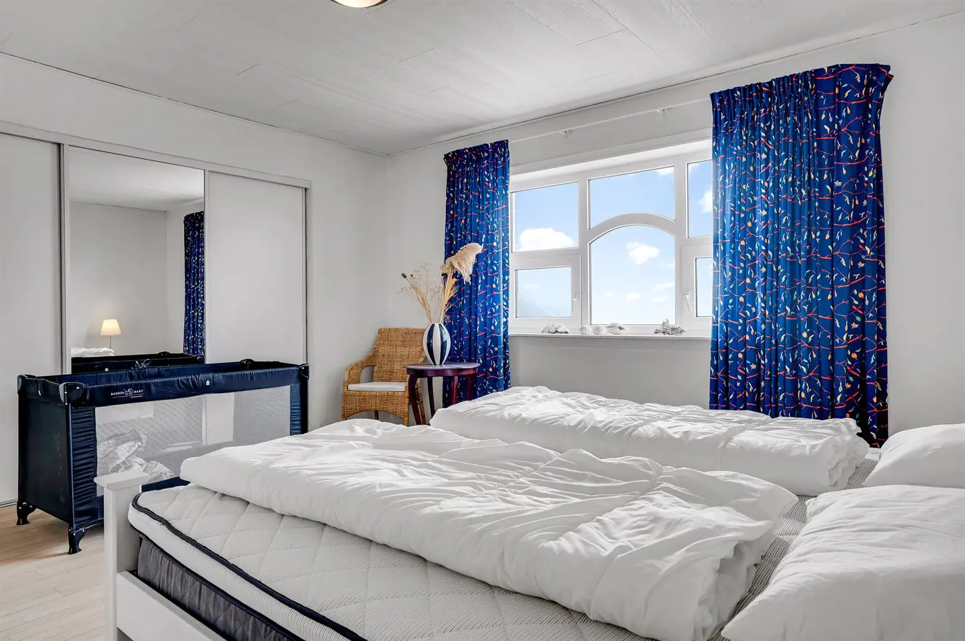 Die Schlafplätze verteilen sich auf 5 Schlafräume. 8 Schlafplätze in Doppelbetten. Ferner steht ein Kinderbett zur Verfügung.