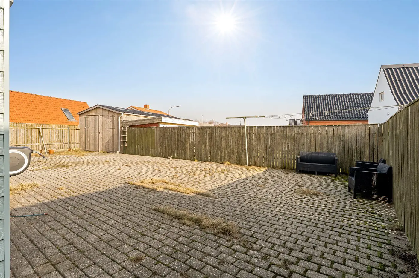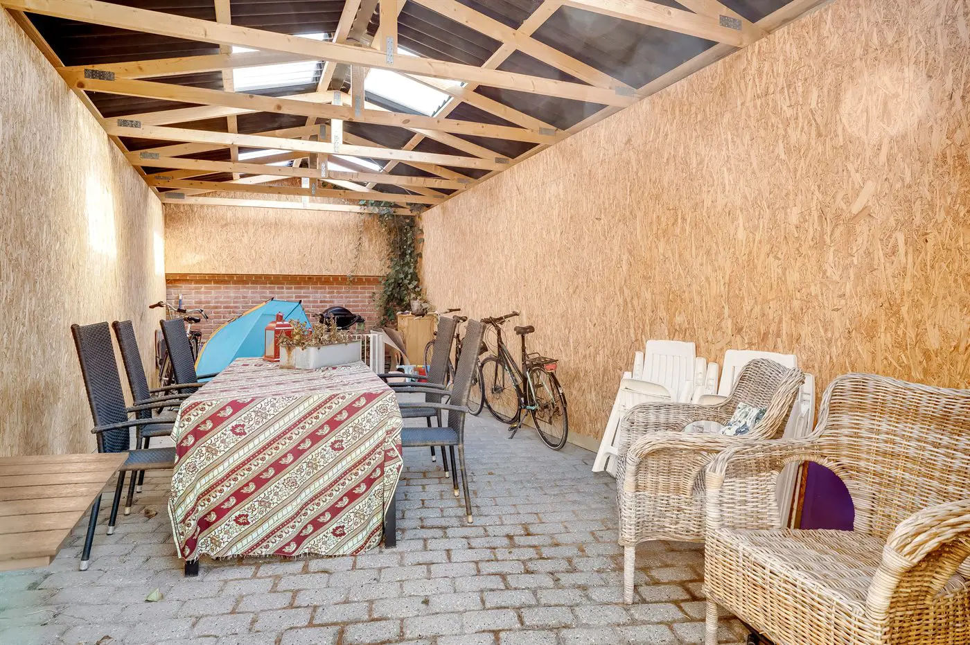 Zum Haus gehört eine geschlossene Terrasse, auf der du schöne Stunden im Freien genießen kannst.