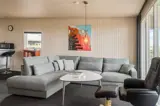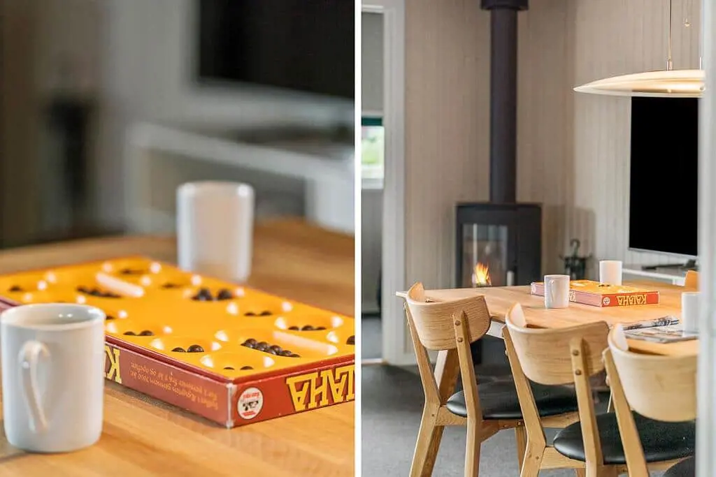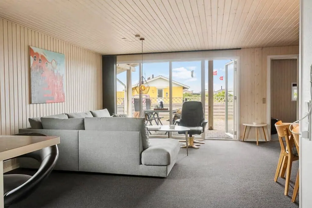 Im Inneren erwartet dich eine helle und freundliche Atmosphäre, bei der alles darauf ausgerichtet ist, Gemütlichkeit und Funktionalität in einem zu vereinen. Die Einrichtung ist schlicht, aber herzlich – man fühlt sich sofort wohl und kann den Alltag hinter sich lassen. Das Wohnzimmer ist offen mit der Küche verbunden, und durch die großen Fenster strömt viel Tageslicht herein – ein natürlicher Treffpunkt für die ganze Familie. Hier könnt ihr gemeinsam kochen, Brettspiele am Esstisch spielen oder mit einem guten Buch auf dem Sofa entspannen. Es ist Platz für ruhige Momente und gemeinsame Aktivitäten, und sowohl Kinder als auch Erwachsene – und natürlich der vierbeinige Freund der Familie – fühlen sich in der angenehmen Umgebung schnell zuhause.